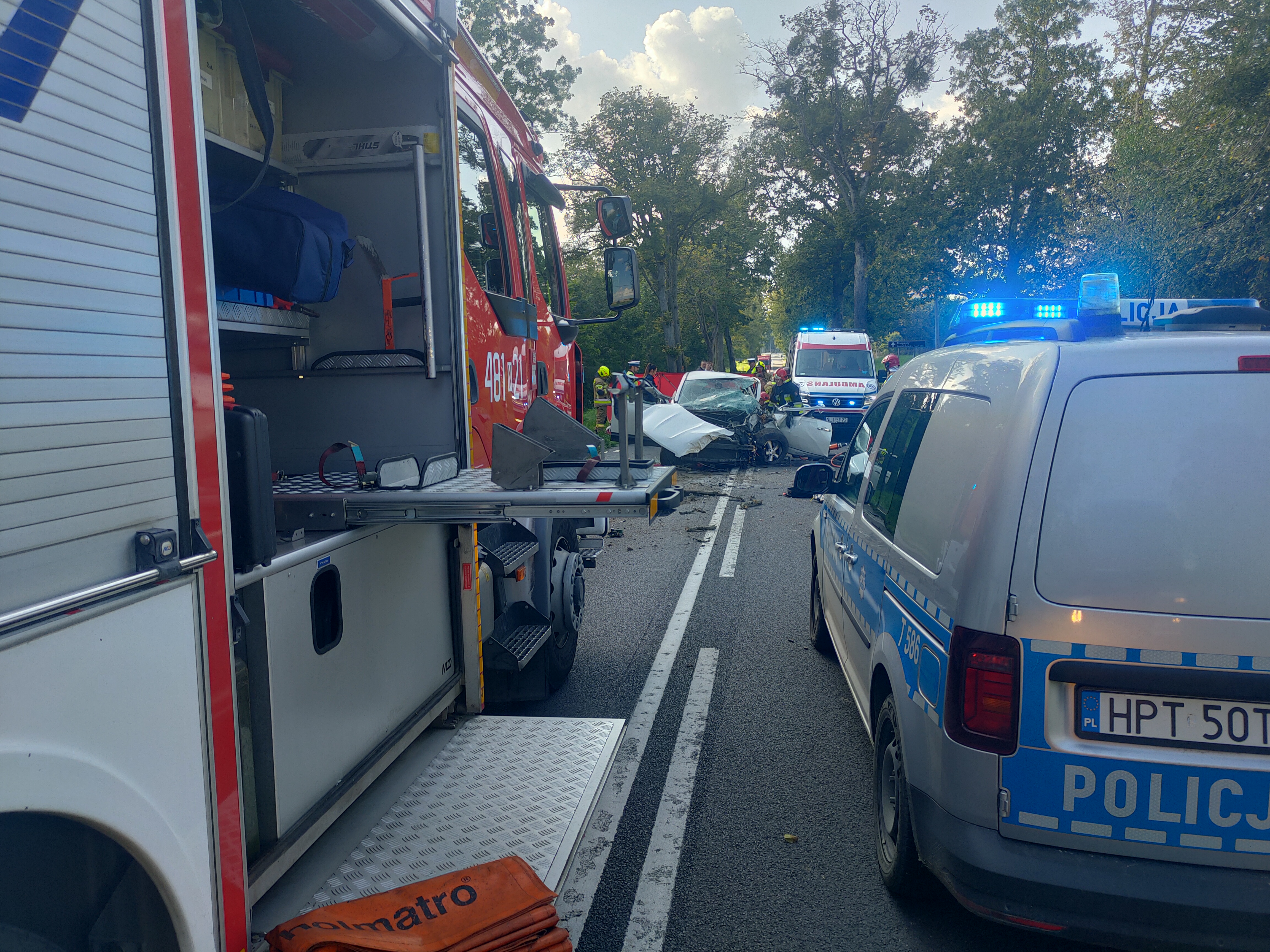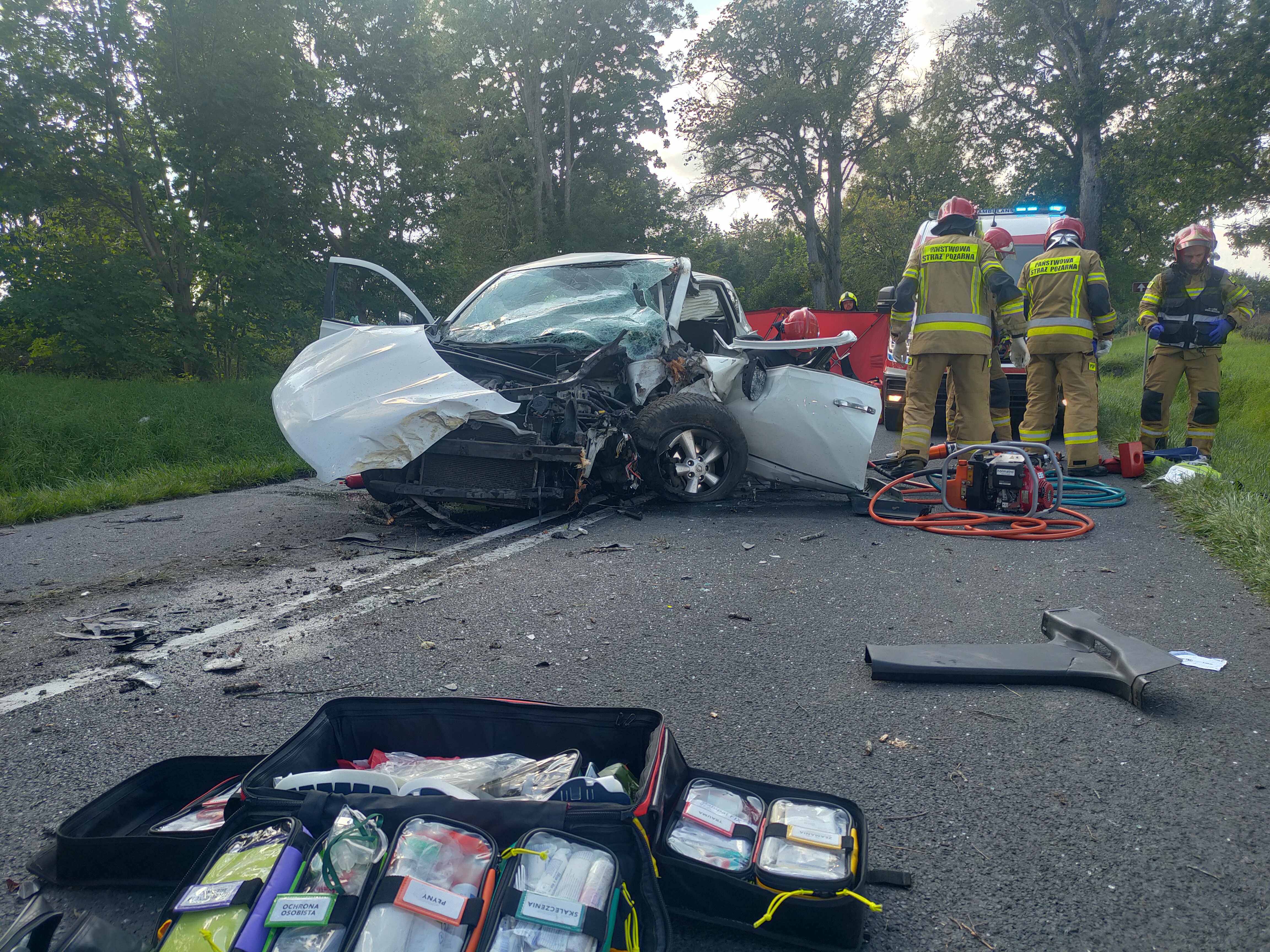 Po przybyciu na miejsce zdarzenia zastępów PSP stwierdzono samochód osobowy marki Nissan Qashqai znajdujący się na środku drogi, blokujący ruch pojazdów. Policjanci obecni na miejscu prowadzili działania medyczne wobec kierowcy. Ze względu na znaczne uszkodzenia karoserii ewakuacja poszkodowanego była niemożliwa. Strażacy zabezpieczyli teren, a następnie przy użyciu narzędzi hydraulicznych wykonali dostęp do osoby uwięzionej. W trakcie prowadzonych działań prowadzona była resuscytacja krążeniowo-oddechowa. Na miejsce przybył Zespół Ratownictwa Medycznego, który koordynował czynności medyczne. Kierowcę wydobyto z pojazdu, jednak mimo podjętych działań resuscytacyjnych 62-letni mężczyzna poniósł śmierć.