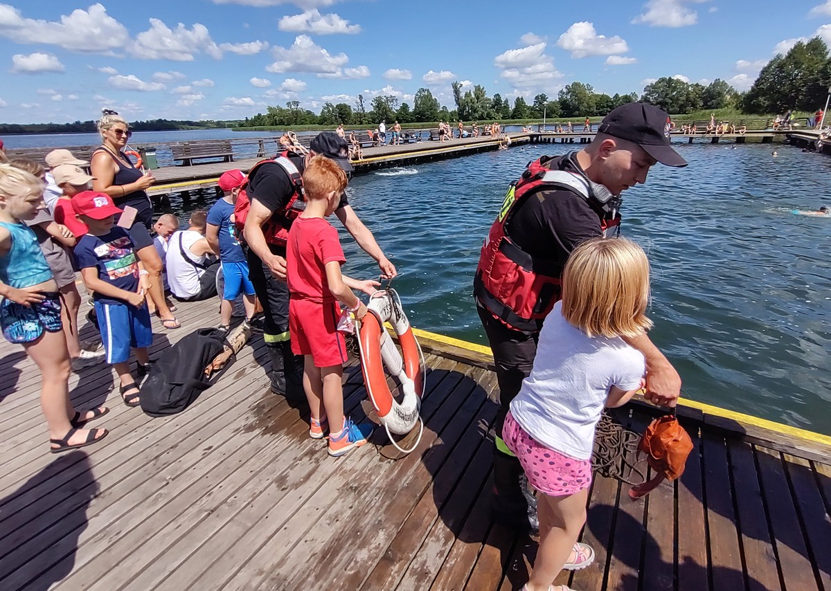 W niedzielne południe tj. 9 lipca br. strażacy z Komendy Powiatowej Państwowej Straży Pożarnej w Lidzbarku Warmińskim wspólnie z Komendą Powiatową Policji przy współpracy z Ośrodkiem Sportu i Rekreacji przeprowadzili akcję informacyjno-edukacyjna w ramach programu „Kręci mnie bezpieczeństwo nad wodą”. Plaża miejska nad jeziorem Wielochowo to idealne miejsce do pokazów oraz społecznej edukacji z zakresu zachowania się i odpoczynku nad wodą.