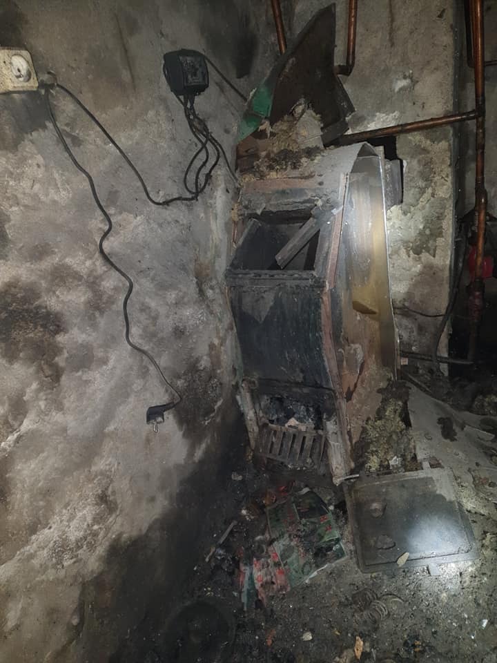 Po przybyciu na miejsce pierwszych zadysponowanych sił, zastano uszkodzony kocioł C.O na paliwo stałe po wybuchu oraz uszkodzoną ścianę działową wydzielającą pomieszczenie kotłowni w podpiwniczonej kondygnacji budynku. Nikt z mieszkańców w wyniku zdarzenia nie został poszkodowany. Po skontrolowaniu pomieszczeń lokalu znajdującego się na poddaszu, stwierdzono liczne pęknięcia ścian oraz wybite okno. Sprawdzono również pozostałe mieszkania znajdujące się w budynku. Nie stwierdzono uszkodzeń ani dodatkowych zagrożeń związanych z obecnością tlenku węgla w atmosferze. Podczas prowadzonych działań na miejsce przybył burmistrz Ornety Ireneusz Popiel, Z-ca Komendanta Powiatowego mł.bryg. Cezary Kalinowski oraz Pani Julita Kowalska z inspektoratu nadzoru budowlanego.