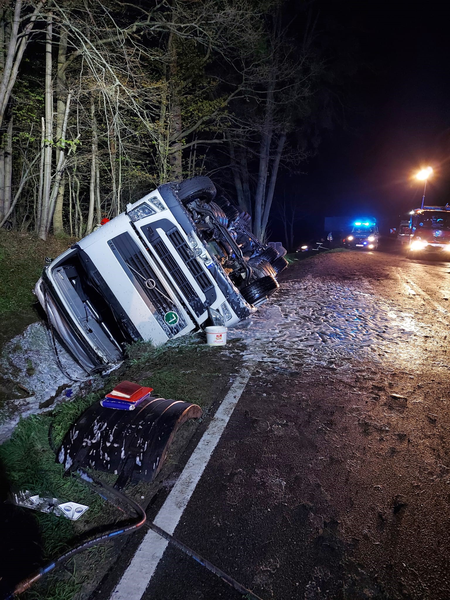 Po przybyciu na miejsce zdarzenia zastano autocysternę, która znajdowała się w przydrożnym rowie, kołami do góry. Kierowca opuścił pojazd o własnych siłach przed przybyciem służb ratowniczych. Po zabezpieczeniu miejsca zdarzenia i dokonaniu rozpoznania stwierdzono, że samochód ciężarowy przewoził serwatkę. W wyniku uderzenia doszło do wycieku neutralnej substancji oraz częściowego wypływu oleju napędowego z baku paliwa.
