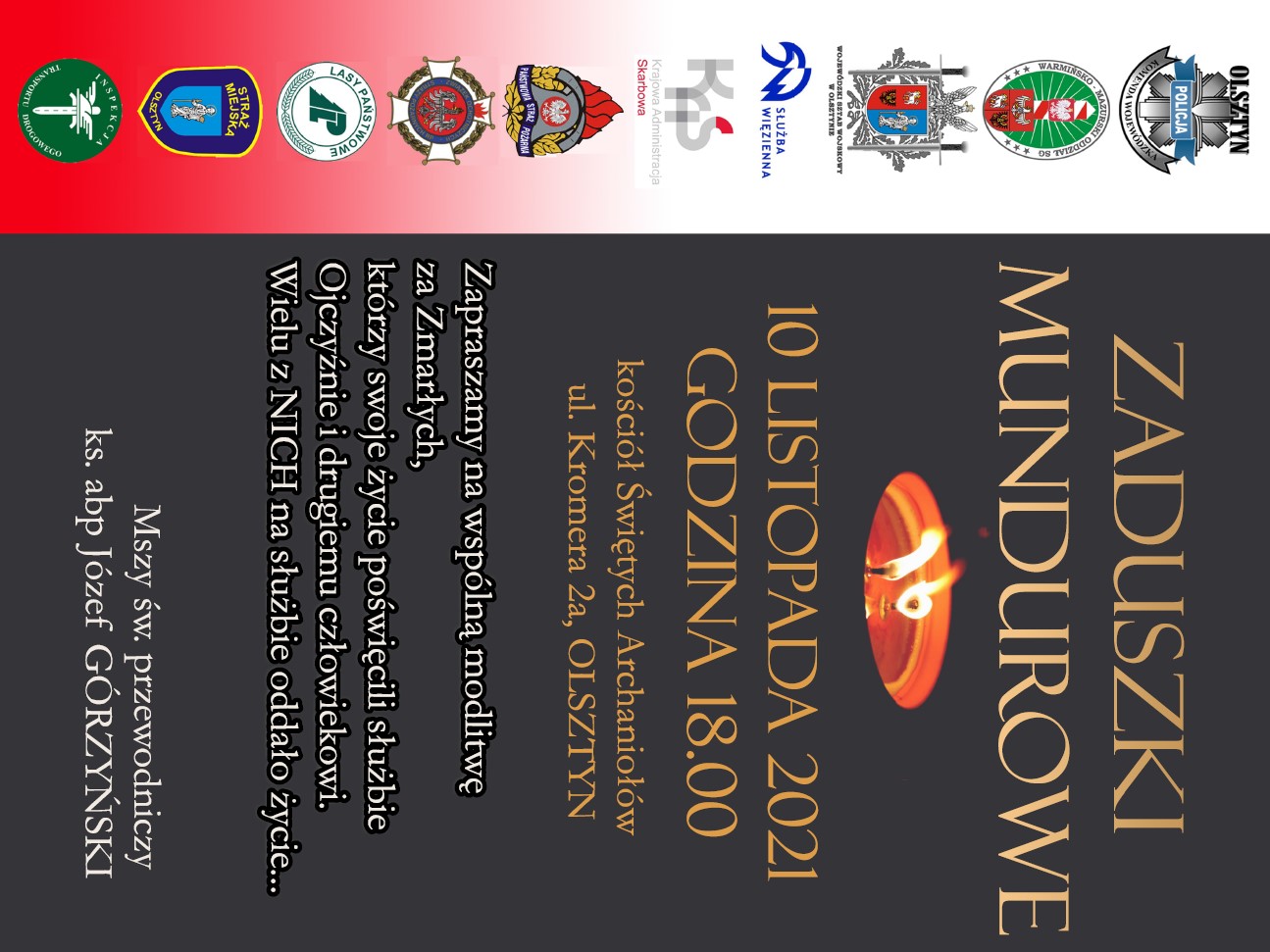 10 listopada 2021r. o godz. 18:00 w Kościele Świętych Archaniołów przy ul. Kromera 2a w Olsztynie zostanie odprawiona Msza Święta za zmarłych funkcjonariuszy i pracowników służb mundurowych woj. warmińsko–mazurskiego.