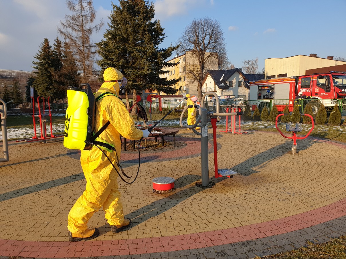 Zgodnie z poleceniem KW PSP Kraków w dniach 6 i 7 marca br., 21 jednostek OSP, którym wcześniej przekazano na wyposażenie opryskiwacze spalinowe, przeprowadziło kolejny już raz działania związane z dezynfekcją – tym razem m.in. 255 wiat przystankowych oraz 64 placów zabaw umiejscowionych na terenie całego powiatu.