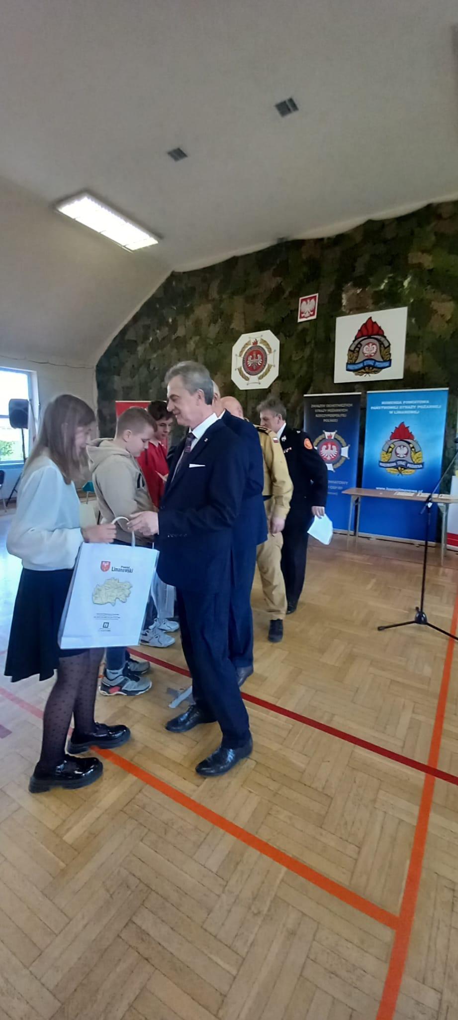 Nagrody dla zwycięzców ufundowało Starostwo Powiatowe w Limanowej a wszyscy uczestnicy zmagań z wiedzą pożarniczą zostali również nagrodzeni upominkami w postaci dyplomów pamiątkowych oraz bonów upominkowych na Pływalnie Limanowską.