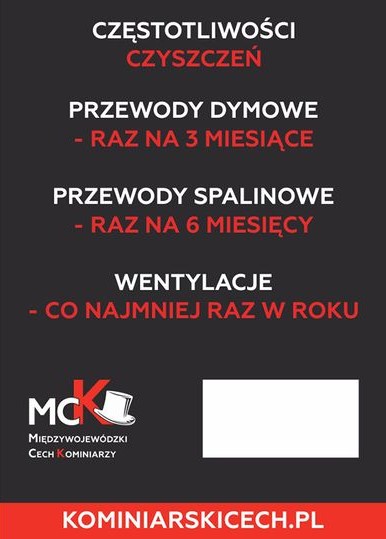 Ustawa Prawo budowlane określa, że właściciel / zarządca budynku jest zobowiązany co najmniej 1 raz w roku zlecić przeprowadzenie kontroli okresowej kontroli stanu technicznego przewodów kominowych (dymowych, spalinowych i wentylacyjnych) osobie posiadającej odpowiednie uprawnienia – Mistrza Kominiarskiego, a w przypadku stwierdzenia uszkodzeń lub braków właściciel, zarządca lub użytkownik budynku są obowiązani w czasie lub bezpośrednio po przeprowadzonej kontroli, usunąć stwierdzone uszkodzenia oraz uzupełnić braki, które mogłyby spowodować zagrożenie życia lub zdrowia ludzi, bezpieczeństwa mienia bądź środowiska,