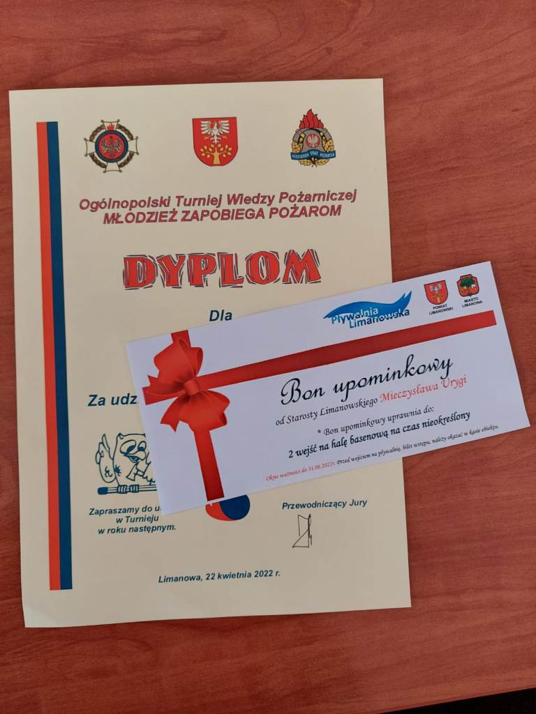 Dyplomy oraz nagrody w postaci, bonów wstępu na basen oraz sprzętu elektronicznego wręczyli m.in: starosta limanowski Mieczysław Uryga, Józef Pietrzak Przewodniczący Rady Powiatu Limanowskiego, mł.bryg. Wojciech Frączek Komendant Powiatowy PSP w Limanowej, st.bryg. w st. spocz. dh. Grzegorz Janczy Prezes Oddziału Powiatowego ZOSP RP w Limanowej.