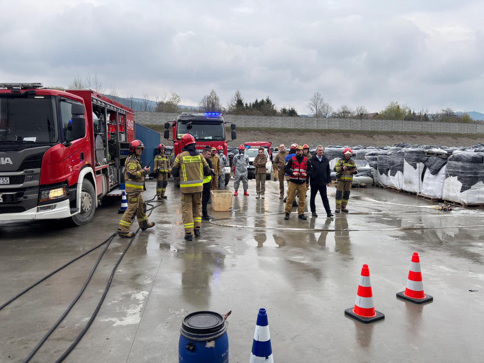 15 kwietnia o godz. 14.00 na terenie zakładu przetwórstwa tworzyw sztucznych w Mordarce realizowano ćwiczenia powiatowe pod Kryptonimem „MORDARKA 2026”. Ćwiczenia rozpoczął a później nadzorował Komendant Powiatowy PSP w Limanowej - st. bryg. Tomasz Pawlik wraz ze starostą limanowskim Mieczysławem Urygę.