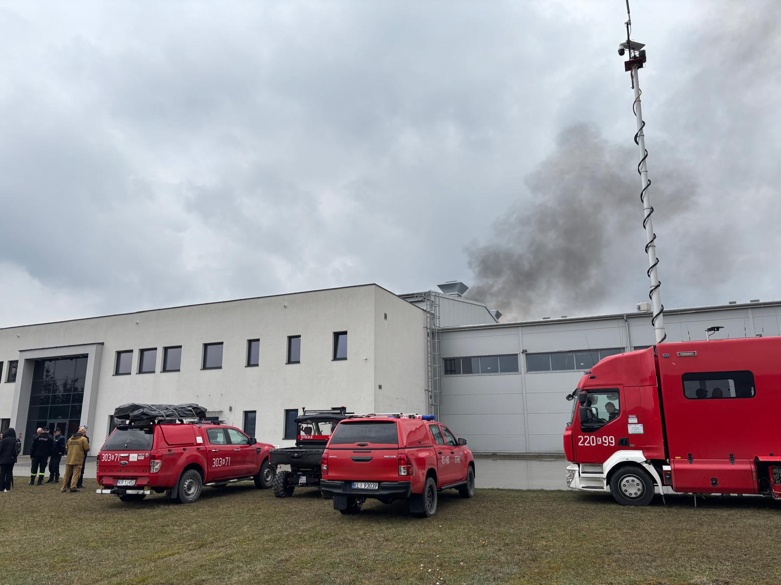 Na terenie zakładu właściciel zauważył pożar. Paliły się tam palety umiejscowione na zewnątrz budynku na których znajdowały się produkty i półprodukty z tworzyw sztucznym.