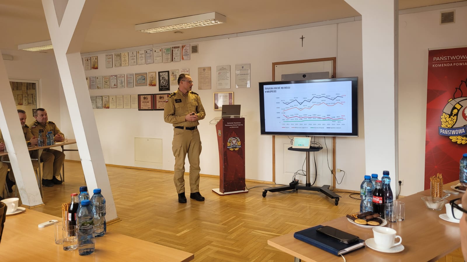 Podczas narady omówiono statystyki zdarzeń, działania na rzecz bezpieczeństwa mieszkańców oraz doskonalenie zawodowe strażaków.