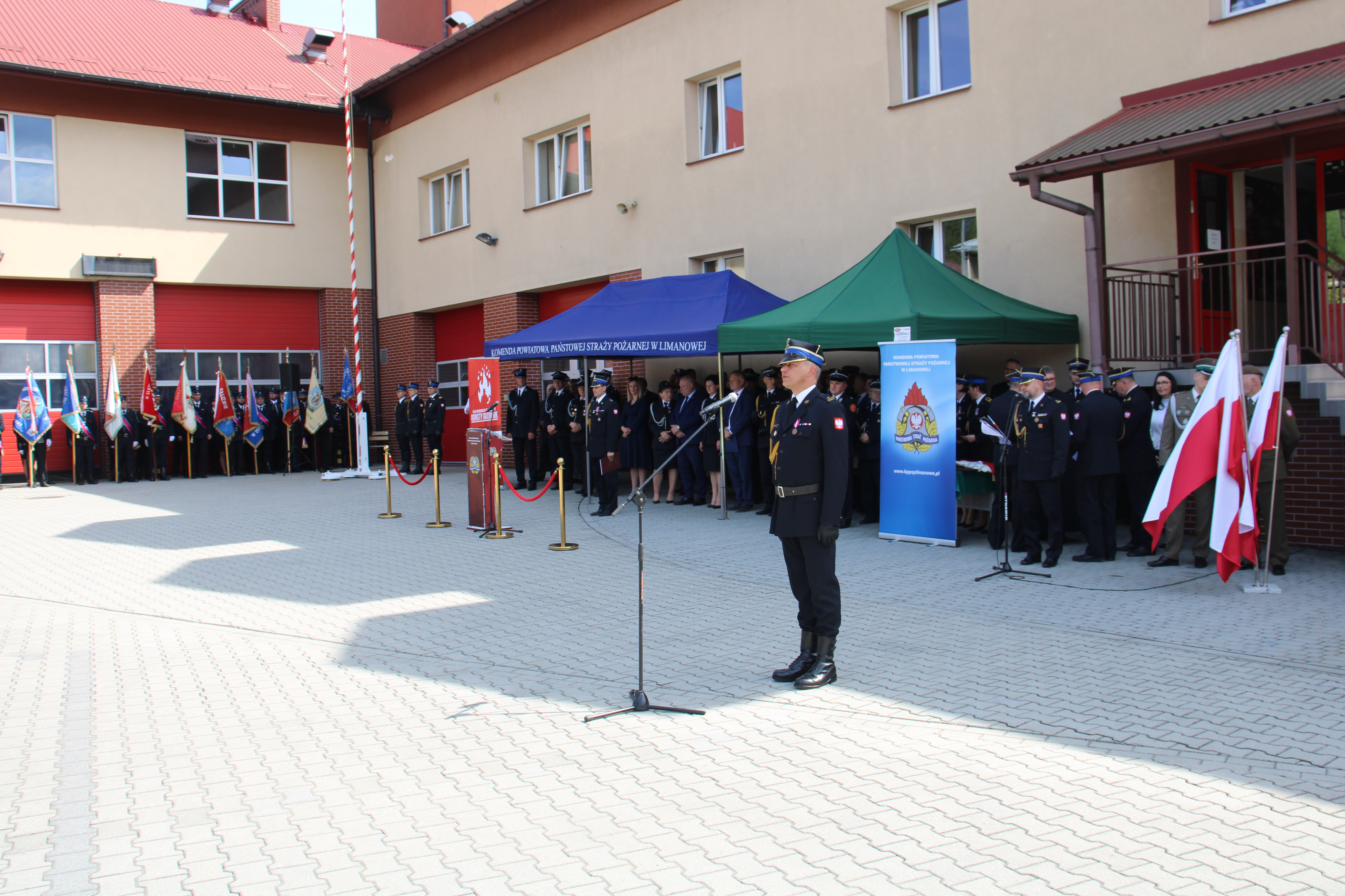 Uroczystość rozpoczęto od złożenia meldunku Zastępcy Małopolskiego Komendanta Wojewódzkiego Państwowej Straży Pożarnej w Krakowie bryg. Przemysławowi Przęczkowi przez Dowódcę uroczystości mł. bryg. Jakuba krzyżaka oraz podniesienia flagi państwowej na maszt przy dźwiękach hymnu państwowego. Znamienitych gości przywitał Komendant Powiatowy Państwowej Straży Pożarnej w Limanowej mł. bryg. Wojciech Frączek, który dokonał krótkiego podsumowania 30 lat funkcjonowania ochrony przeciwpożarowej na ziemiach powiatu limanowskiego. W kolejnej części uroczystości, Wicewojewoda oraz Komendant Wojewódzki PSP wręczyli odznaczenia państwowe i resortowe oraz akty nadania wyższych stopni służbowych: