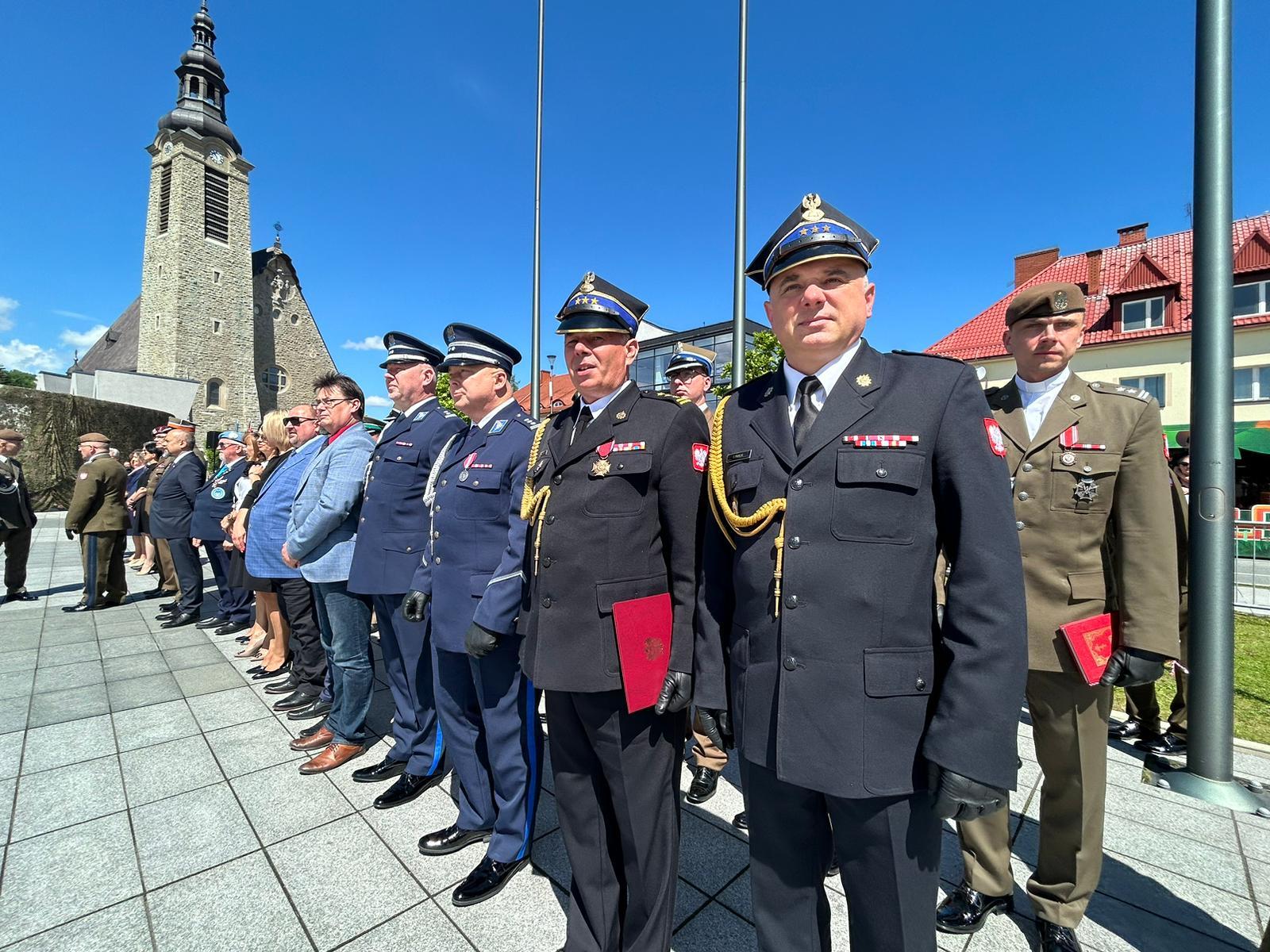 W uroczystości udział wzięli m.in st. bryg. Piotr Gadowski Zastępca Małopolskiego Komendanta Wojewódzkiego Państwowej Straży Pożarnej oraz st. bryg. Tomasz Pawlik Komendant Powiatowy Państwowej Straży Pożarnej w Limanowej.