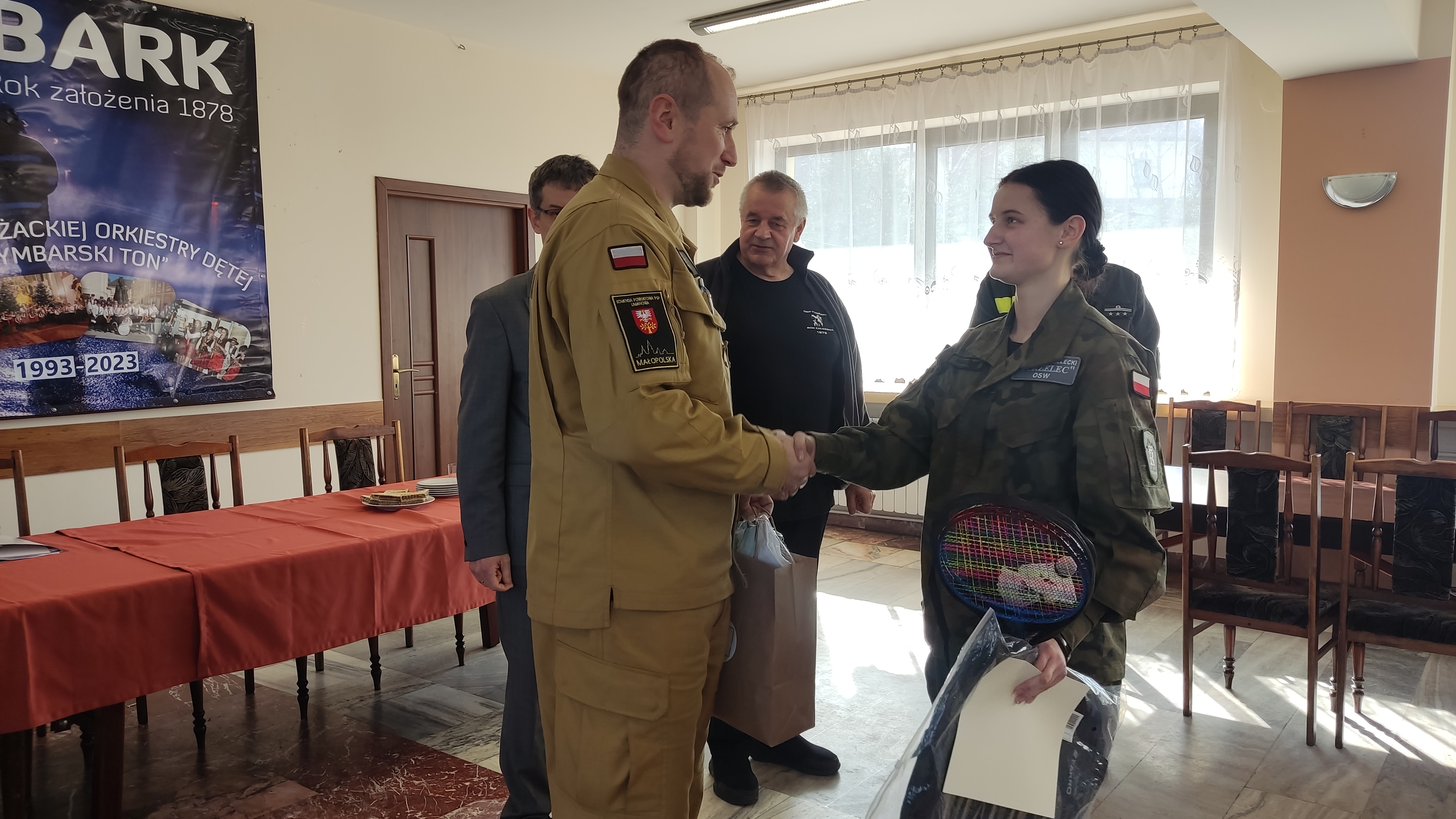 - Beata Hanusiak, 2. Amelia Merwart, 3. Kamil Matała, 4. Kacper Gumula, 5. Tomasz Piaskowy uczniowie klas mundurowych z Zespołu Szkół im. KEN w Tymbarku, członkowie jednostki tymbarskiego Strzelca.