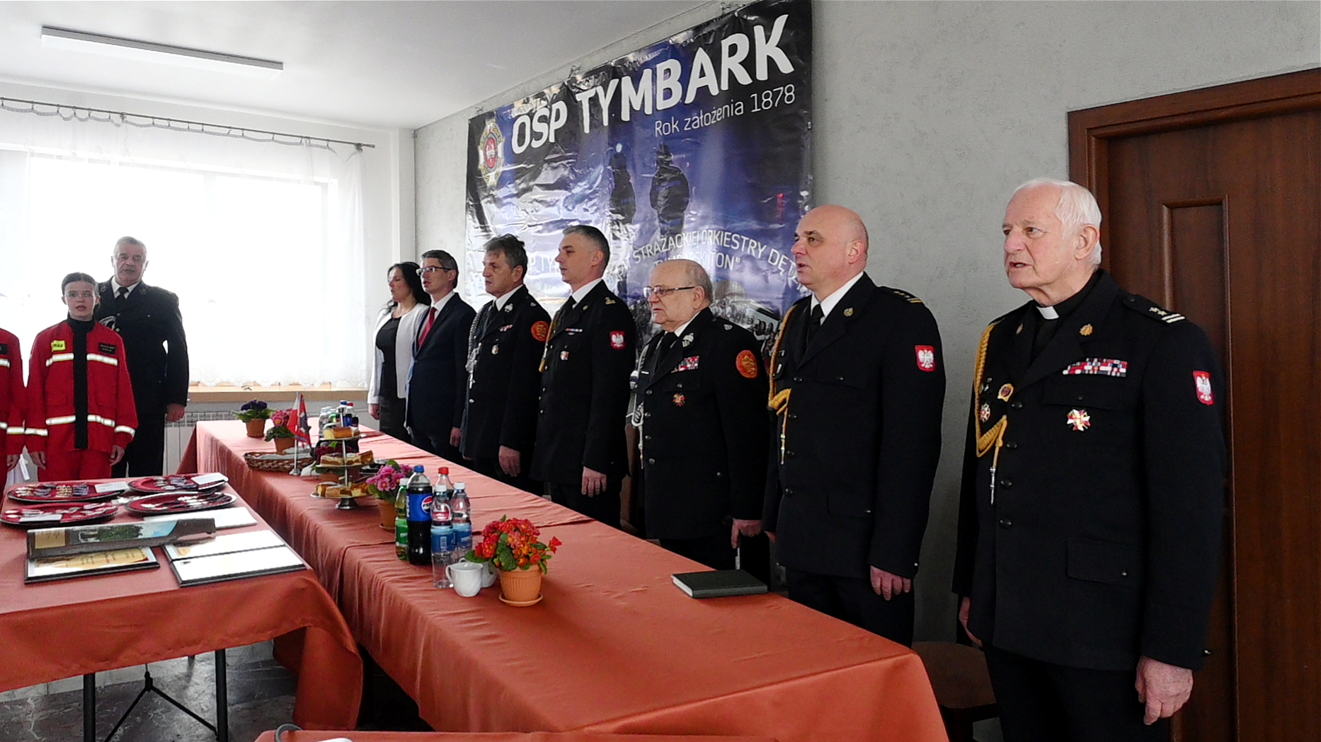 Zbiórka została zorganizowana w sali konferencyjnej remizy i przebiegała według ceremoniału strażackiego. Spikerem był st. ogn. Marcin Mrózek. Na początku dowódca uroczystości, mł. bryg. Tomasz Kaptur, naczelnik OSP Tymbark, złożył meldunek bryg. Marcinowi Głogowskiemu, po czym wprowadzono sztandar jednostki i odśpiewano hymn państwowy. Przybyłych na uroczystość powitał prezes OSP Tymbark, dh Stanisław Przybylski, a następnie wręczono odznaczenia następującym osobom: