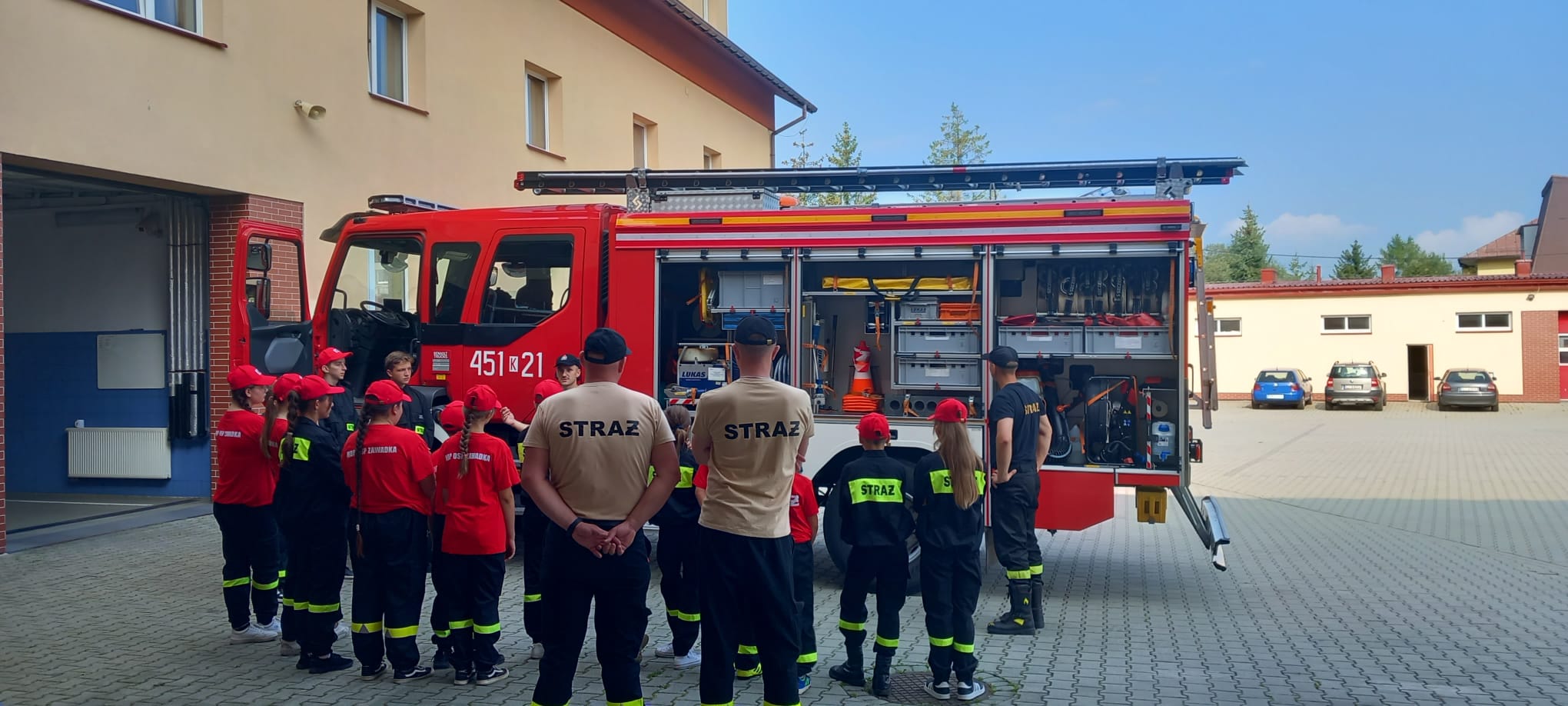 W okresie wakacyjnym przeprowadzono już kilka spotkań. W lipcu gościliśmy dzieci z przedszkola Montessori w Limanowej, zaś w sierpniu odwiedziła nas grupka dzieci z miejscowości Limanowa oraz zawitała do nas grupa MDP z Ochotniczej Straży Pożarnej w Zawadce. Podczas spotkania omówiono zachowanie podczas pożaru, zasady ewakuacji i zgłaszania zdarzenia, zasady używania gaśnic, kształtowanie prawidłowych zachowań i nawyków w sytuacji zagrożenia życia i zdrowia, utrwalanie znajomości telefonów alarmowych oraz znaków ostrzegawczych i informacyjnych, omówienie zasad udzielania pierwszej pomocy. Poruszono również tematykę związaną z zadaniami Państwowej Straży Pożarnej, charakterystyką pracy strażaka, wymaganiami formalnymi dotyczącymi rekrutacji do służby. Zaprezentowano sprzęt ratowniczy będący w posiadaniu tutejszej Jednostki Ratowniczo-Gaśniczej PSP w Limanowej. Pogadanka zakończyła się pamiątkowym zdjęciem.