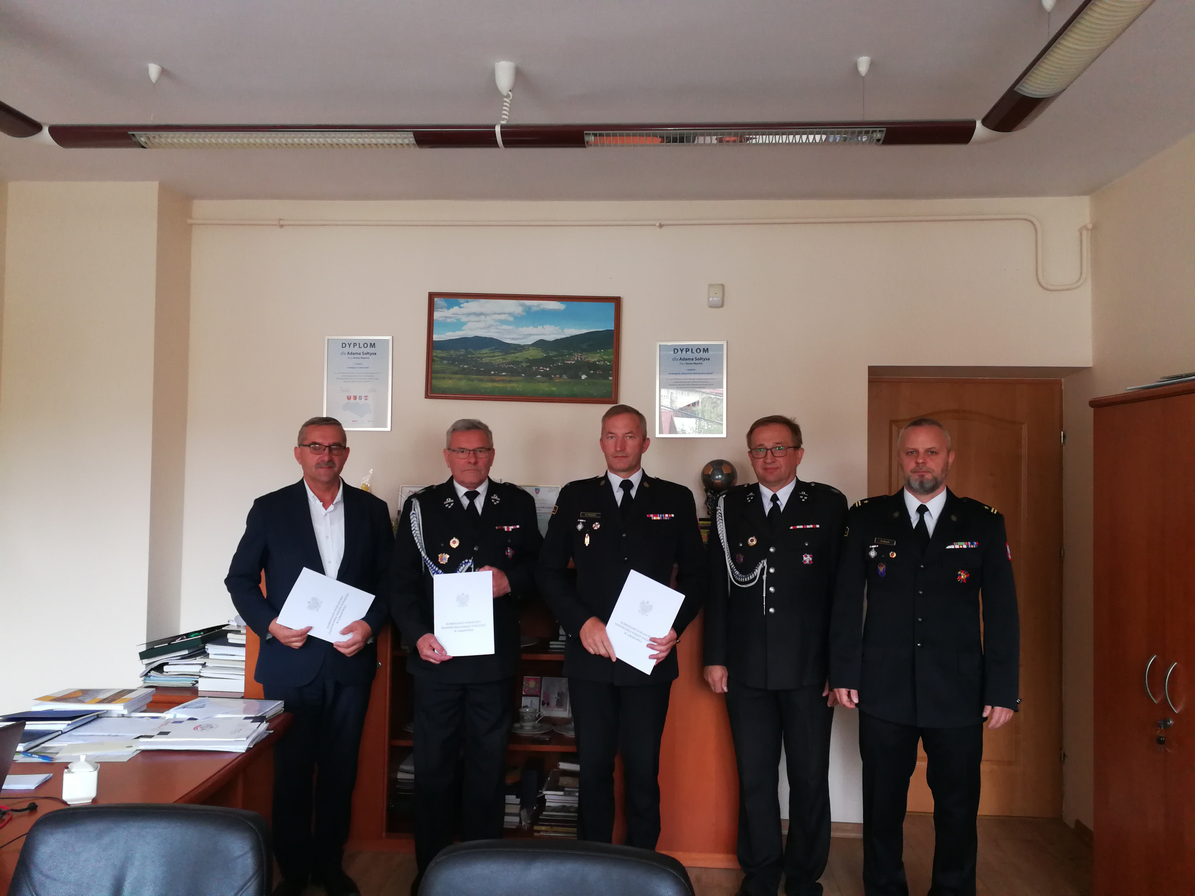 We wtorek 12 lipca 2022 roku Komendant Powiatowy PSP w Limanowej odbył dwa spotkania poświęcone zagadnieniom dotyczącym rozbudowy sieci podmiotów Krajowego Systemu Ratowniczo-Gaśniczego na terenie powiatu limanowskiego, tj. podpisaniu trójstronnych porozumień o włączeniu (w przypadku jednostki w Słopnicach Górnych – ponownym, po upłynięciu 5-letniego okresu obowiązywania poprzedniego) do Krajowego Systemu Ratowniczo – Gaśniczego.