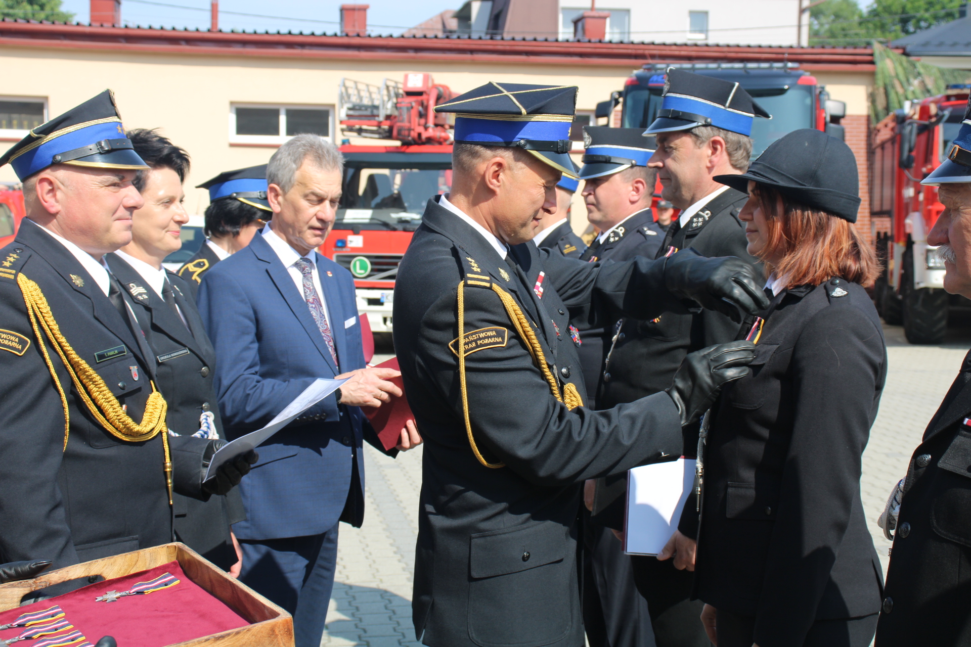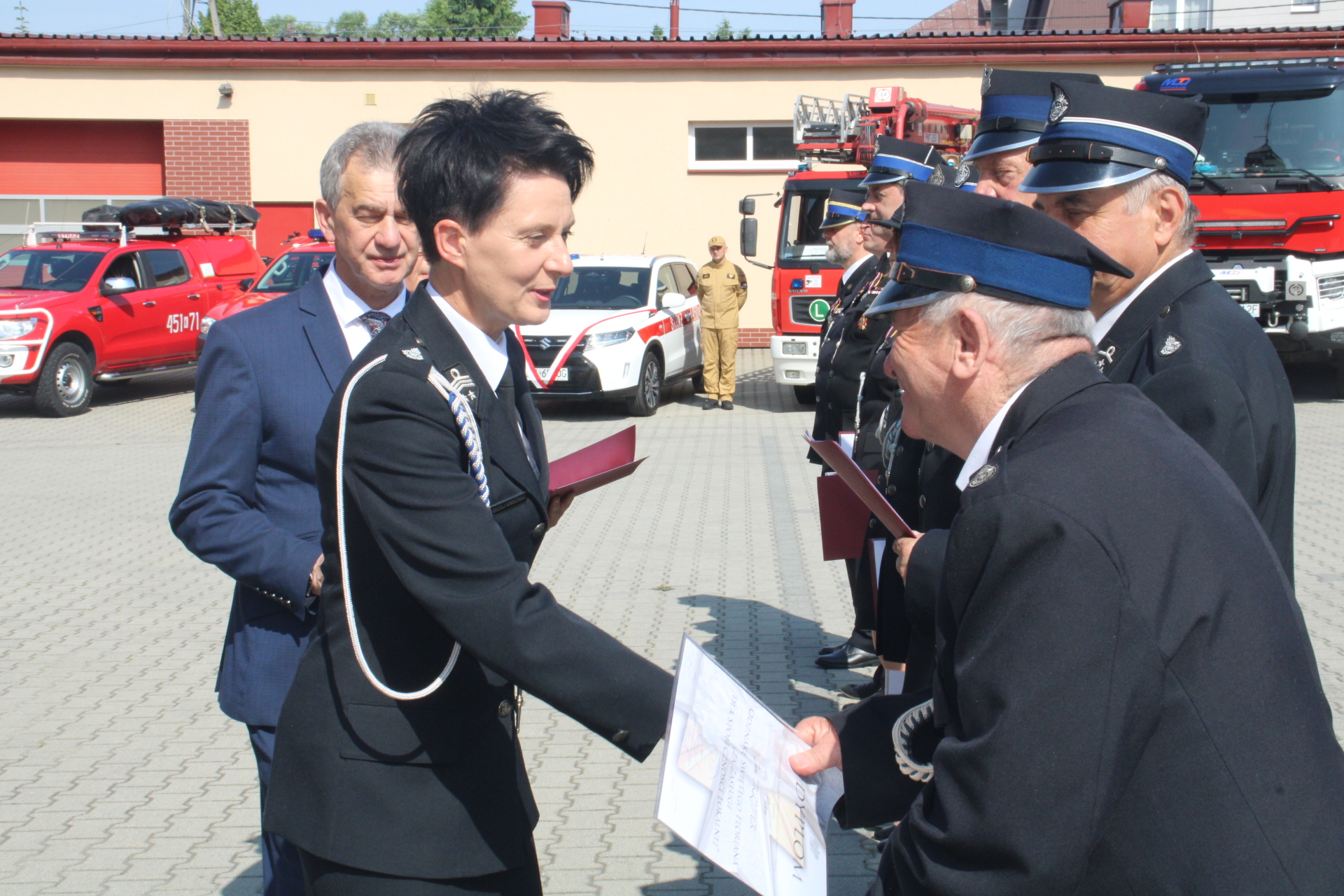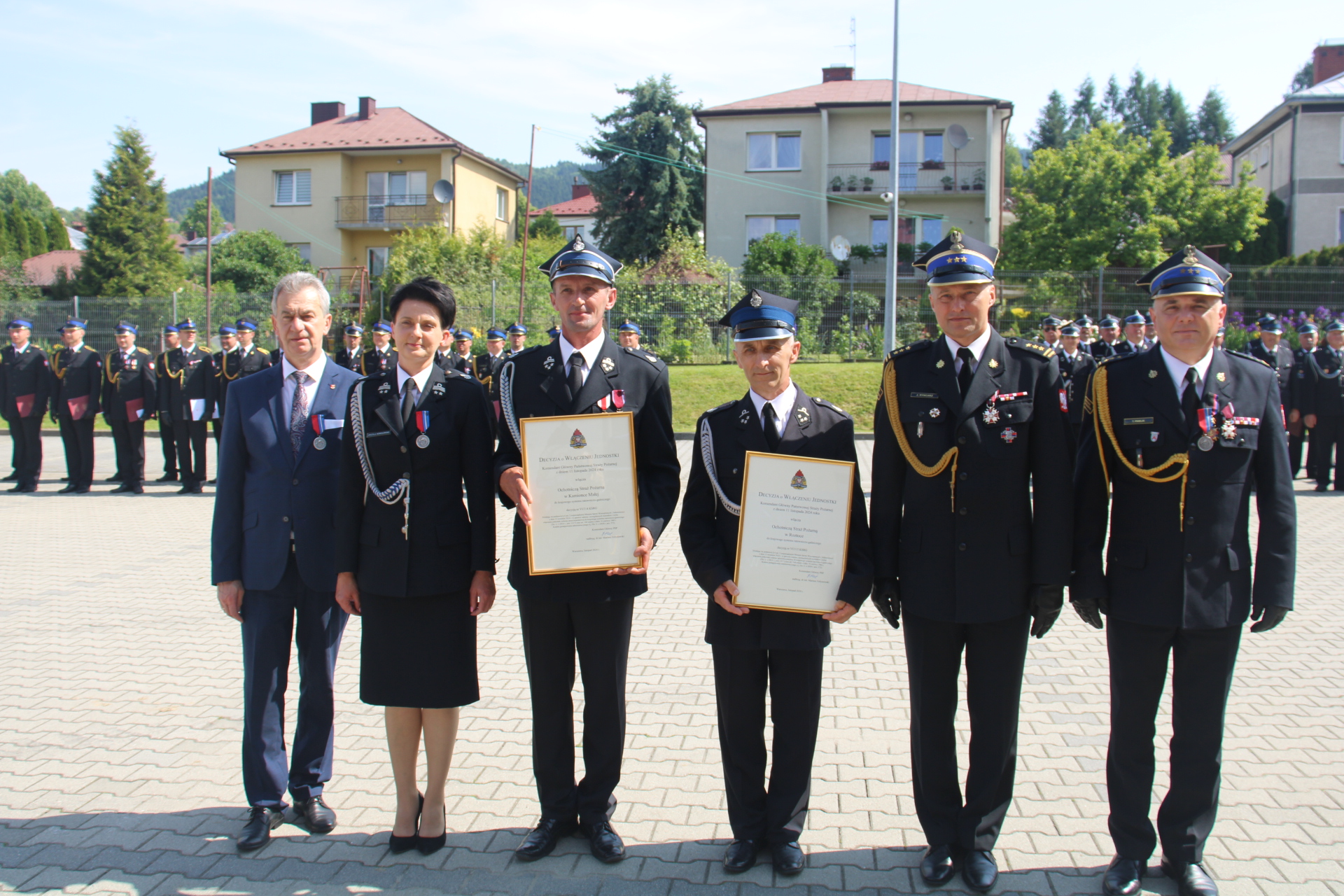 Podczas uroczystości zostały wręczone odznaczenia, akty nadania wyższych stopni służbowych 5 strażakom oraz decyzje o włączeniu do KSRG jednostek: