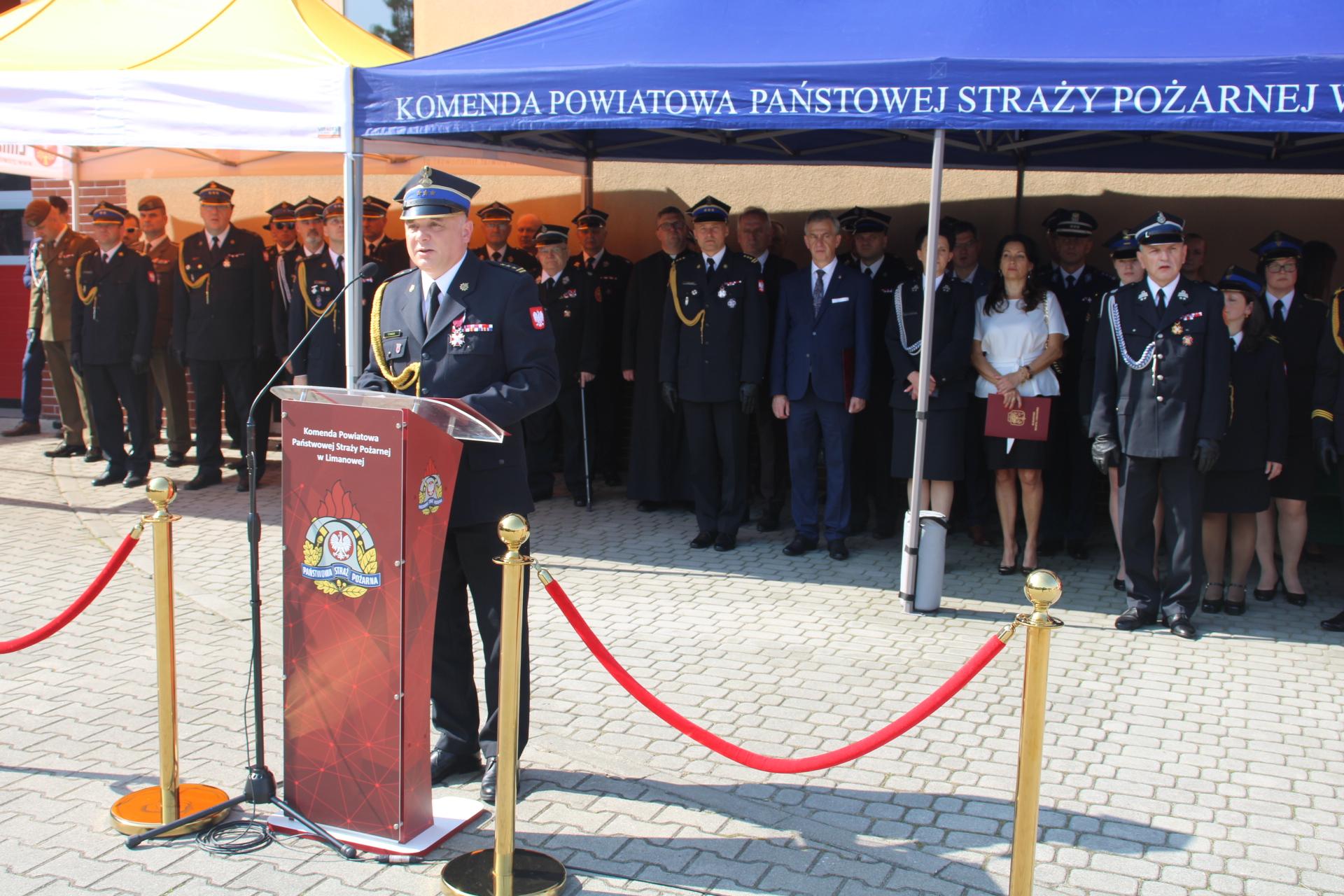 Wszystkich zebranych na uroczystości przywitał Komendant Powiatowy PSP w Limanowej st. bryg. Tomasz Pawlik. Wśród zaproszonych i przybyłych gości byli m. in: