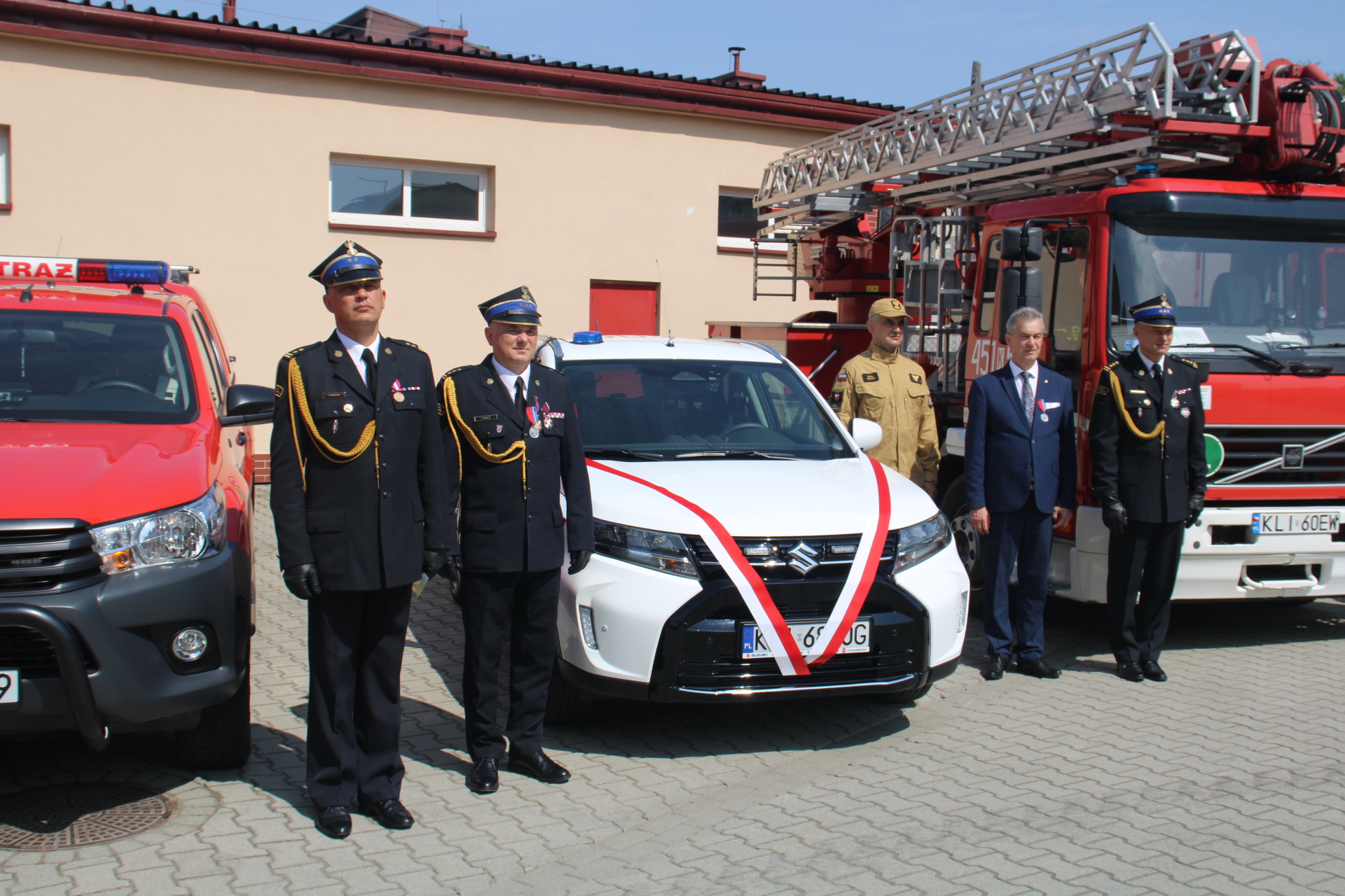 Kolejnym punktem uroczystości było przekazanie i poświęcenie samochodu dla Państwowej Straży Pożarnej - Suzuki Grand Vitara. Kluczyki do samochodu Komendantowi PSP w Limanowej przekazał Starosta Limanowski, a poświęcenia samochodu dokonał Kapelan Małopolskich strażaków bryg. w st. spocz. ks. Władysław Kulig w asyście Kapelana Powiatowego księdza Bogdana Stelmacha