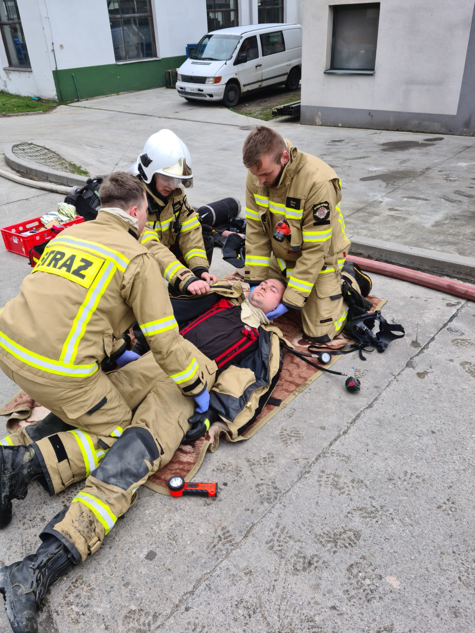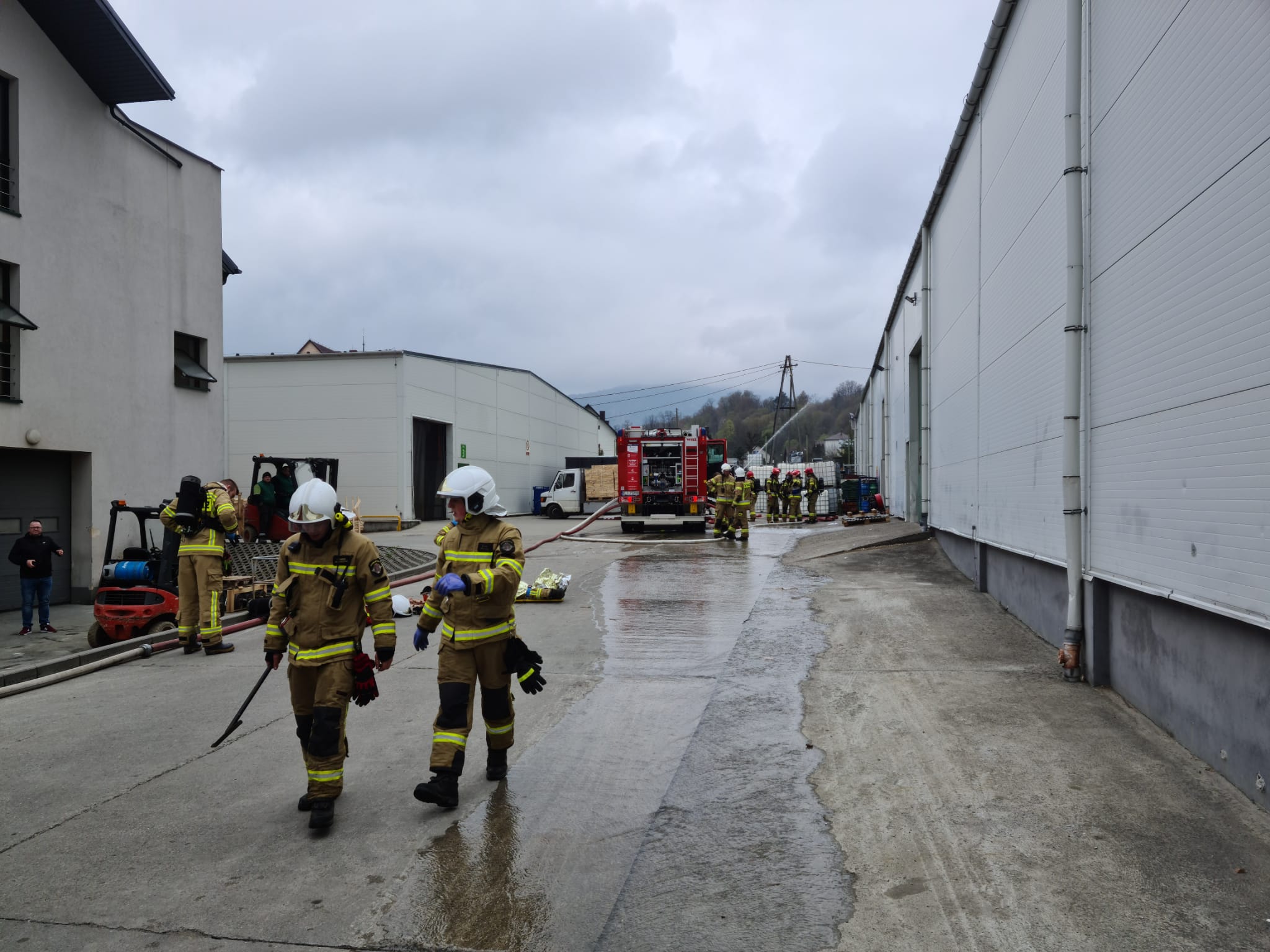 Po zapoznaniu się funkcjonariuszy i druhów z lokalizacją zakładu, jego układem a także prowadzonymi pracami produkcyjnymi i magazynowymi, przystąpiono do realizacji założenia ćwiczeń.