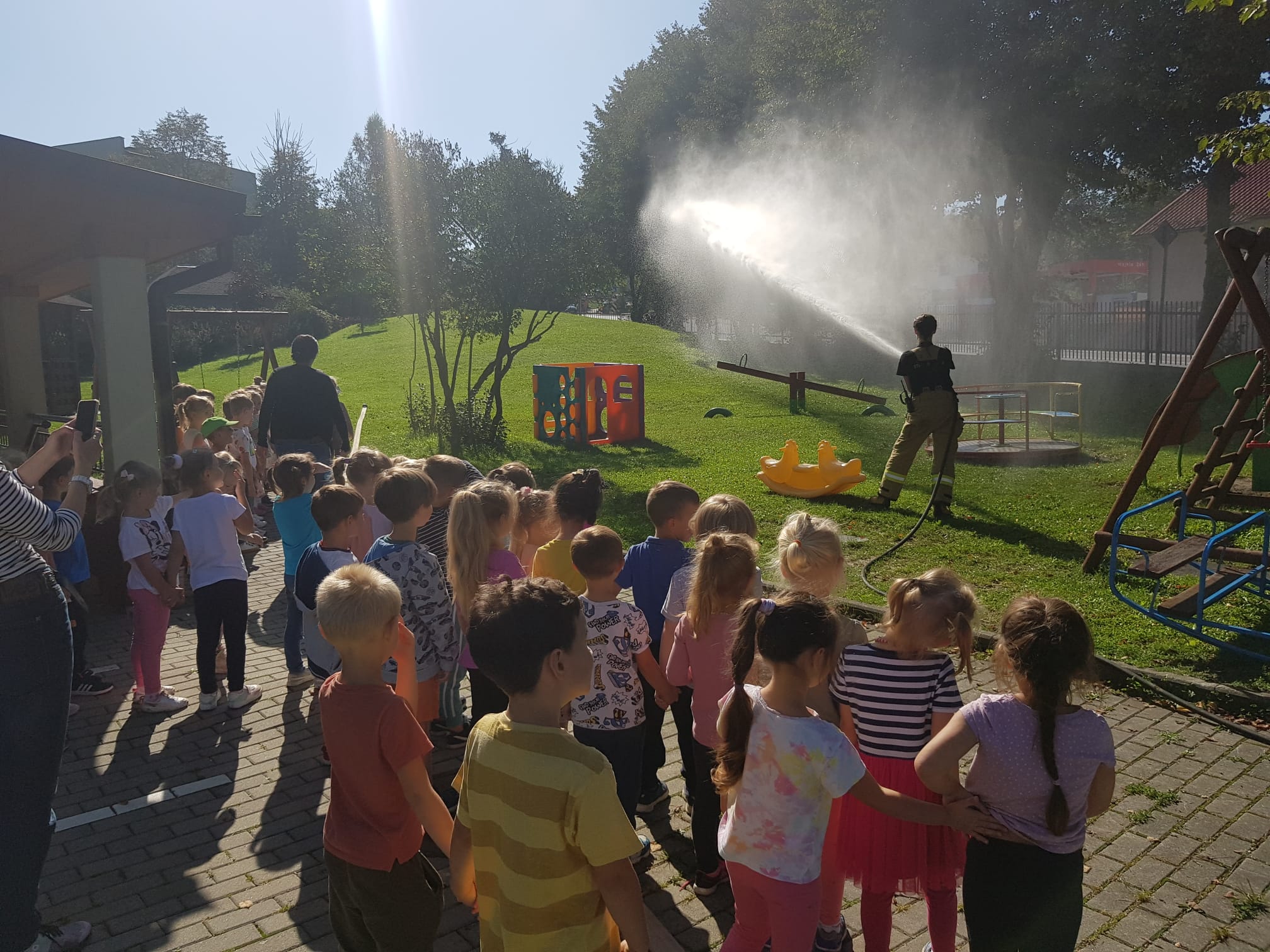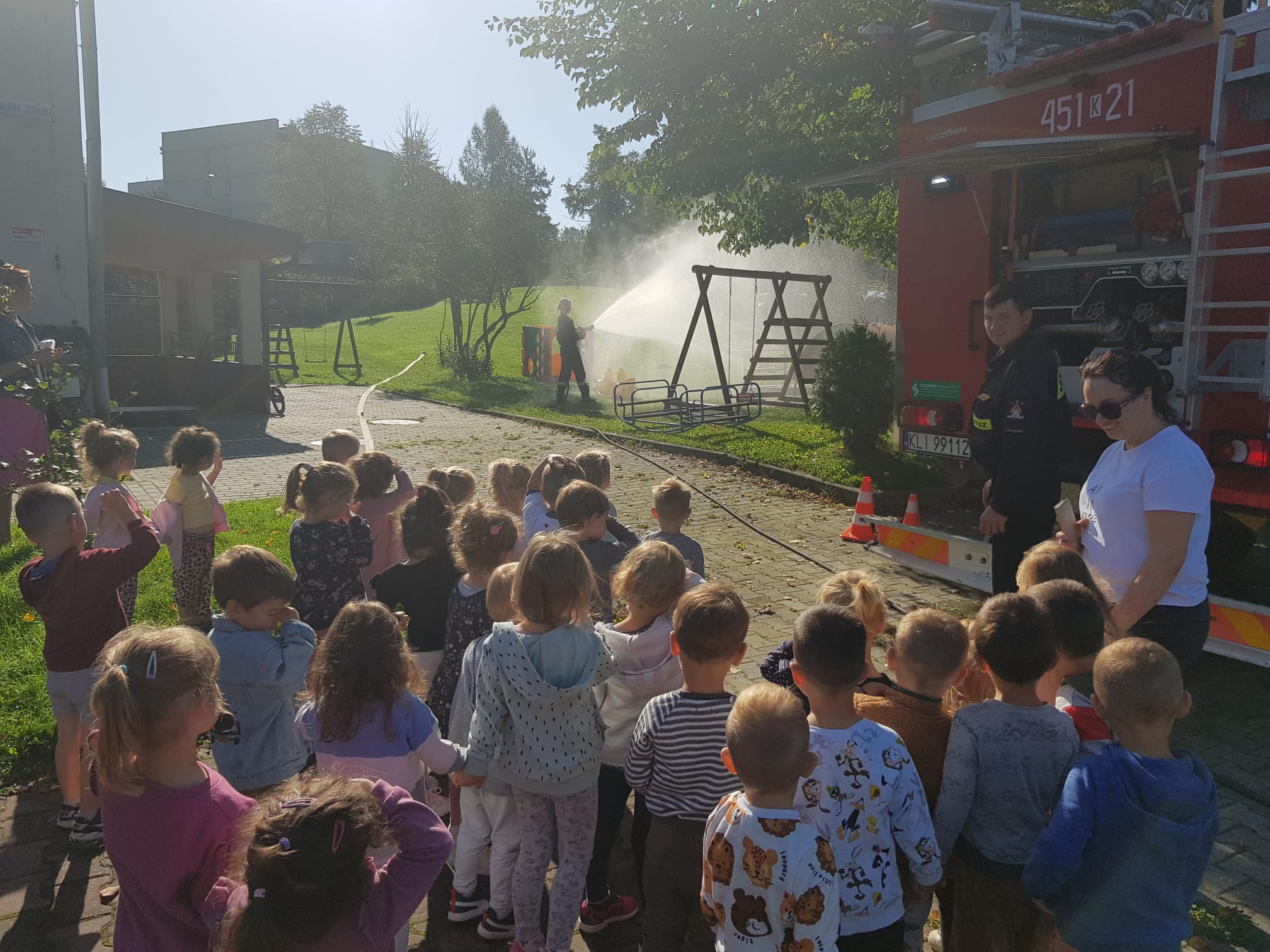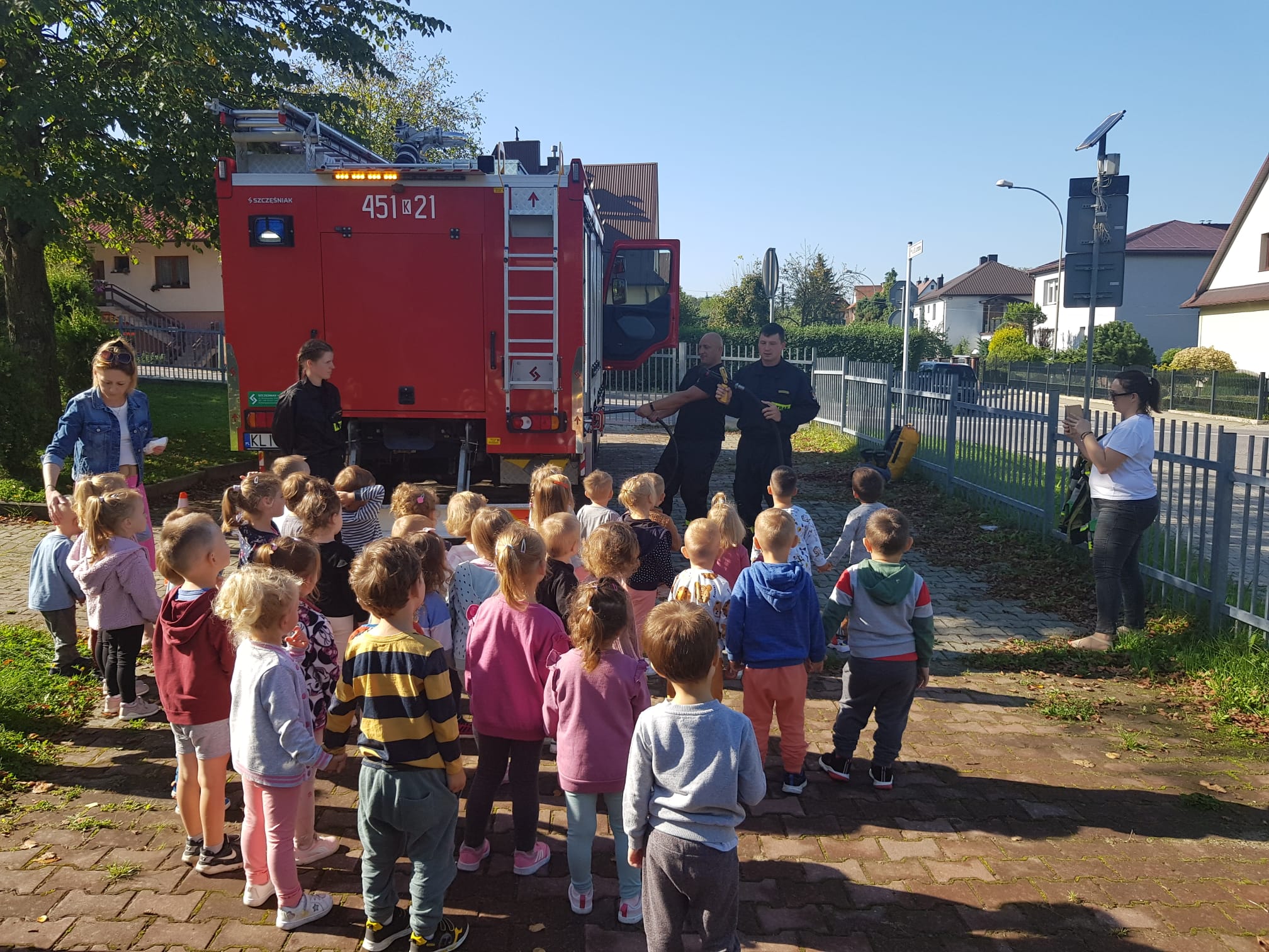 Podczas spotkania omówiono zachowanie podczas pożaru, przypomnieli warunki bezpiecznej ewakuacji i procedury zgłaszania zdarzenia a także zasady używania gaśnic, Utrwalano również znajomości telefonów alarmowych oraz znaków ostrzegawczych i informacyjnych.