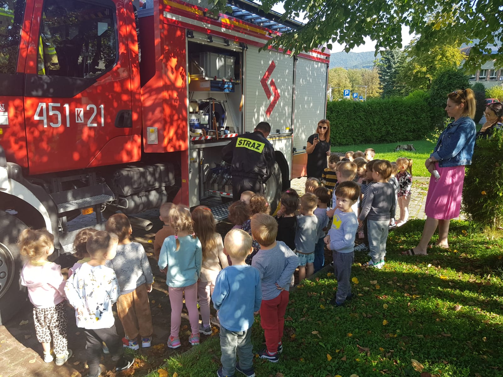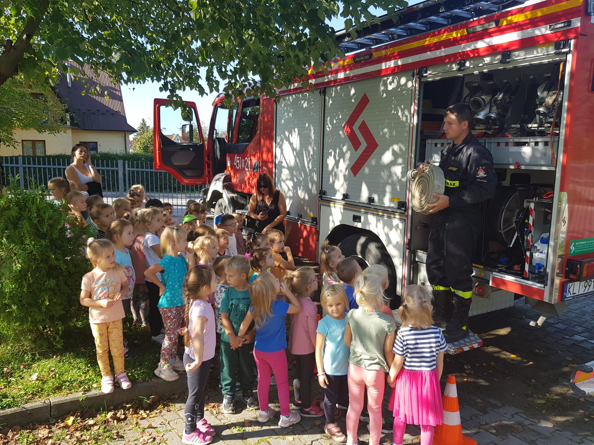 Funkcjonariusze Państwowej Straży Pożarnej uczestniczyli w próbnej ewakuacji Miejskiego Przedszkola nr 1 w Limanowej, następnie przeprowadził pogadankę oraz pokaz sprzętu pożarniczego.