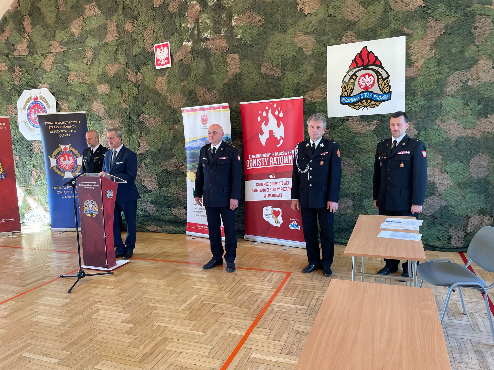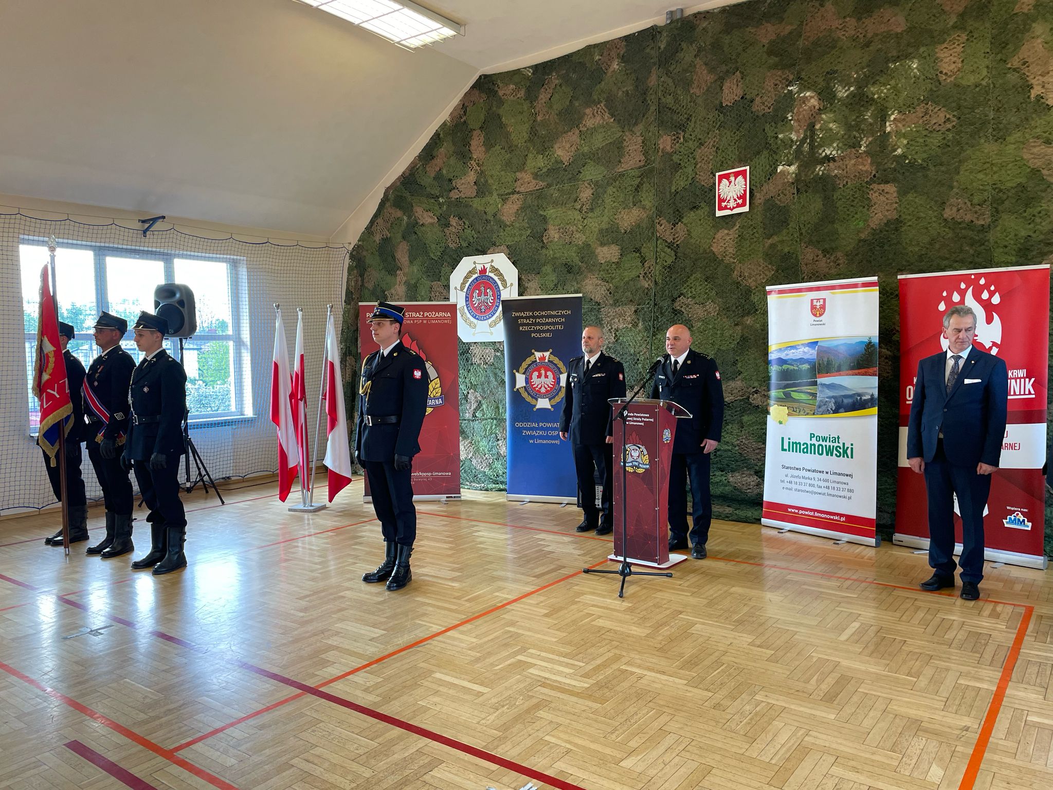 Ślubowanie nowych druhów przyjął Prezes Zarządu OP ZOSP RP st. bryg. w stanie spoczynku Grzegorz JANCZY. W uroczystości uczestniczył Starosta Powiatu Limanowskiego Mieczysław URYGA oraz gospodarz - Komendant Powiatowy PSP w Limanowej bryg. Tomasz PAWLIK wraz z oficerami KP PSP.