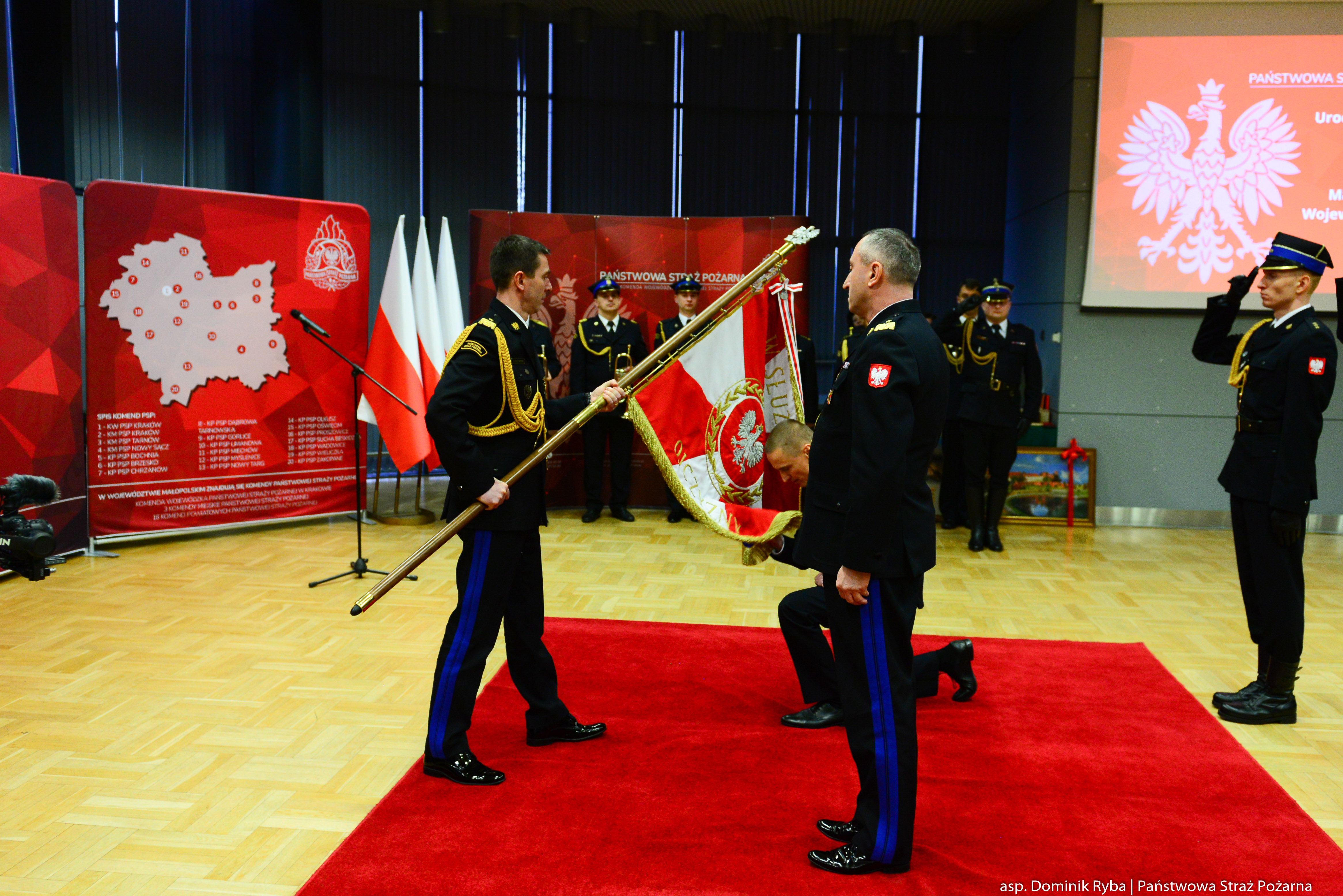 W ceremonii uczestniczyli parlamentarzyści z terenu województwa małopolskiego, Wojewoda Małopolski Krzysztof Jan Klęczar, przedstawiciele samorządu terytorialnego, służb mundurowych oraz instytucji współpracujących z Państwową Strażą Pożarną, Komendanci Miejscy i Powiatowi PSP, funkcjonariusze i pracownicy Komendy Wojewódzkiej PSP w Krakowie.