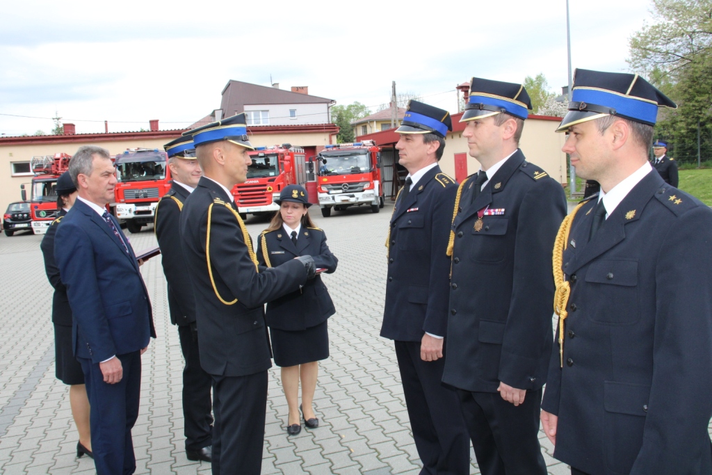 W kolejnej części uroczystości głos zabrał zastępca Małopolskiego Komendanta Wojewódzkiego Państwowej Straży Pożarnej mł.bryg. Przemysław Przeczek. Na wstępie pogratulował odznaczonym, awansowanym i wyróżnionym funkcjonariuszom. Podkreślił jak ważną rolę spełniają strażacy PSP i OSP w systemie bezpieczeństwa, kierując słowa uznania i podziękowania w imieniu Małopolskiego Komendanta Wojewódzkiego jak również własnym.