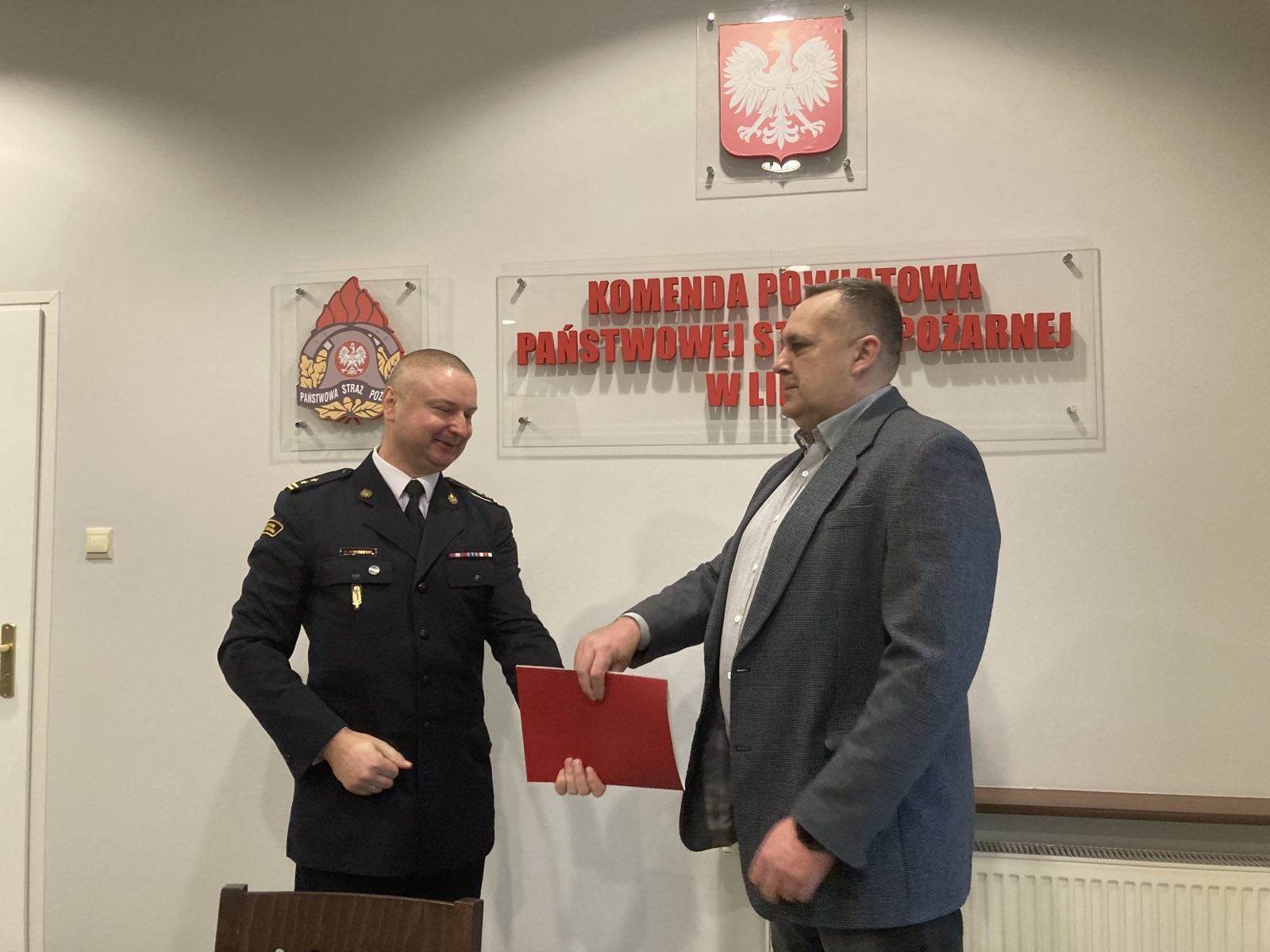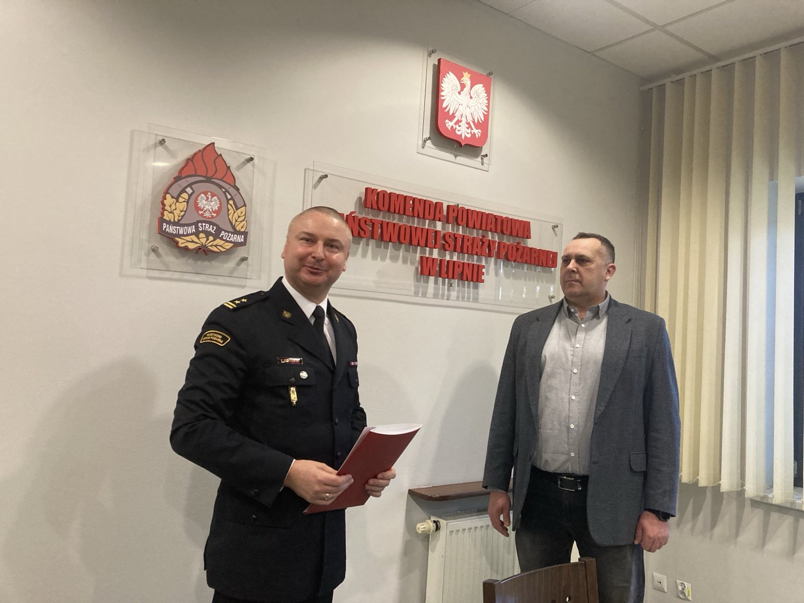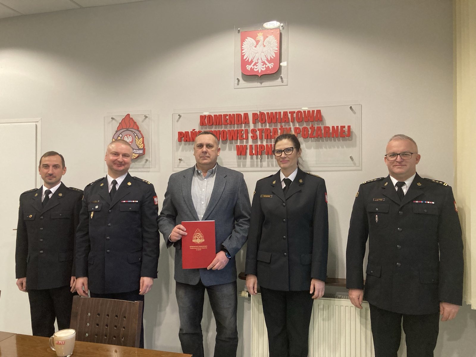 19 lutego 2024 roku z okazji Dnia Służby Cywilnej bryg. Sławomir Zawitowski Komendant Powiatowy Państwowej Straży Pożarnej w Lipnie wraz z Zastępcą st. bryg. Jakubem Politowskim i funkcjonariuszami KP PSP w Lipnie złożył życzenia i podziękował Panu Jackowi Aleksandrzakowi za zaangażowanie i wkład w wykonywanie obowiązków na stanowisku pracy w Korpusie Służby Cywilnej.