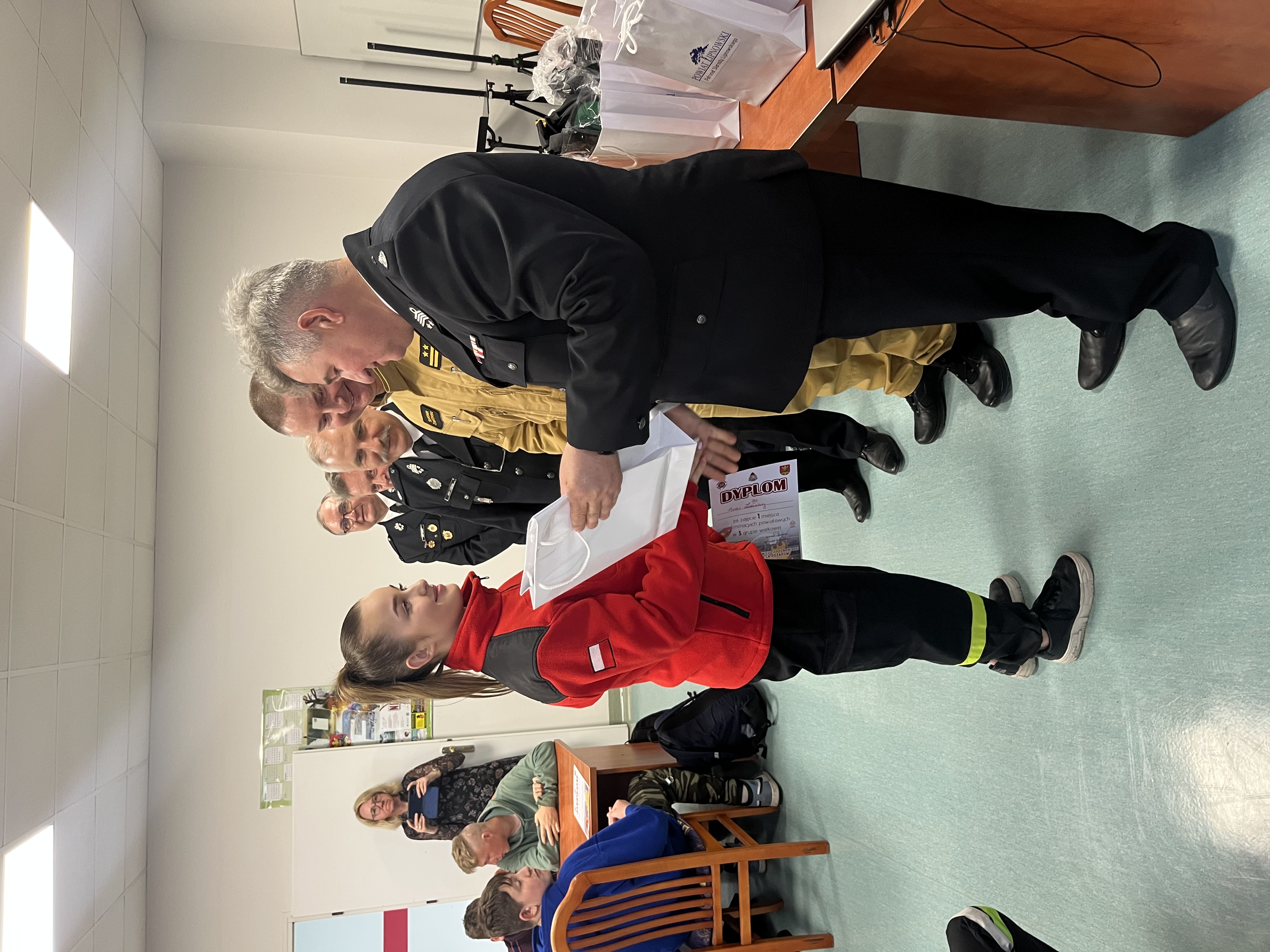 Zwycięzcy poszczególnych grup będą reprezentować powiat lipnowski na poziomie wojewódzkim turnieju organizowanym w Ciechocinku. Uczestnicy konkursu wiedzy oraz opiekunowie otrzymali nagrody ufundowane przez Samorząd Powiatu Lipnowskiego oraz firmę P.H.U. DRWAL Dariusz Domagalski. Wręczenia dokonali bryg. Sławomir Zawitowski Komendant Powiatowy PSP w Lipnie oraz dh Zbigniew Agaciński Prezes Zarządu Oddziału Powiatowego Związku OSP RP w Lipnie.