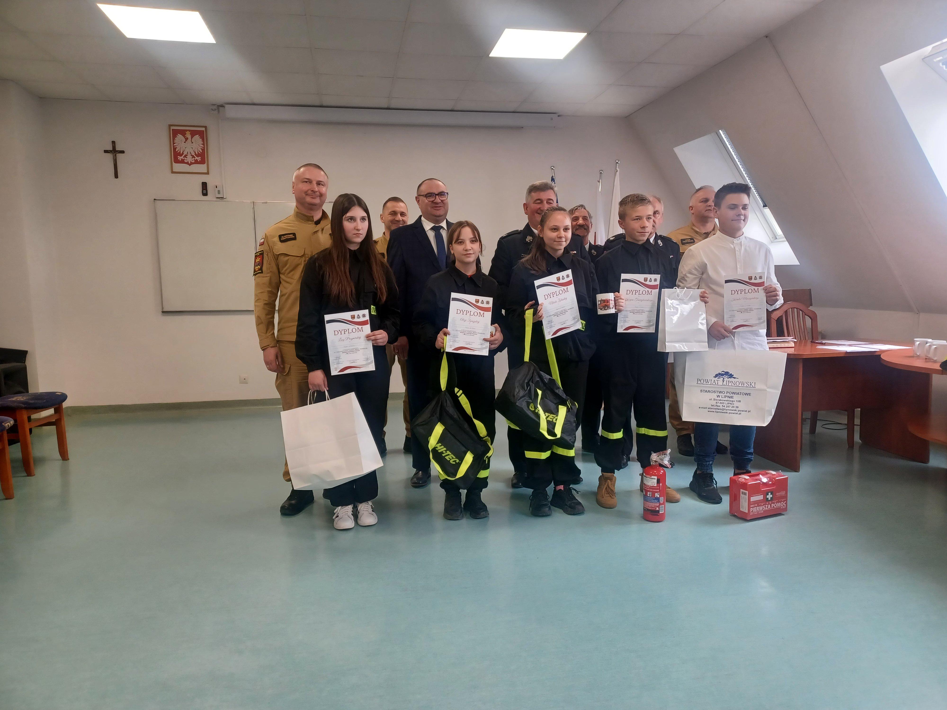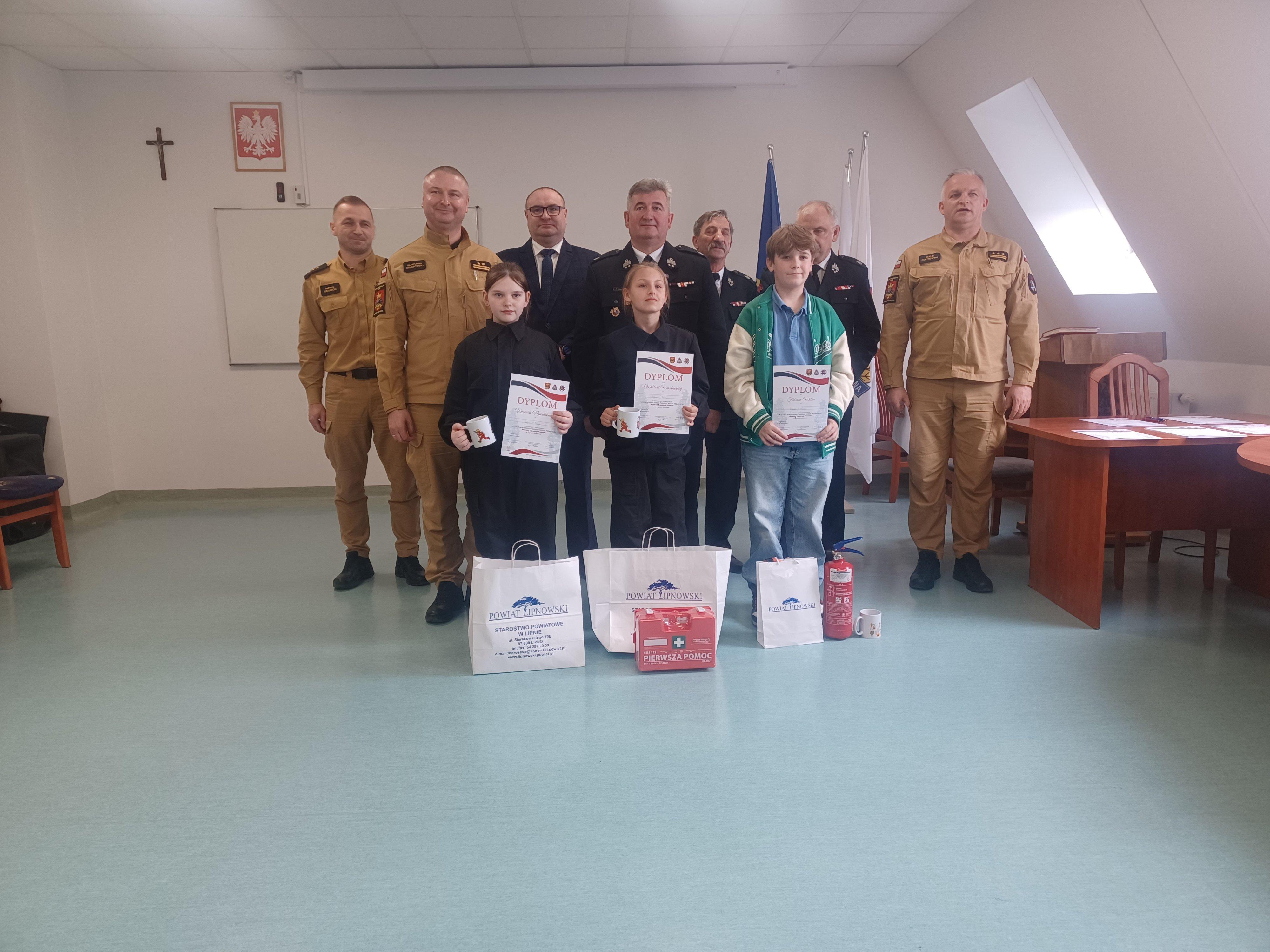 25 kwietnia 2024 roku w Komendzie Powiatowej Państwowej Straży Pożarnej w Lipnie odbyły się eliminacje powiatowe XLVI Ogólnopolskiego Turnieju Wiedzy Pożarniczej „MŁODZIEŻ ZAPOBIEGA POŻAROM”. W turnieju objętym Honorowym Patronatem Starosty Lipnowskiego udział wzięły dzieci i młodzież ze szkół podstawowych z Mysłakówka i Tłuchowa oraz członkowie Młodzieżowych Drużyn Pożarniczych działających przy OSP Lipno, OSP Chrostkowo, Karmelicka OSP Wola, OSP Jarczewo, OSP Wioska i OSP Wólka. W przerwie konkursu Jednostka Ratowniczo-Gaśnicza PSP zorganizowała zwiedzanie swojej siedziby, zaprezentowała sprzęt pożarniczy oraz przedstawiła pokazy ratownicze. Komisja składała się z funkcjonariuszy KP PSP oraz członków Prezydium ZOP Zw. OSP RP. Starostwo Powiatowe w Lipnie oraz Komenda Powiatowa PSP w Lipnie ufundowała nagrody rzeczowe dla zwycięzców oraz wszystkich uczestników eliminacji powiatowych. Dodatkowo dla zwycięzców z poszczególnych grup Przedsiębiorstwo Handlowo - Usługowe "DRWAL" BHP i P.POŻ – ufundowało nagrody rzeczowe w postaci podręcznych apteczek I pomocy oraz gaśnic proszkowych. Poczęstunek w postaci bułek, jagodzianek, pączków i ciast Zakład Cukierniczo-Piekarniczy Jaszewscy sp.j. z Lipna. Gratulujemy wszystkim uczestnikom i trzymamy kciuki za naszych przedstawicieli na etapie wojewódzkim.