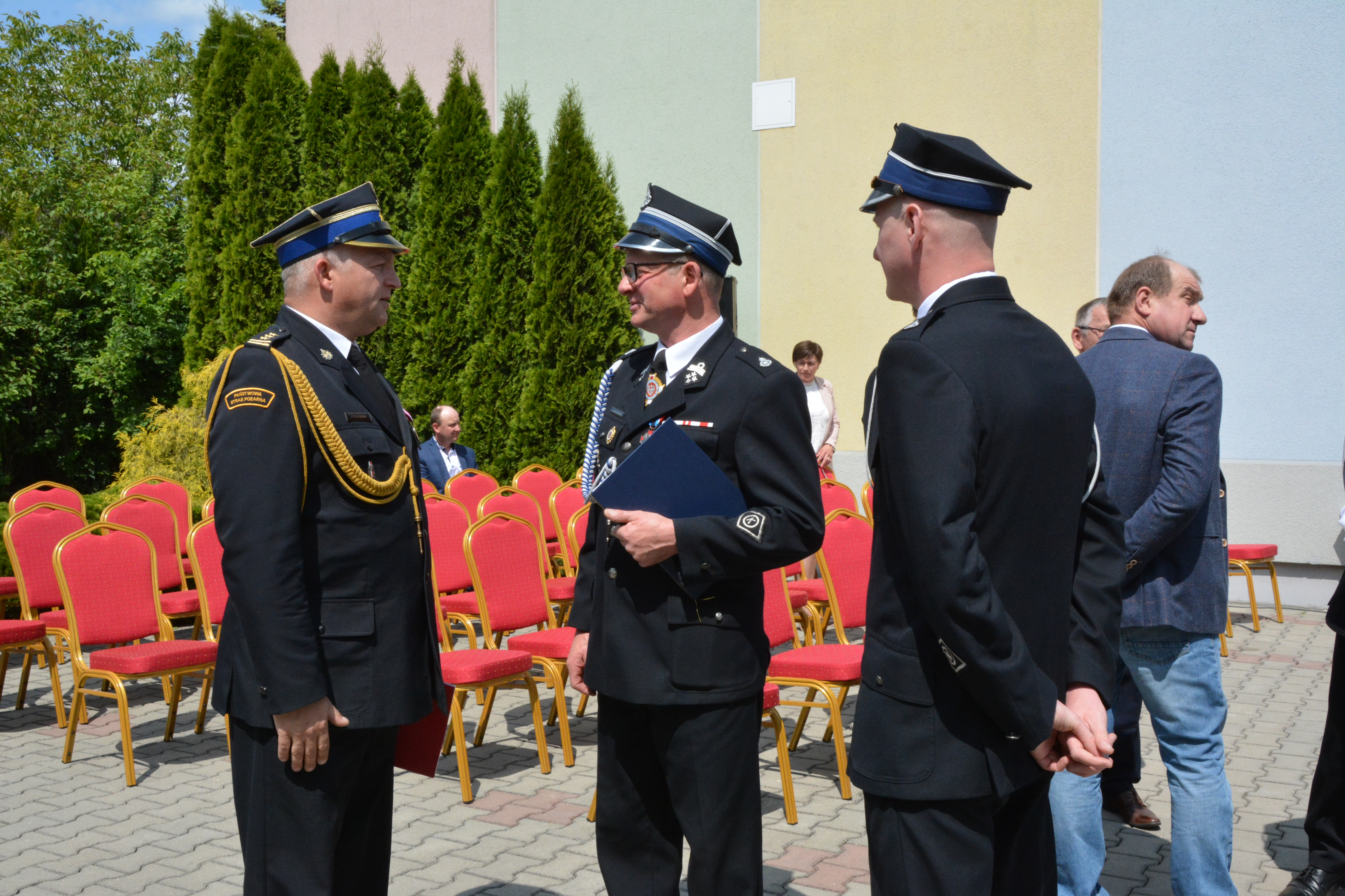 W uroczystości udział wzięli: Pani Aneta Jędrzejewska – Członek Zarządu Województwa Kujawsko-Pomorskiego, st. bryg. Jakub Politowski – Zastępca Komendanta Powiatowego PSP w Lipnie, dh Zbigniew Agaciński – Prezes Zarządu Oddziału Powiatowego ZOSP RP w Lipnie, ks. Mirosław Korytowski – Kapelan Strażaków Powiatu lipnowskiego oraz Pan Andrzej Szychulski – Wójt Gminy Lipno.