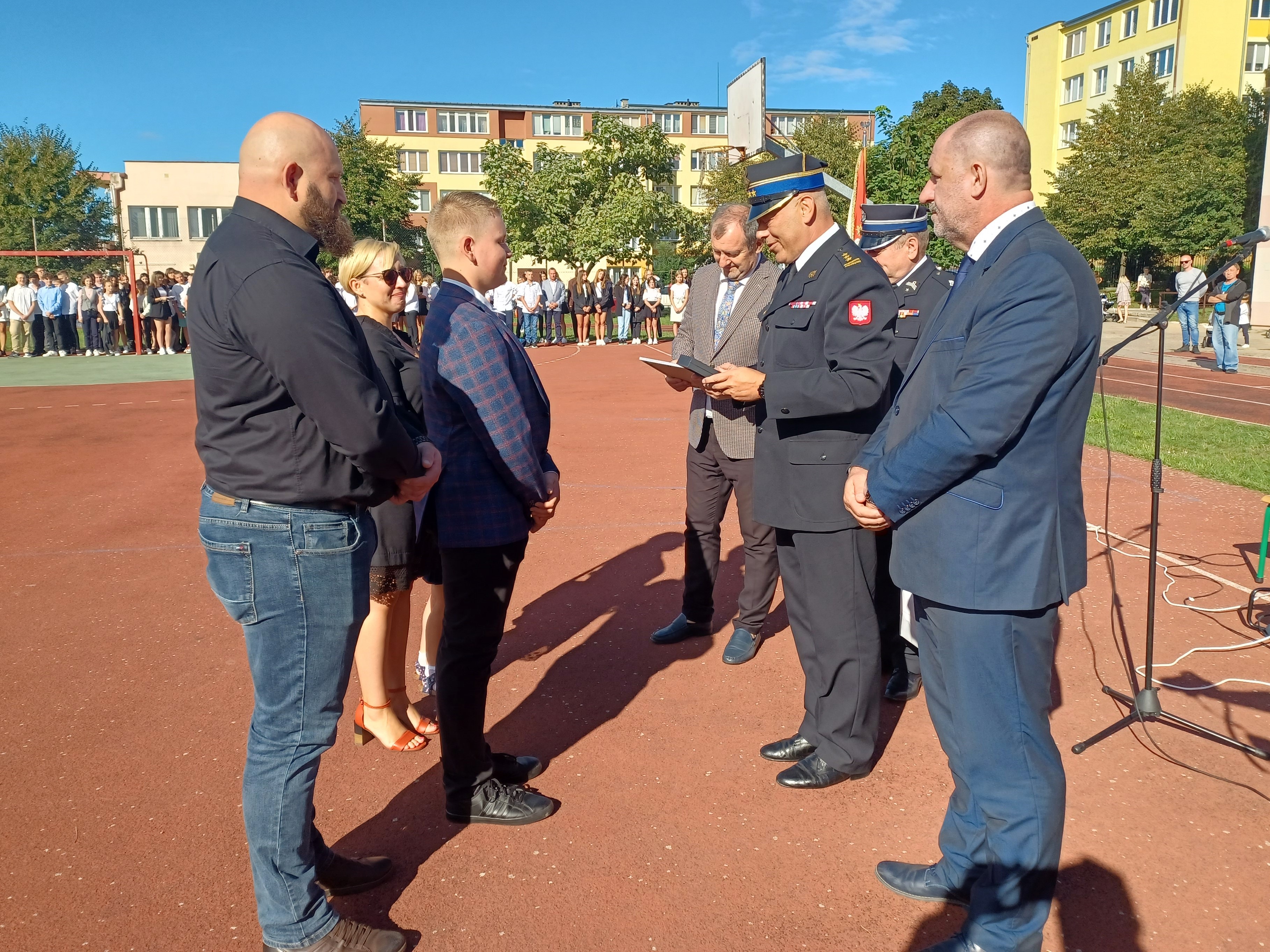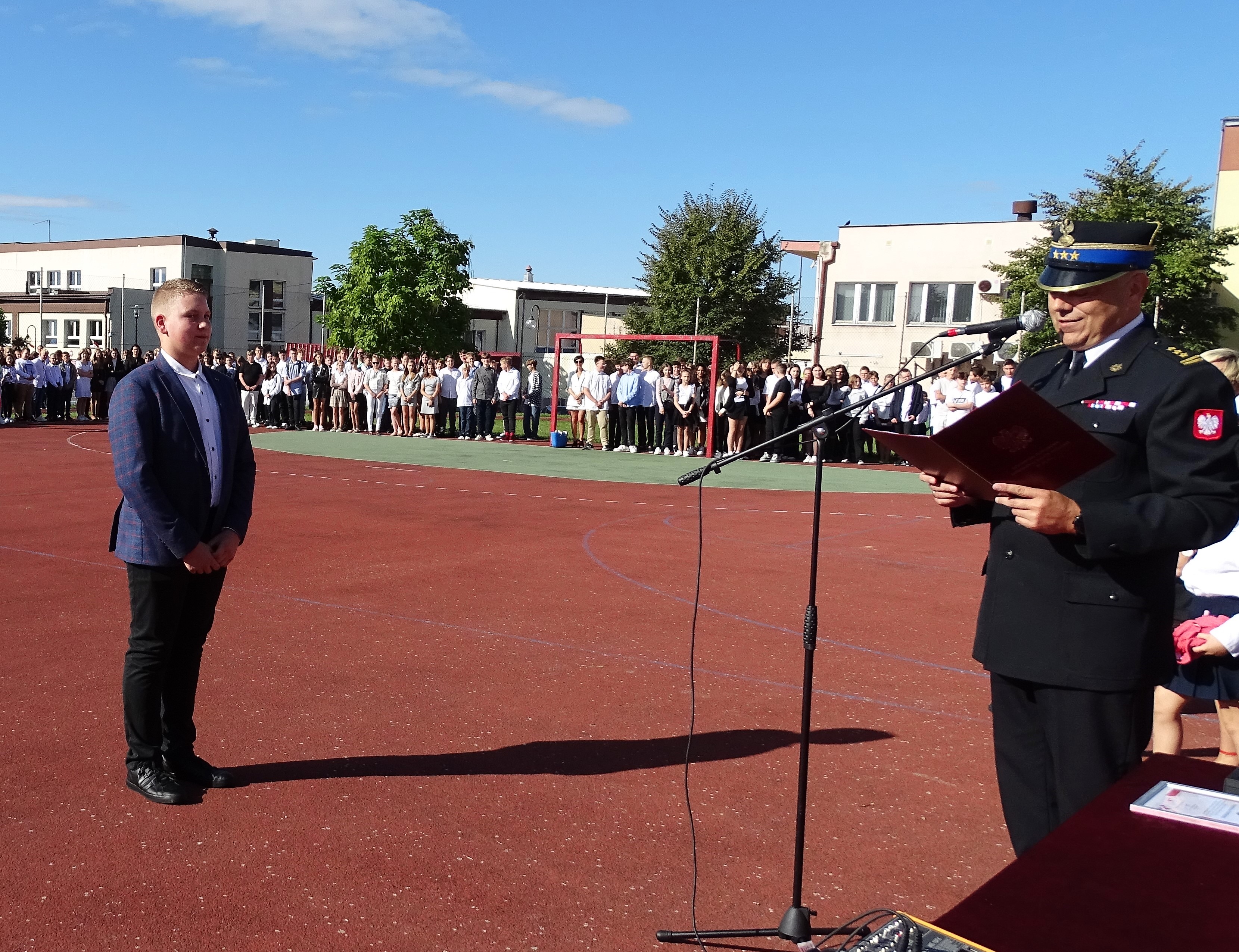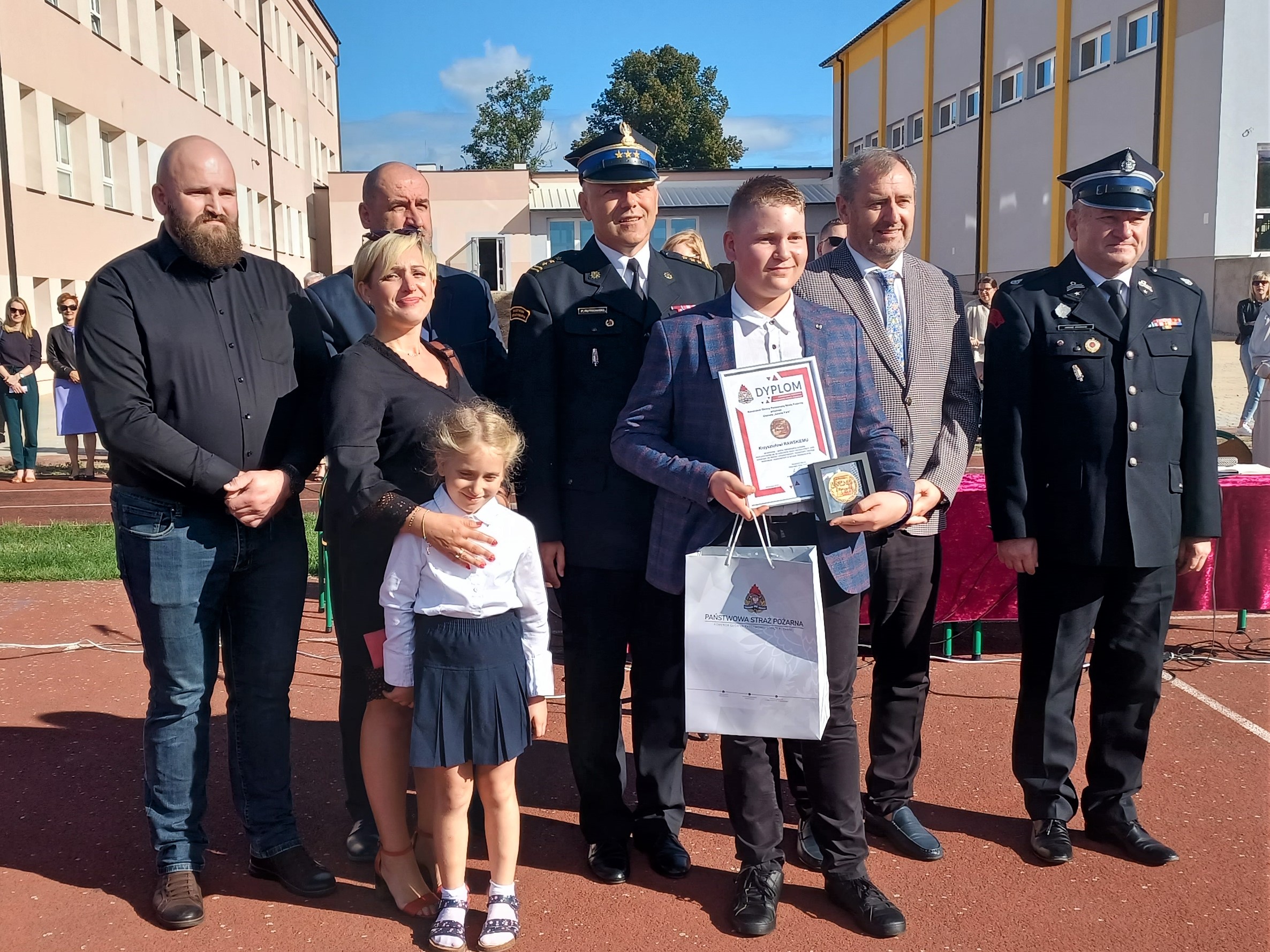 1 września 2022 r. Komendant Powiatowy Państwowej Straży Pożarnej w Lipnie st. bryg. Piotr Rutkowski uczestniczył w rozpoczęciu roku szkolnego w Szkole Podstawowej nr 3 w Lipnie. Podczas uroczystości w obecności społeczności szkolnej oraz zaproszonych gości została wręczona Odznaka Komendanta Głównego Państwowej Straży Pożarnej „Iuvenis Forti” uczniowi tej szkoły Krzysztofowi Rawskiemu. W wydarzeniu uczestniczyła także najbliższa rodzina wyróżnionego.