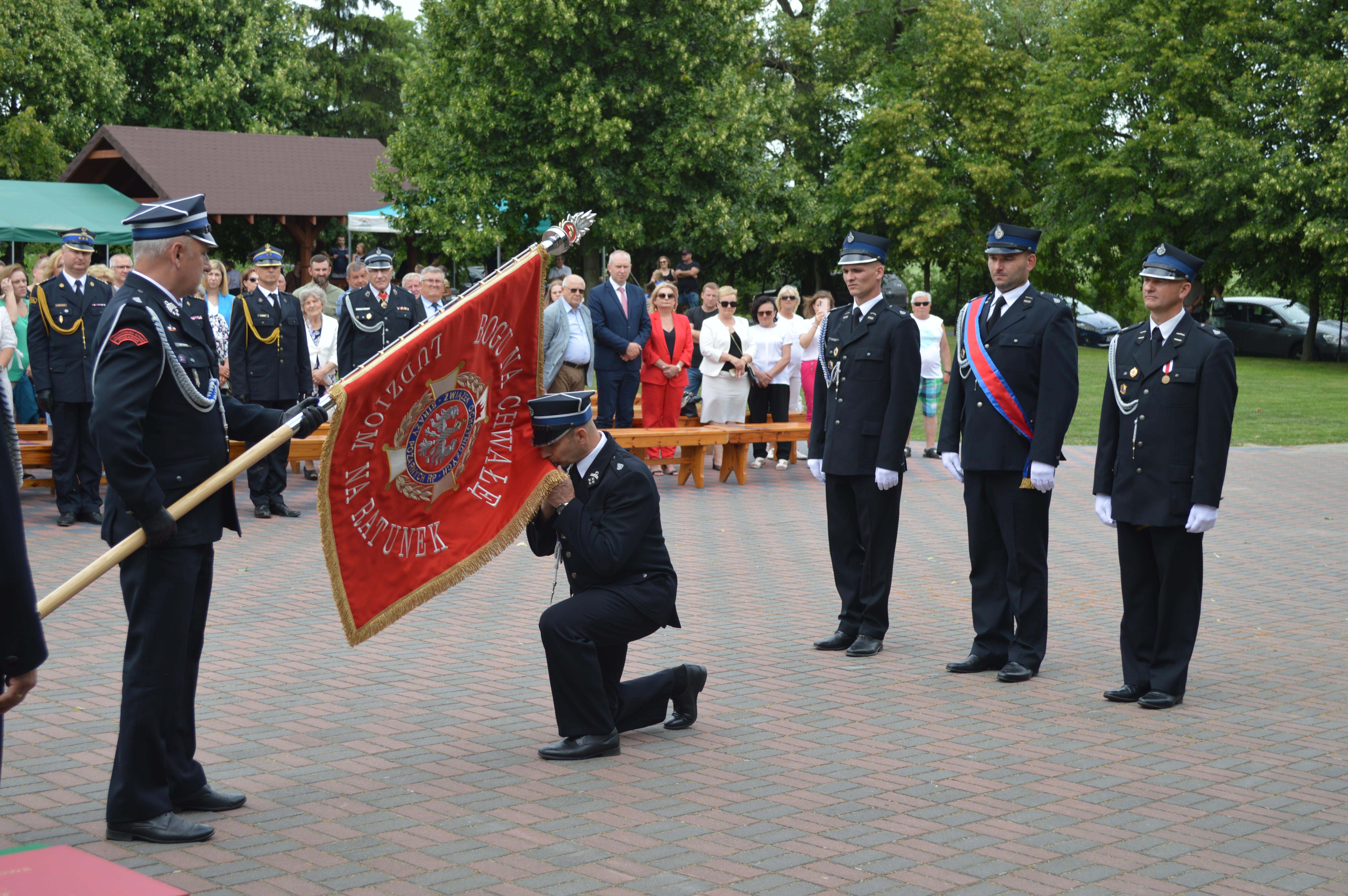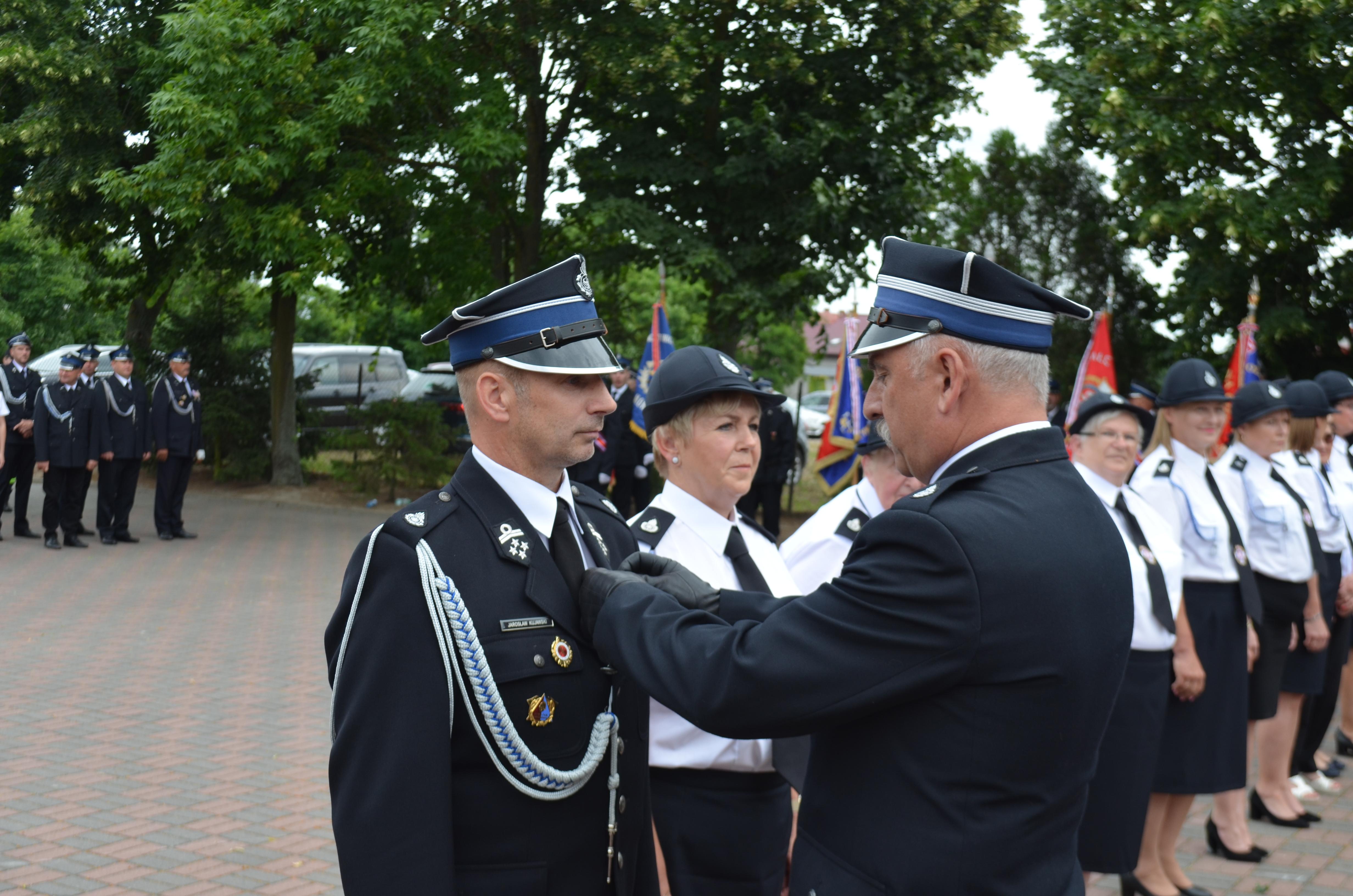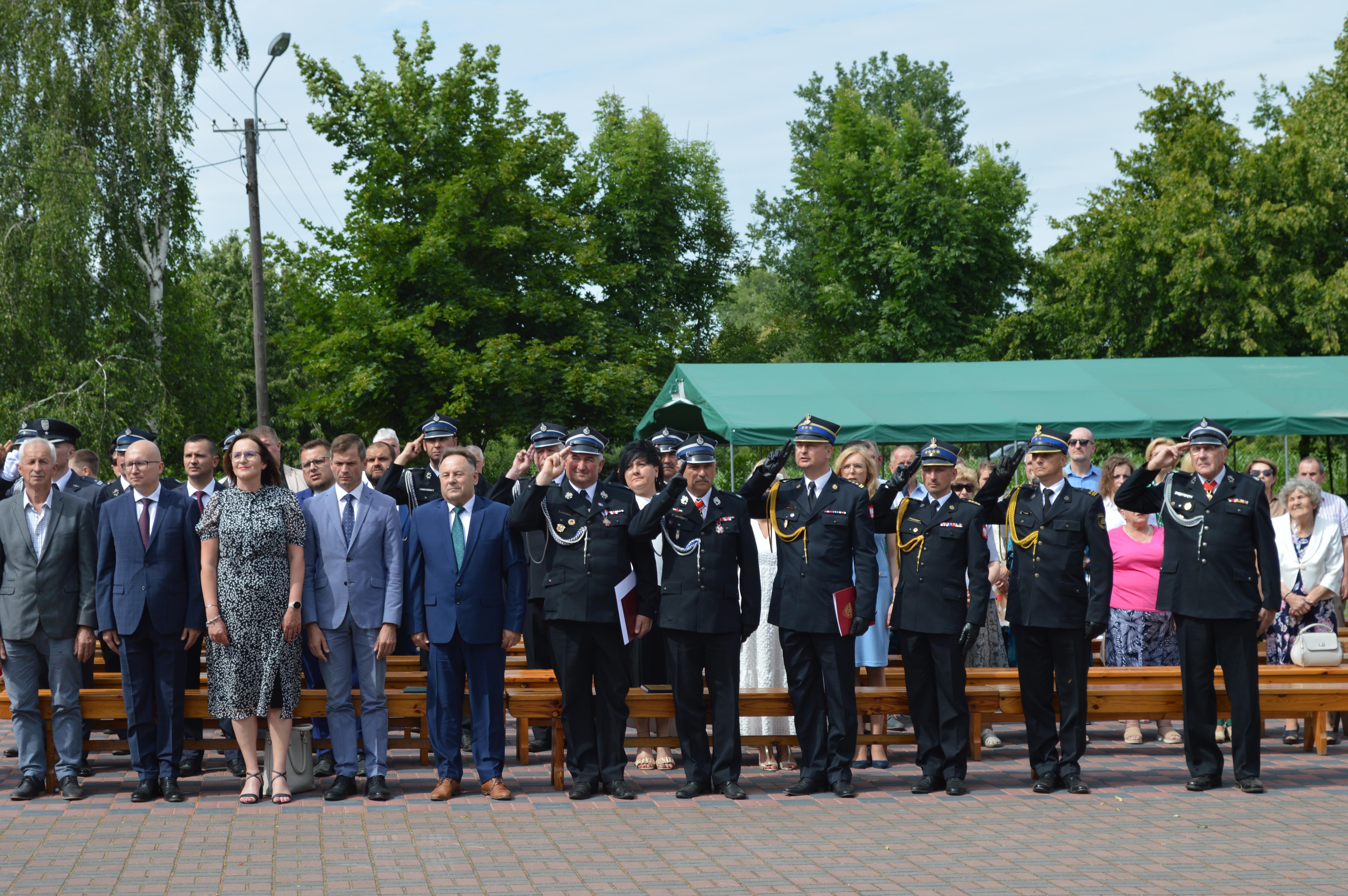 Podczas obchodów Jubileuszu uhonorowano zasłużonych druhów oraz sztandar Ochotniczej Straży Pożarnej w Krojczynie za dotychczasową działalność w ochronie przeciwpożarowej.