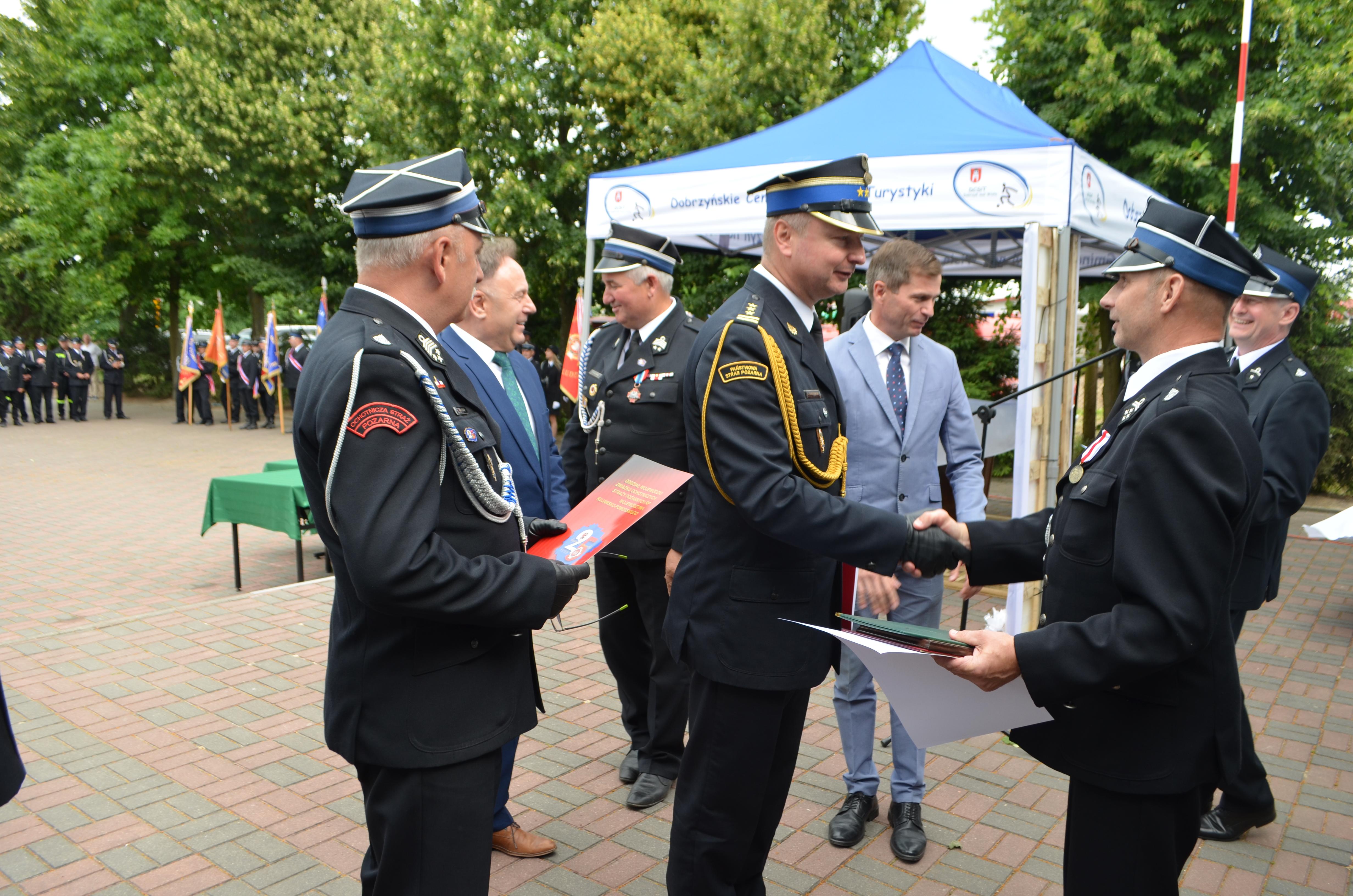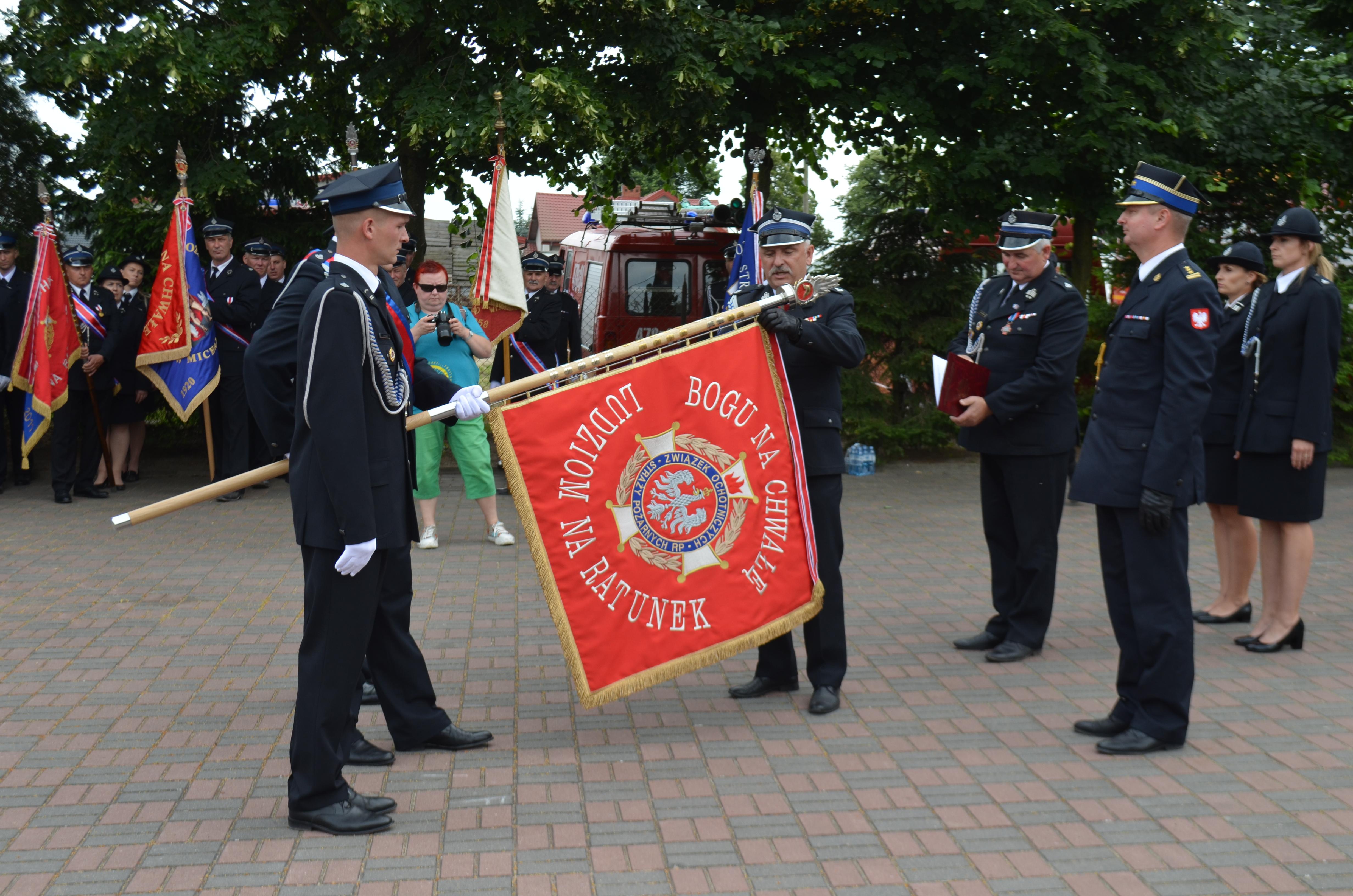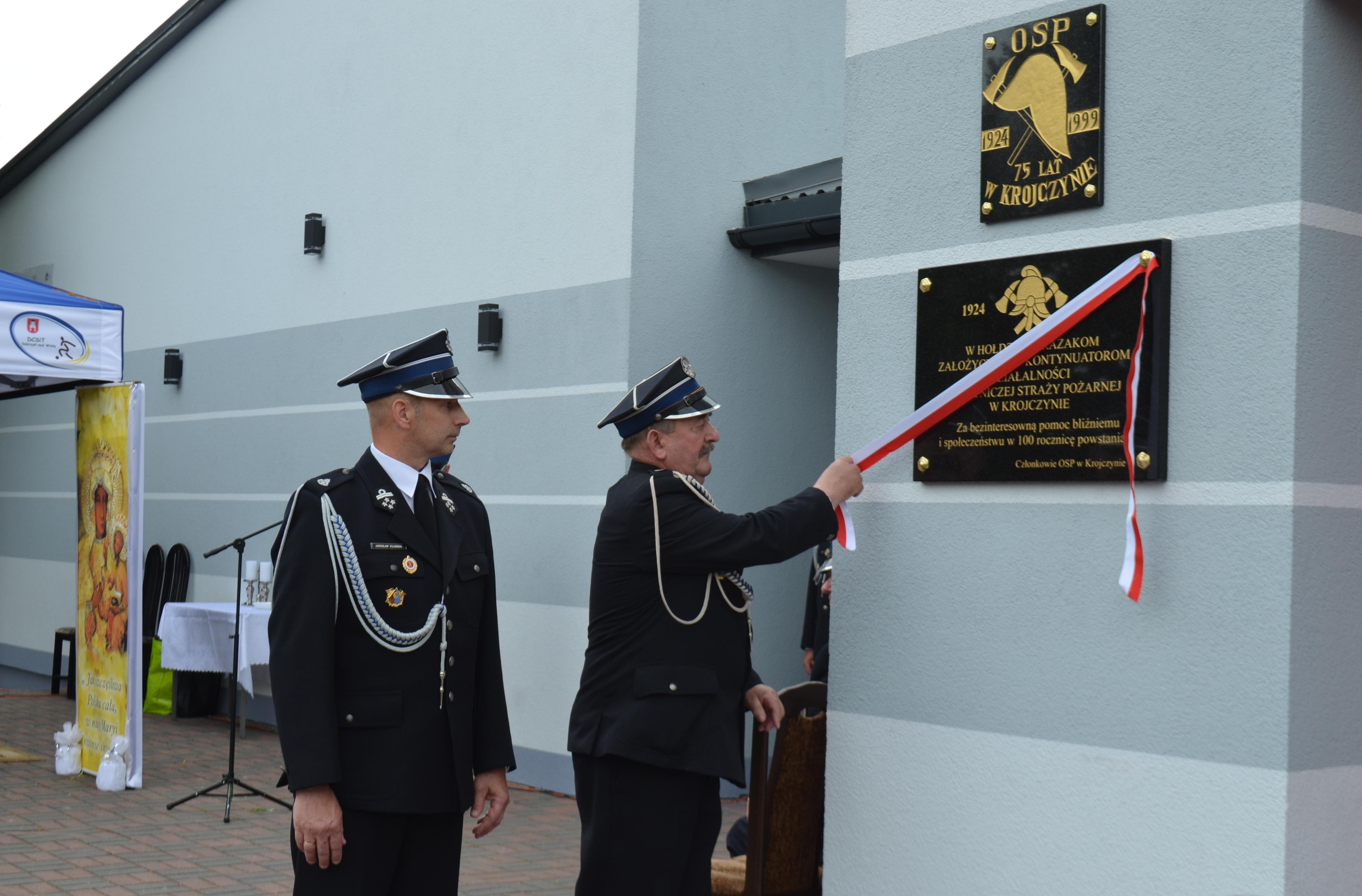 Podczas obchodów Jubileuszu uhonorowano zasłużonych druhów oraz sztandar Ochotniczej Straży Pożarnej w Krojczynie za dotychczasową działalność w ochronie przeciwpożarowej.