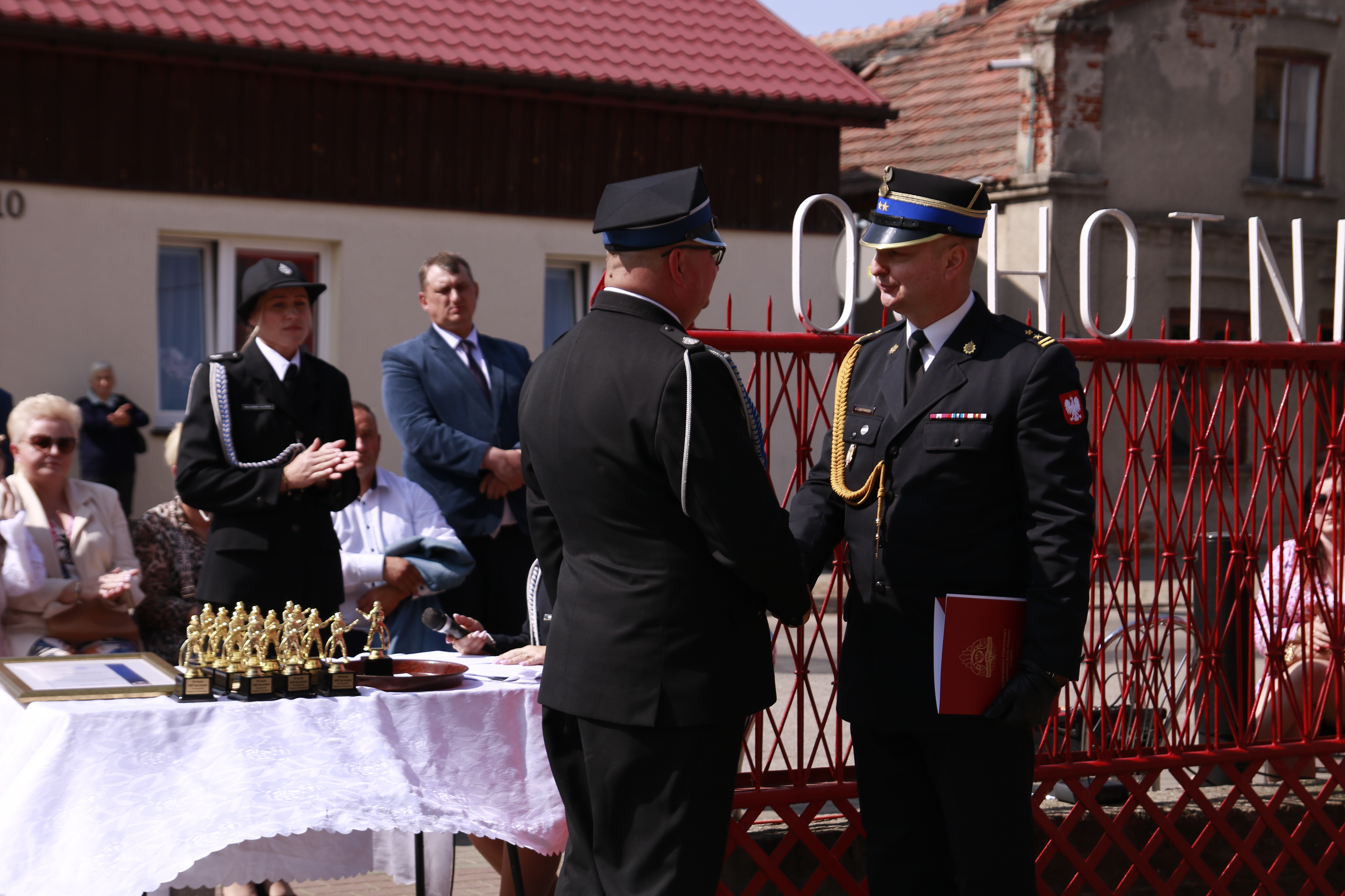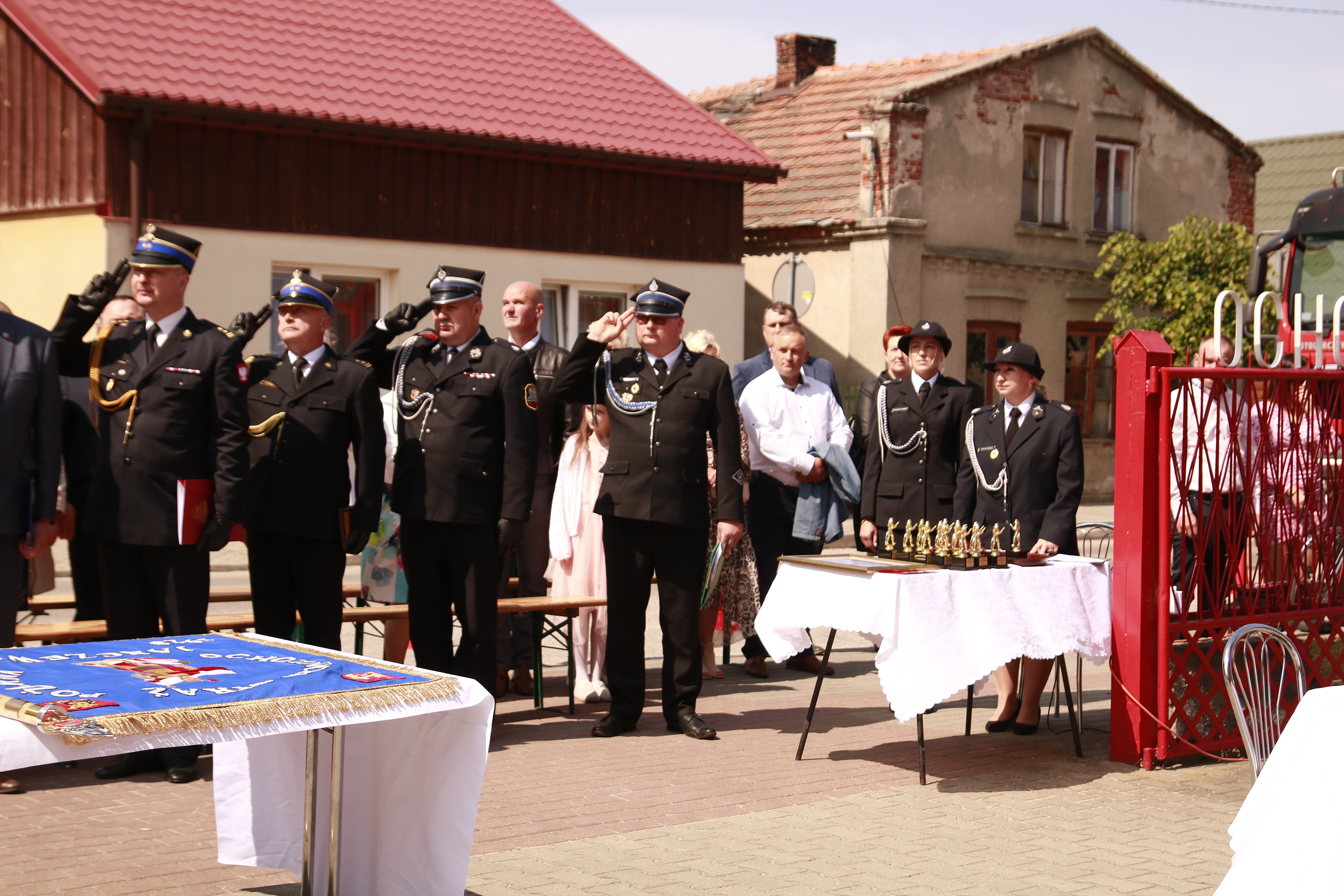 Podczas obchodów Jubileuszu uhonorowano zasłużonych druhów oraz wręczono okolicznościowe podziękowania dla fundatorów sztandaru i osób wspierających Ochotniczą Straż Pożarną w Jarczewie.