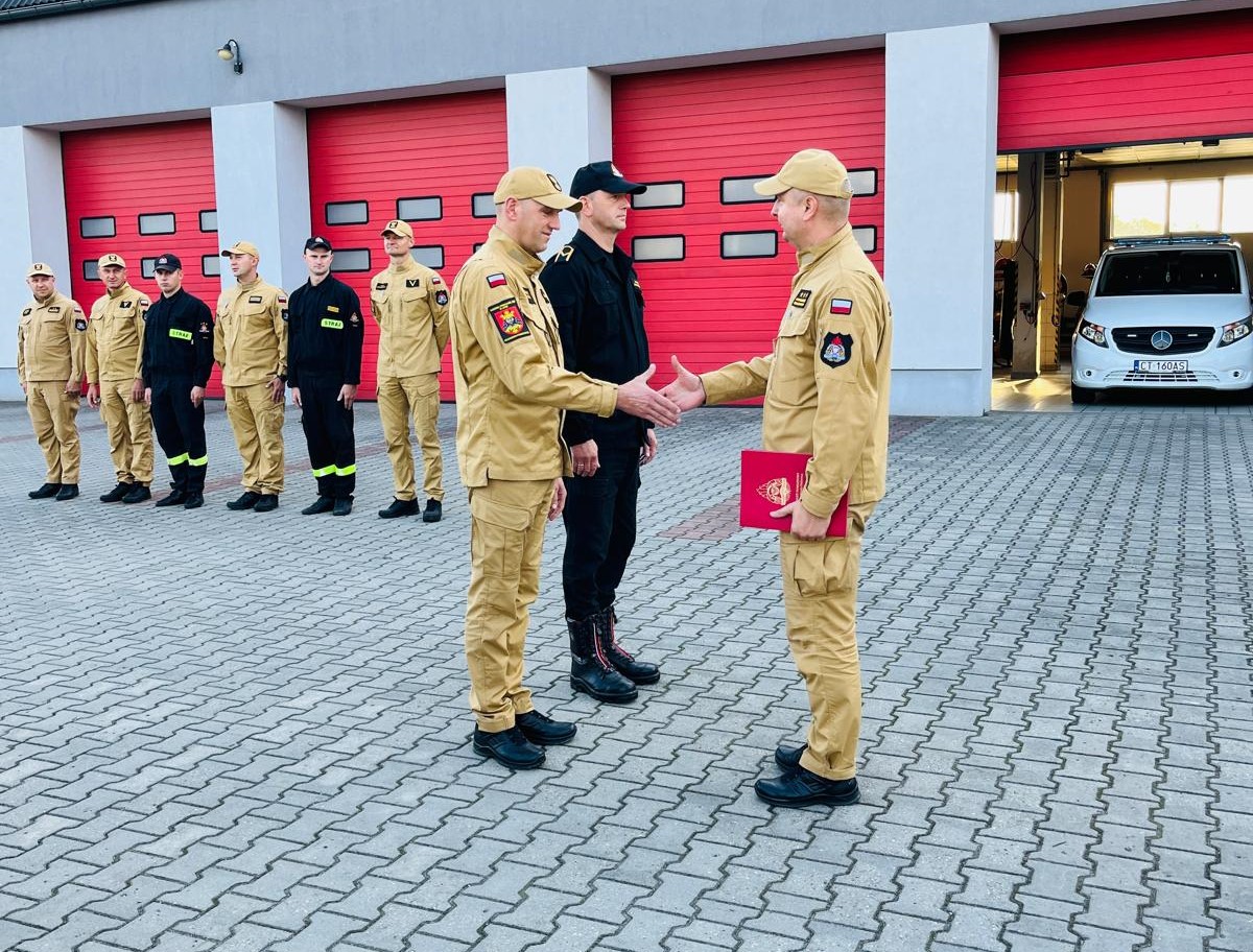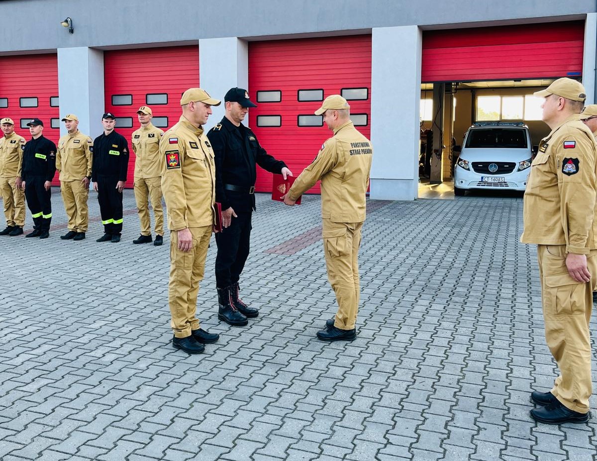 18 września 2024 r. podczas zmiany służby w podziale bojowym Komendant Powiatowy Państwowej Straży Pożarnej w Lipnie st. bryg. Sławomir Zawitowski podziękował za wieloletnią służbę i realizację obowiązków służbowych asp. sztab. Dariuszowi Pokłackiemu oraz ogn. Marcinowi Sosnowskiemu. Funkcjonariusze obchodzą kolejno 20-lecie służby oraz 25-lecie służby i pracy. Życzymy zdrowia oraz dalszych sukcesów w służbie w Państwowej Straży Pożarnej.