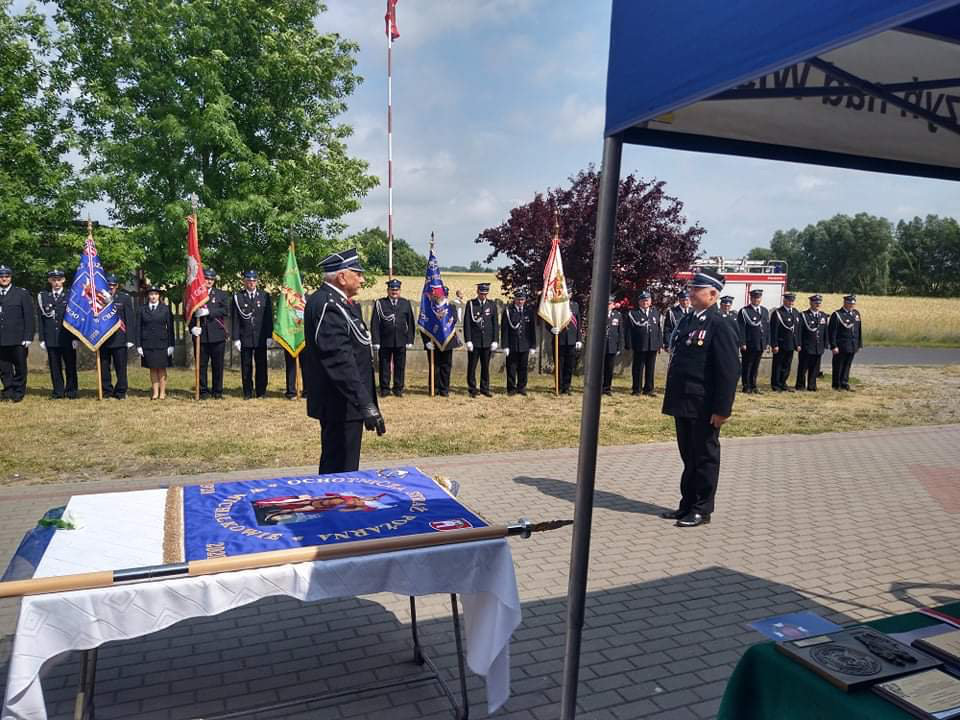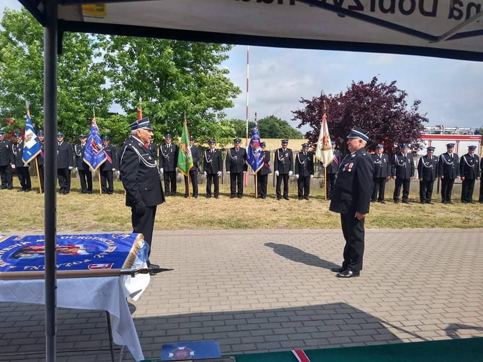 W uroczystości udział wzięli: Pani Aneta Jędrzejewska – Członek Zarządu Województwa Kujawsko-Pomorskiego, Pan Piotr Wiśniewski Burmistrz Miasta i Gminy Dobrzyń nad Wisłą, dh Zbigniew Agaciński Prezes Zarządu Oddziału Powiatowego ZOSP RP w Lipnie oraz Zastępca Komendanta Powiatowego PSP w Lipnie bryg. Jakub Politowski.