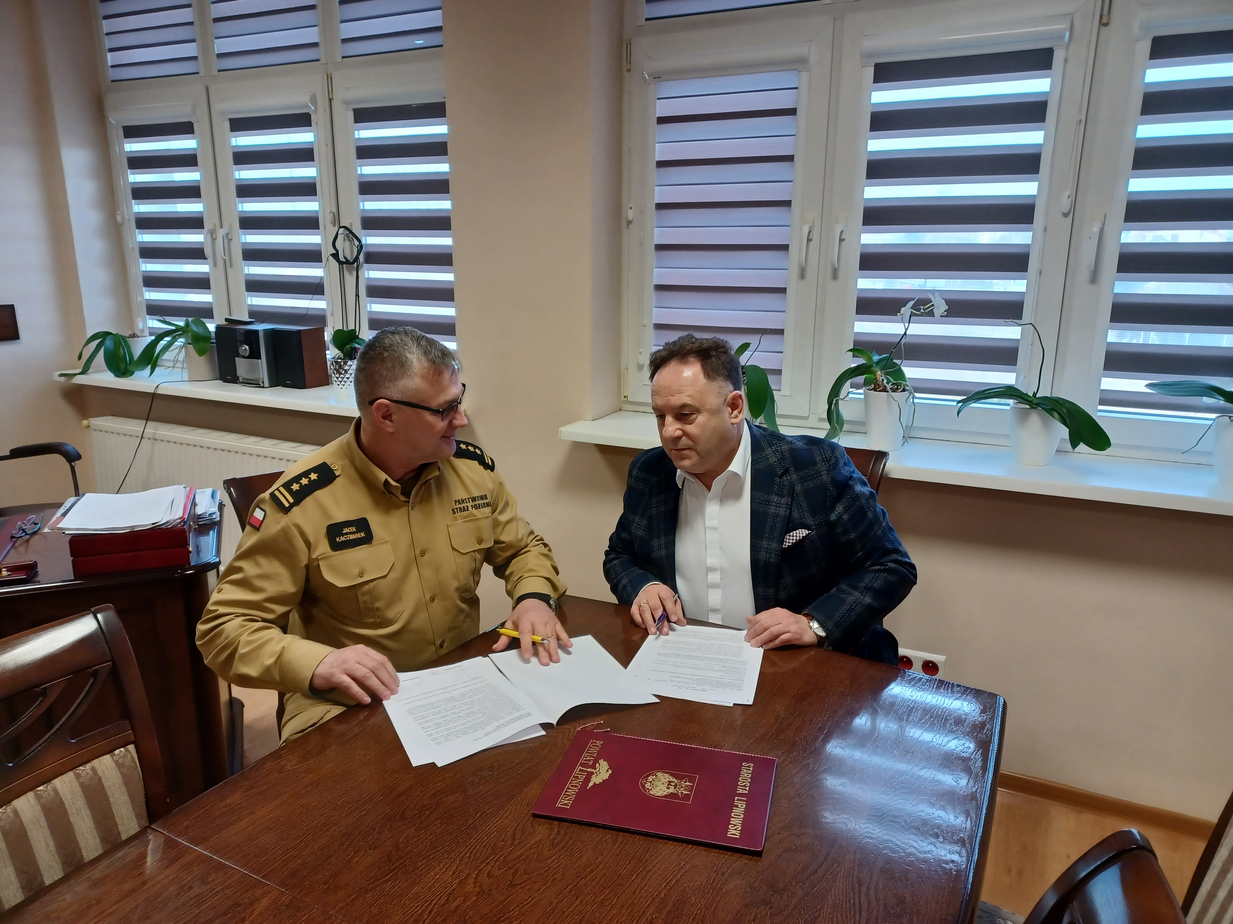 24 lutego w siedzibie Starostwa Powiatowego w Lipnie Kujawsko-Pomorski Komendant Wojewódzki PSP st. bryg. Jacek Kaczmarek i Starosta Lipnowski Krzysztof Baranowski podpisali porozumienie w sprawie przekazania przez Powiat Lipnowski środków finansowych w wysokości 150 000 zł na zakup ciężkiego samochodu ratowniczo-gaśniczego z napędem 4x4 dla Komendy Powiatowej Państwowej Straży Pożarnej w Lipnie. W spotkaniu uczestniczył także Komendant Powiatowy PSP w Lipnie st. bryg. Piotr Rutkowski.