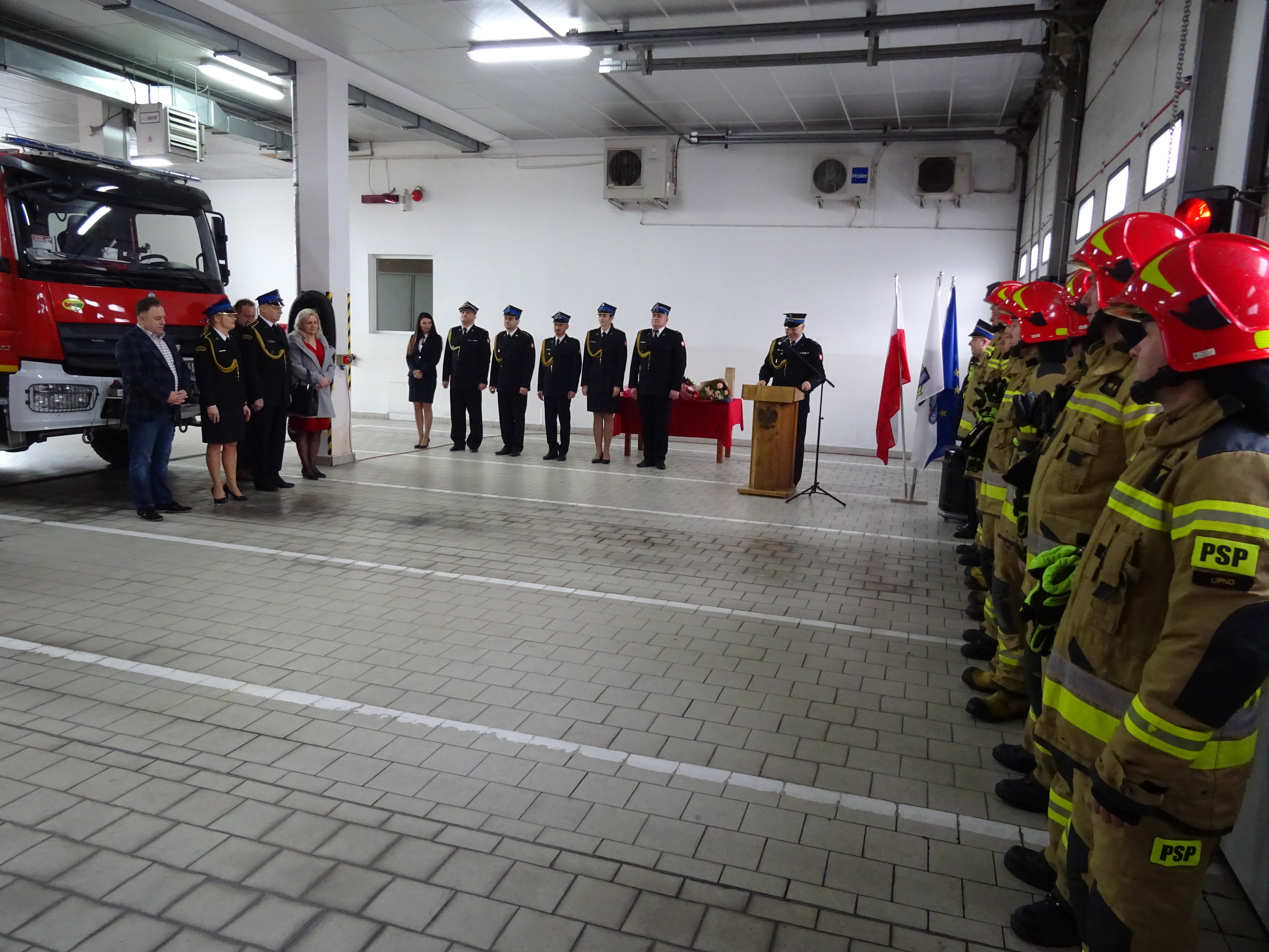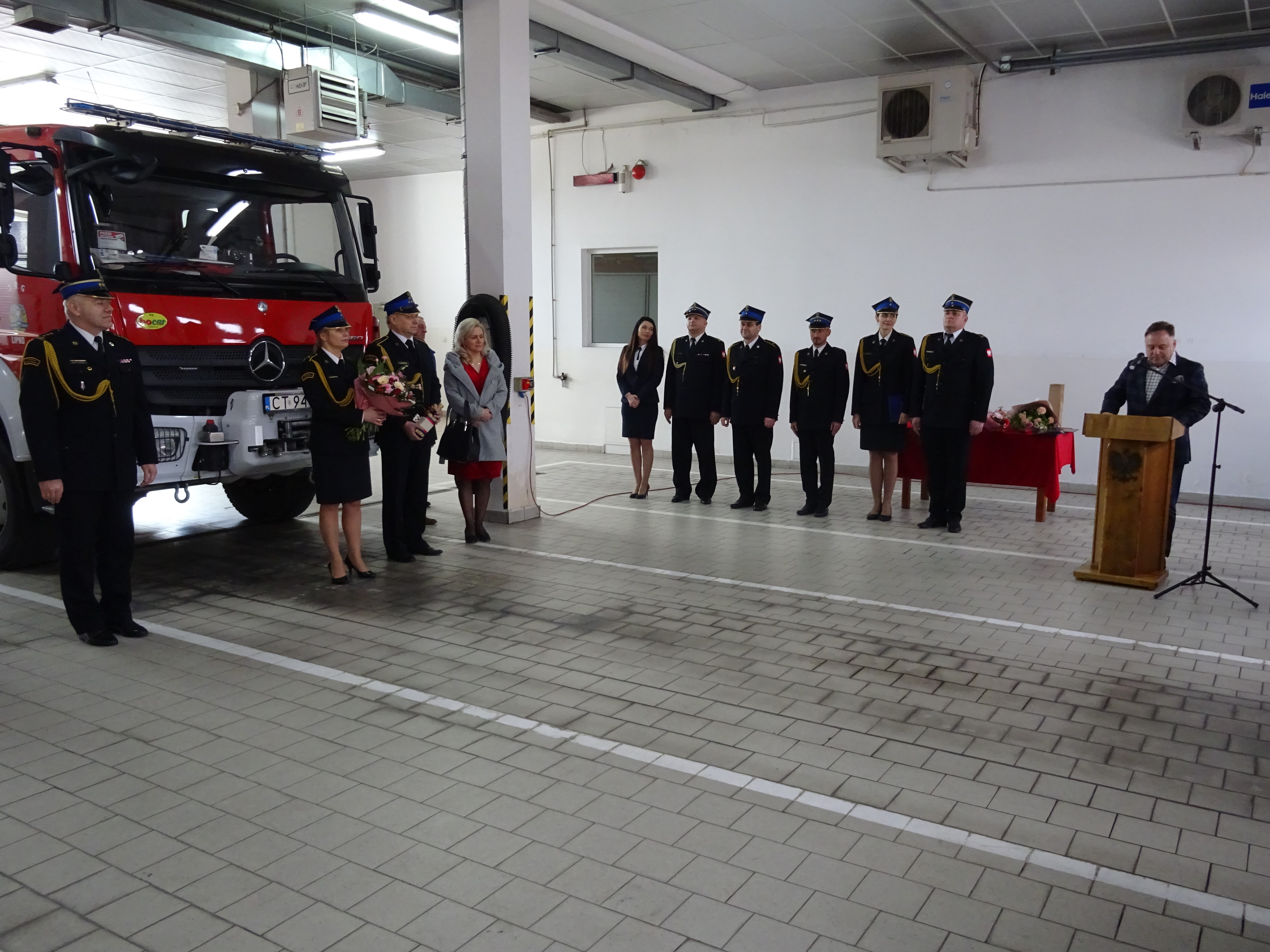 Na uroczystości obecni byli: Starosta Lipnowski Krzysztof Baranowski, Skarbnik Powiatu Barbara Małkiewicz, przedstawiciel Kujawsko-Pomorskiego Komendanta Wojewódzkiego, rodzina i zaproszeni goście, w tym emeryci KP PSP w Lipnie.