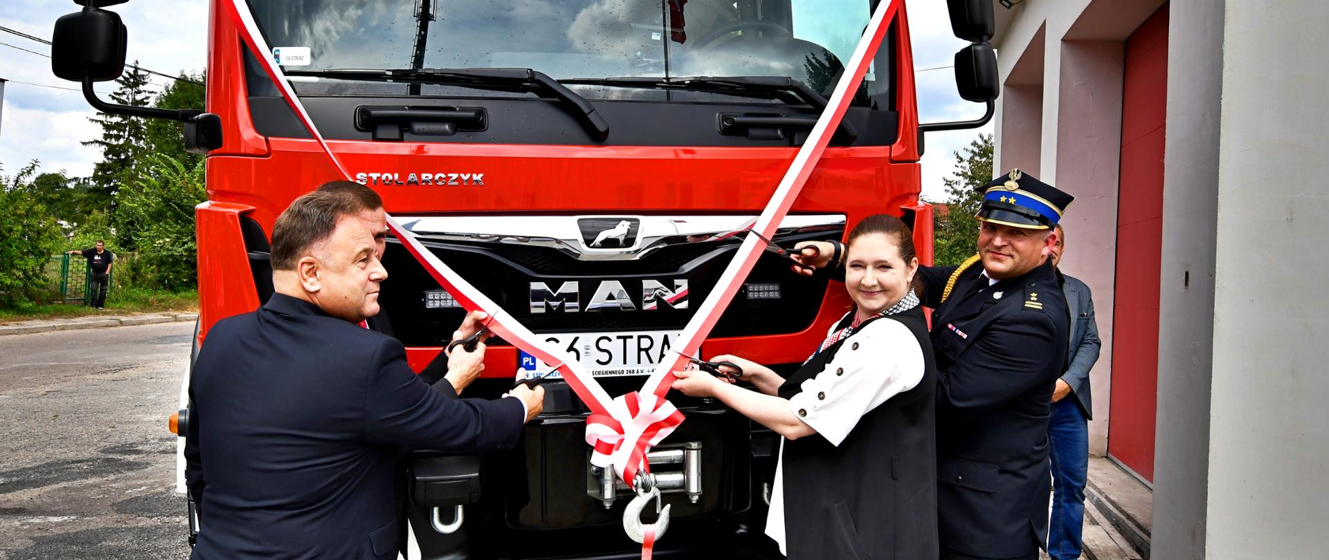 W uroczystości udział wzięli: Pani Anna Gębicka – Sekretarz Stanu w Ministerstwie Rolnictwa i Rozwoju Wsi oraz Poseł na Sejm Rzeczypospolitej Polskiej, Pan Krzysztof Baranowski – Starosta Lipnowski, Pan bryg. Jakub Politowski – Z-ca Komendanta Powiatowego PSP w Lipnie oraz Pan Piotr Wiśniewski – Burmistrz Miasta i Gminy Dobrzyń nad Wisłą.