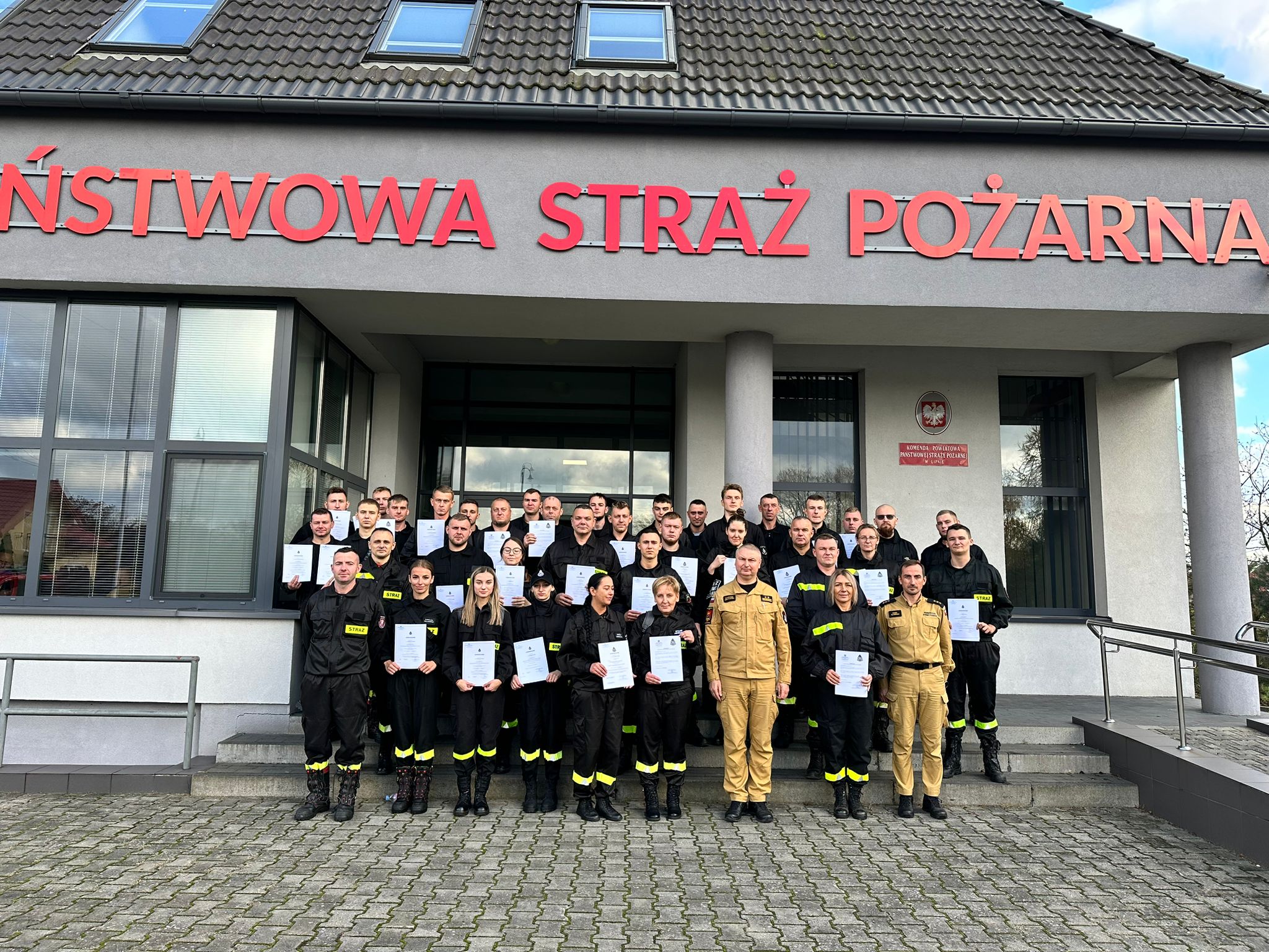 7 listopada 2023 r. w Komendzie Powiatowej PSP w Lipnie przeprowadzony został egzamin kończący szkolenie podstawowe strażaka ratownika OSP. Zaliczenie kursu polegało zdaniu części teoretycznej, a nastepnie druhowie musieli w sposób praktyczny zaprezentować swoje umiejętności użycia i wykorzystania sprzętu ratowniczo-gaśniczego. Za przeprowadzenie sprawdzianu odpowiedzialna była komisja powołana przez Komendanta Powiatowego PSP w Lipnie pod przewodnictwem st. bryg. Jakuba Politowskiego.