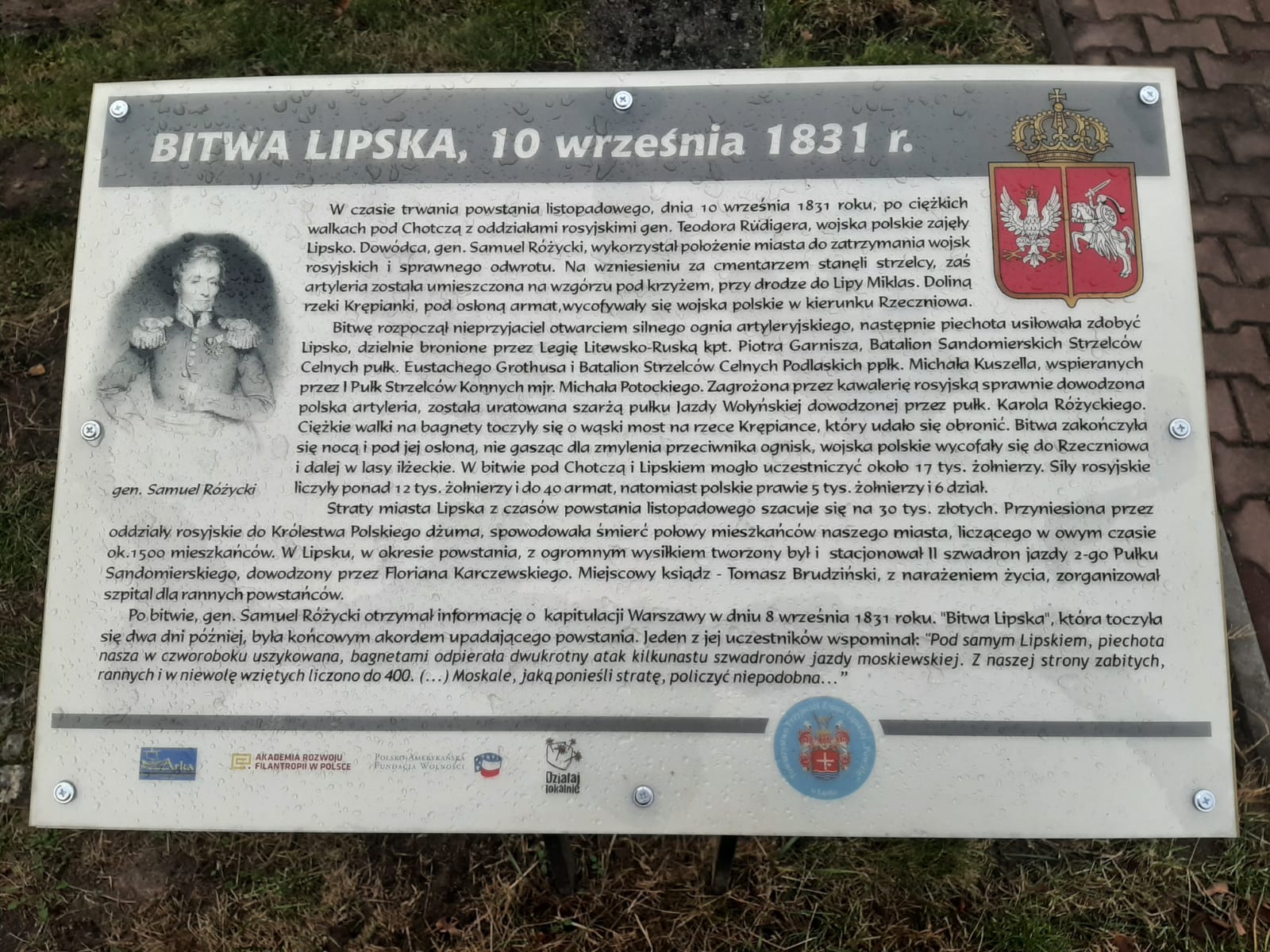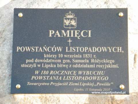 W dniu 29.11.2021r. w kolejną rocznice wybuchu powstania Listopadowego delegacja strażaków PSP i OSP oraz strzelców oddała honory i zapaliła znicze przy pomniku Powstania Listopadowego zlokalizowanego przy zalewie ul. Powstańców Listopadowych w Lipsku. Ziemia Lipska jest szczególnie związana z powstaniem listopadowym. Dnia 10 września 1831 roku, w czasie dogasającego powstania listopadowego, blisko 5- tysięczny korpus gen. Samuela Różyckiego, prowadzący ,,małą wojnę” na ziemi sandomierskiej, starł się pod Chotczą i Lipskiem z liczącym ok. 12 tysięcy żołnierzy, wojskiem rosyjskim gen. Teodora Rudigera. Była to największa bitwa powstania listopadowego stoczona na południu Królestwa Polskiego w końcowym jego etapie. Celem gen. Samuela Różyckiego było wycofanie wojsk polskich do Galicji przy jak najmniejszych stratach, natomiast zadaniem gen. Teodora Rudigera było rozbicie polskiego korpusu. Powyższe bitwy i działania zostały upamiętnione w Lipsku, gdzie została wykonana okolicznościowa tablica oraz nadano nazwę ulicy przy zalewie im. Powstańców Listopadowych (w okolicach której toczyła się bitwa) z okazji 180 rocznicy wybuchu powstania, uroczystość miała miejsce 11 listopada 2010r. Natomiast dnia 29 października 2021r. została odsłonięta i poświęcona okolicznościowa tablica przy wejściu na cmentarz parafialny w Chotczy.
