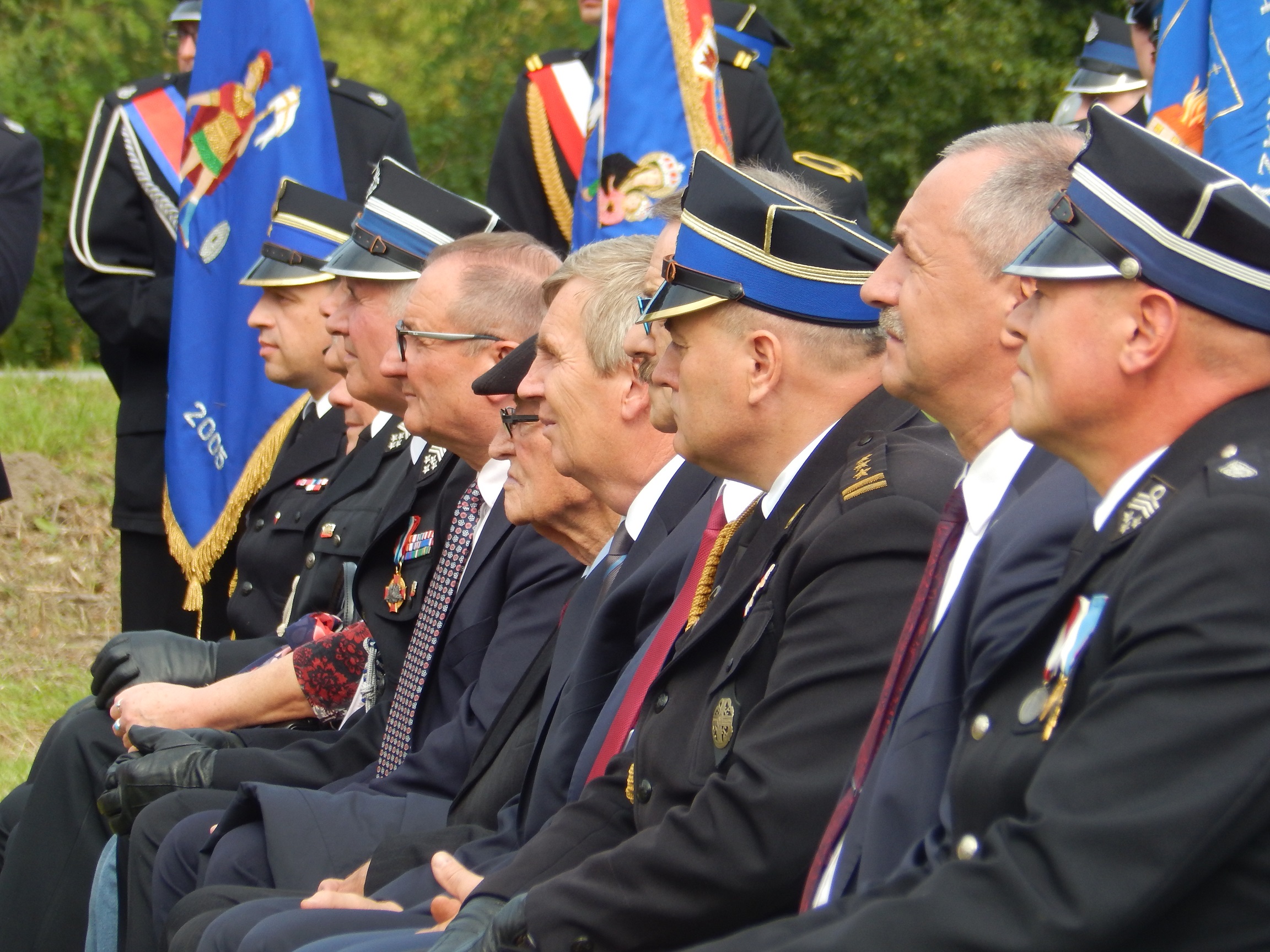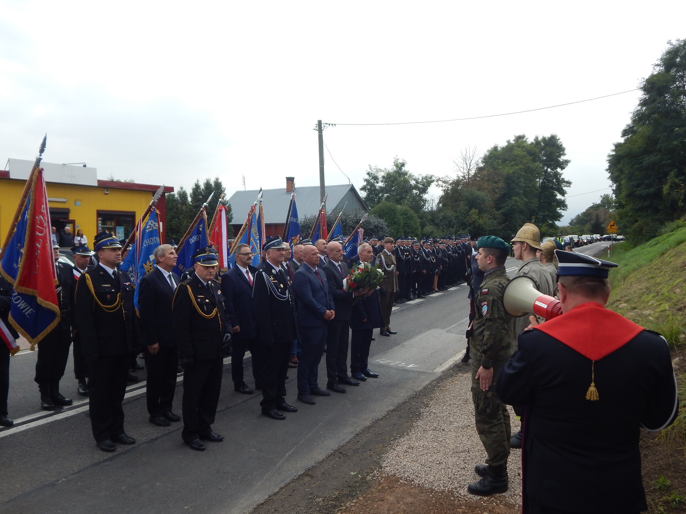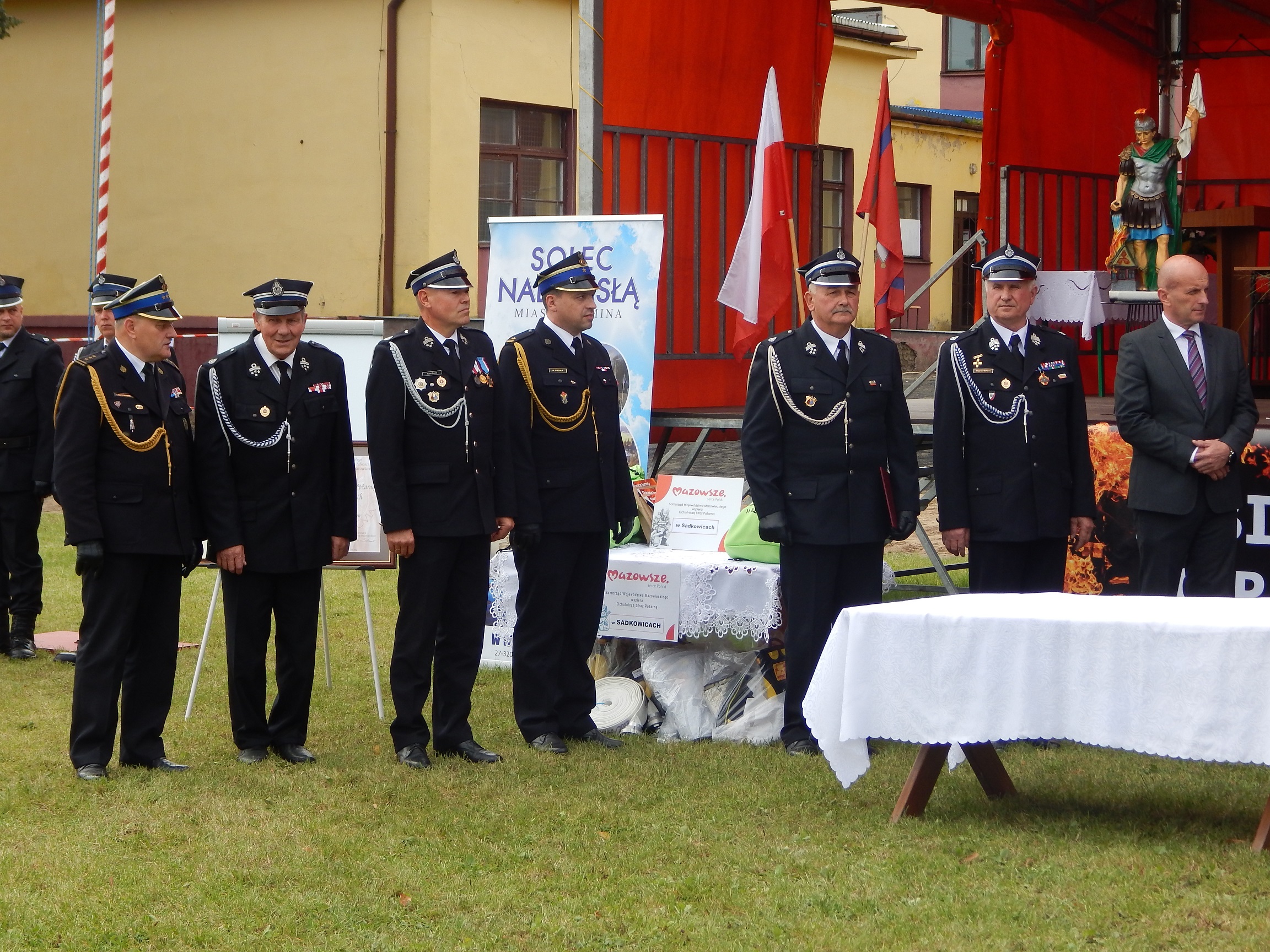 W uroczystości udział wzięli: przedstawiciel MKW PSP nadbryg. Jarosława Nowosielskiego zastępca naczelnika wydziału technicznego mł. bryg. Karol Ziętala, Prezes Zarządu Oddziału Wojewódzkiego Związku OSP RP województwa mazowieckiego dh. Zbigniew Gołąbek, Profesor Akademii Sztuki Wojennej w Warszawie dr hab. inż. Bogdan Michailiuk, Komendant Powiatowy PSP w Lipsku st. bryg. Tomasz Krzyczkowski, Przedstawiciel Dowódcy 6 Mazowieckiej Brygady Obrony Terytorialnej ppor. Mateusz Maj, Kierownik Delegatury Urzędu Marszałkowskiegoz Radomia Dawid RuszczykStarosta Lipski Sławomir Śmieciuch, Przewodniczący Rady Powiatu Lipskiego Józef Sosnowski, Wiceprzewodniczący Romuald Kowaleczko, Zastępca Komendanta Powiatowego Policji w Lipsku mł. insp. Robert Galas, Prezes Zarządu Oddziału Powiatowego Związku OSP RP w Lipsku jednocześnie wójt gminy Chotcza Janusz Witczak, Wiceprezes ZOP ZOSP RP w Lipsku jednocześnie wójt gminy Rzeczniów Karol Burek, Wiceprezes ZOP ZOSP RP w Lipsku Michał Wlazłowski, Burmistrz Miasta i Gminy Solec nad Wisłą Marek Szymczyk, przewodniczący rady MiG w Solcu nad Wisłą Tadeusz Szczerba wraz z radnymi, wójt gminy Sienno Mariusz Strąk, kierownik KRUS w Lipsku Halina Pyrka, przedstawiciel Burmistrza Miasta i Gminy Lipsko Kazimierz Czerwonka, przedstawiciele Nadleśnictwa Lasów Państwowych Zwoleń i Związku Strzeleckiego „Strzelec” Jednostki Strzeleckiej nr 1005 OSW im. płk. Dionizego Czachowskiego w Lipsku oraz licznie zgromadzone poczty sztandarowe, strażacy PSP i OSP z terenu pow. Lipskiego, mieszkańcy miejscowości Sadkowice i MiG Solec nad Wisłą oraz syn założyciela straży ogniowej w Sadkowicach Krzysztof Zieliński.