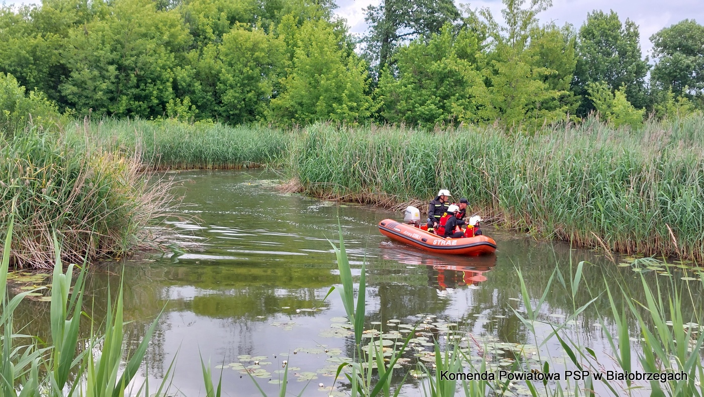 Wskutek gwałtownego przyboru wody, odcięta została droga odwrotu dwóm wędkarzom. Jeden z wędkarz próbując wydostać się na brzeg ulega wypadkowi i traci przytomność.