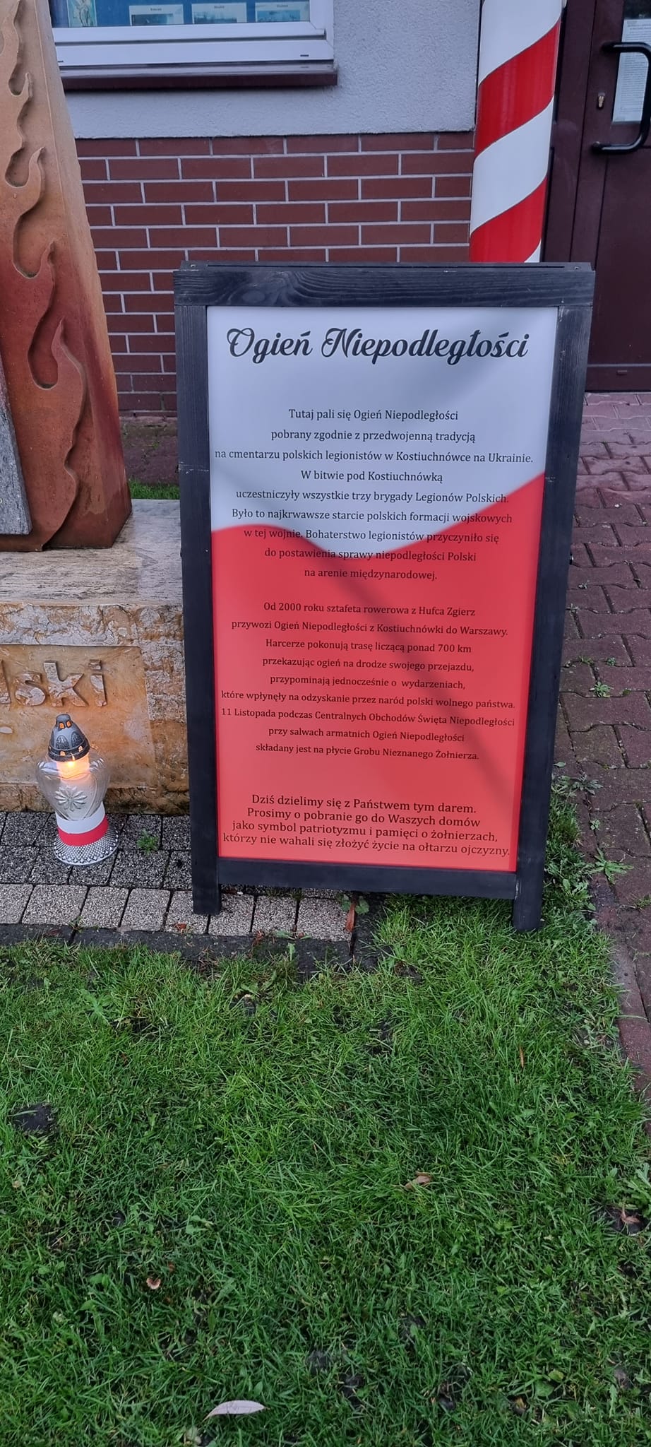 Ogień Niepodległości w KP PSP w Lipsku. Zaproszenie do pobrania Ognia Niepodległości znajdującego się przed Komendą Powiatową PSP w Lipsku. „Dziś dzielimy się z Państwem tym darem. Prosimy o pobranie go do Waszych domów jako symbol patriotyzmu i pamięci o żołnierzach, którzy nie wahali się złożyć życie na ołtarzu ojczyzny”.