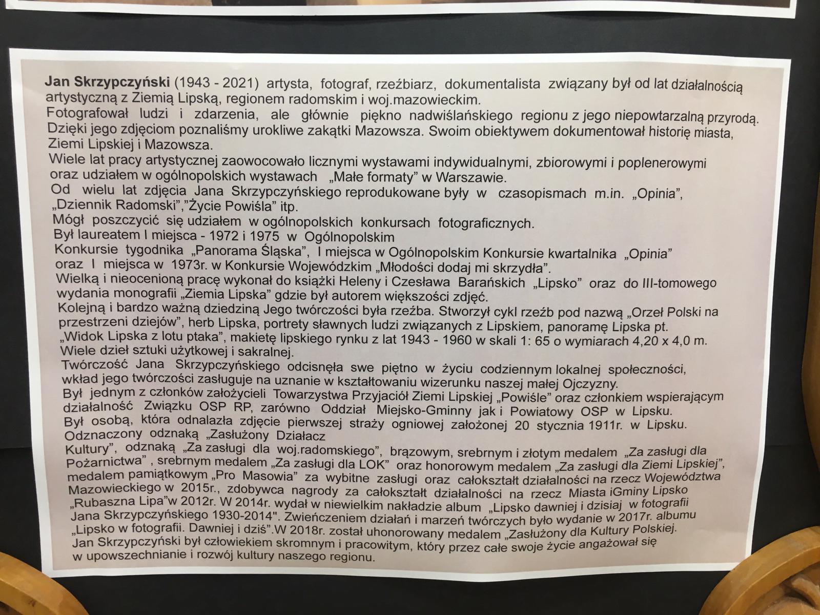 W dniu 11 listopada delegacja strażaków OSP i PSP z terenu miasta i gminy Lipski i Powiatu, uczestniczyła w uroczystościach Święta Niepodległości. Uroczystość się zbiegła z pierwszą rocznicą śmierci Jana Skrzypczyńskiego, członka wspierającego OSP Lipsko i jednostki ochrony przeciwpożarowej z Powiatu Lipskiego, artysty, fotografa, rzeźbiarza, który zmarł dnia 10 listopada 2021 roku.