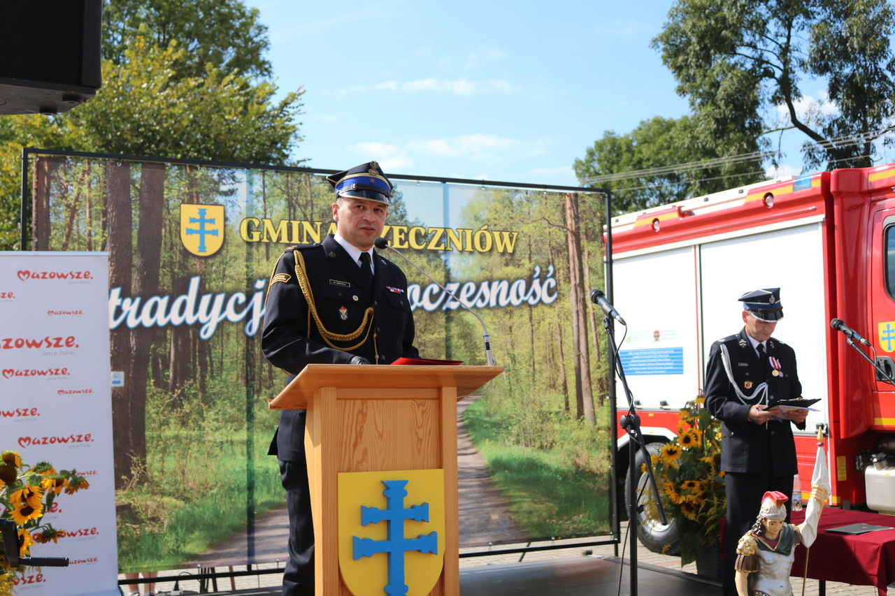W uroczystości udział wzięli: Dariusz Bąk Poseł na Sejm RP, Artur Standowicz Wicewojewoda Mazowiecki, dh Zbigniew Gołąbek Wiceprezes ZOW ZOSP RP województwa mazowieckiego, mł. bryg. Karol Ziętala Zastępca Naczelnika Wydziału Technicznego KW PSP w Warszawie, Sławomir Śmieciuch Starosta Lipski, st.bryg. Tomasz Krzyczkowski Komendant Powiatowy PSP w Lipsku wraz z kierownictwem Komendy Powiatowej PSP w Lipsku, insp. Wojciech Brandt Komendnat Powiatowy PSP w Lipsku, Tadeusz Misiak Nadleśniczy Nadleśnictwa LP Marcule wraz z leśnikami, st. chor. Jacek Piotrowski Dowódca JS „Strzelec” OSW im. płk Dionizego Czachowskiego w Lipsku, Zygmunt Wick Przewodniczący Rady Gminy Rzeczniów wraz z radnymi, Zbigniew Korycki Dyrektor Zespołu Szkół im.ks.prof. Józefa Pastuszki w Rzeczniowie oraz licznie zgromadzone poczty sztandarowe.