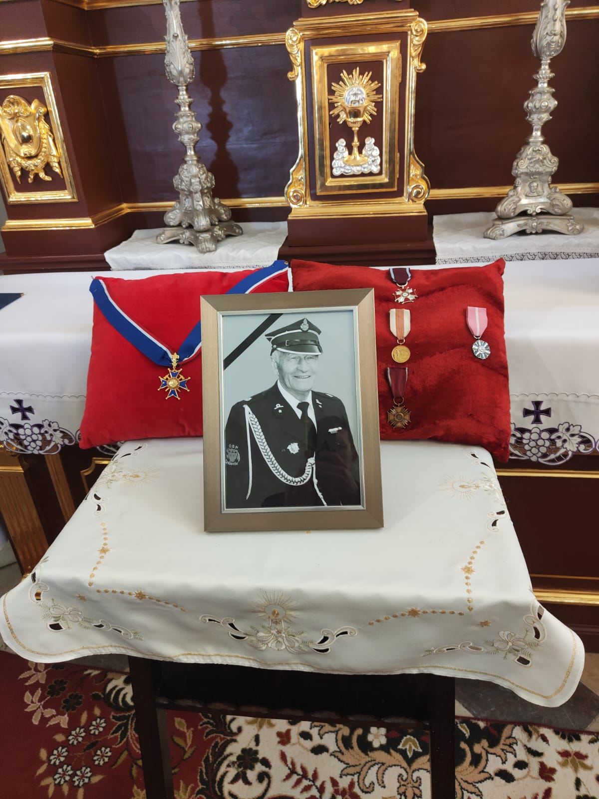 Strażacy pożegnali zmarłego w strażnicy OSP w Grabowcu, następnie kondukt pogrzebowy wraz ze sztandarami OSP wyruszył do kościoła pw. Św. Mikołaja w Grabowcu. Mszę św. odprawili księża: ks. kan. Zbigniew Wypchło kapelan strażaków gm. Rzeczniów i proboszcz miejscowej parafii w Grabowcu, ks. Sylwester Hodyra proboszcz parafii w Rzeczniowie i ks. Gracjan Broda proboszcz parafii w Gozdawie.