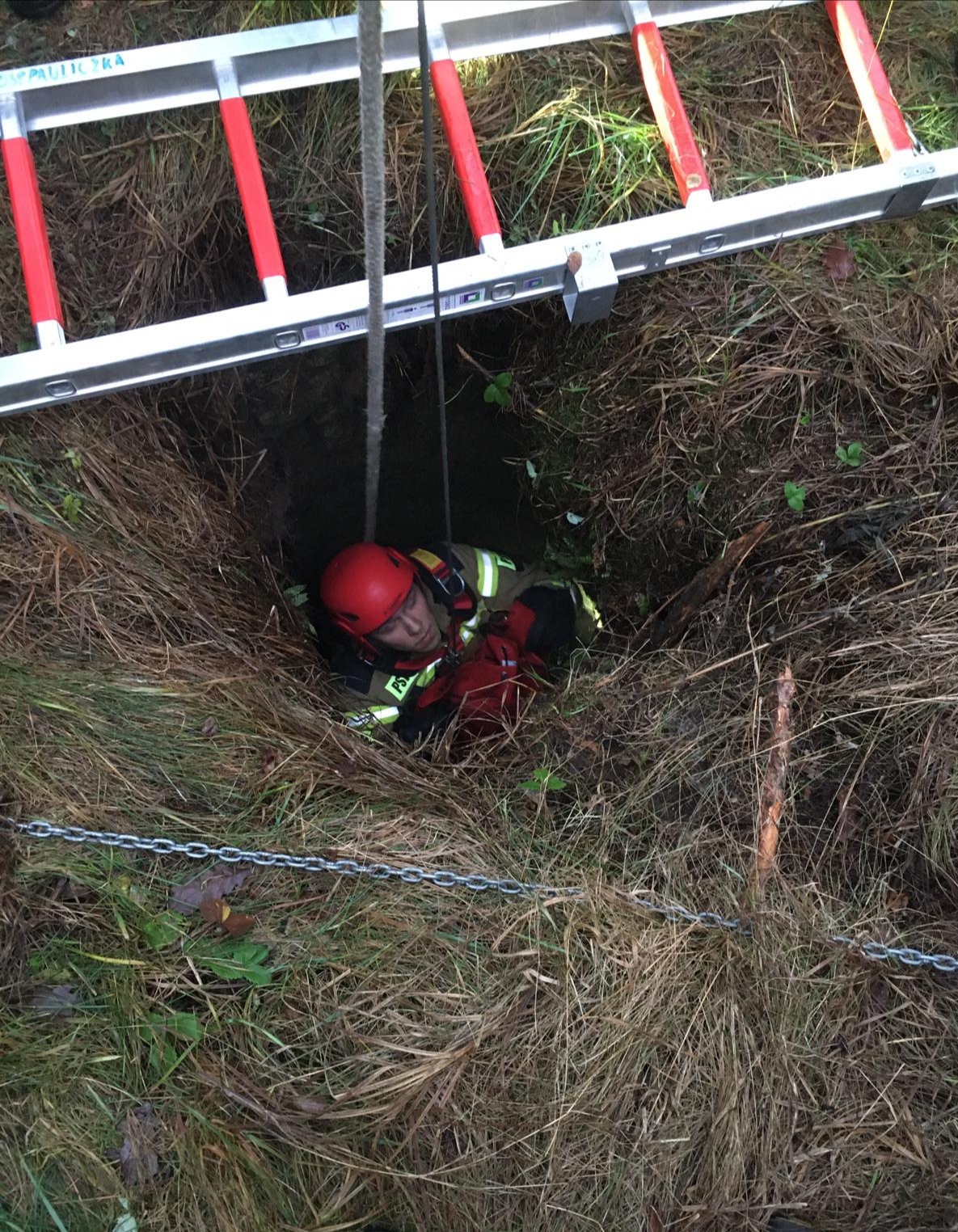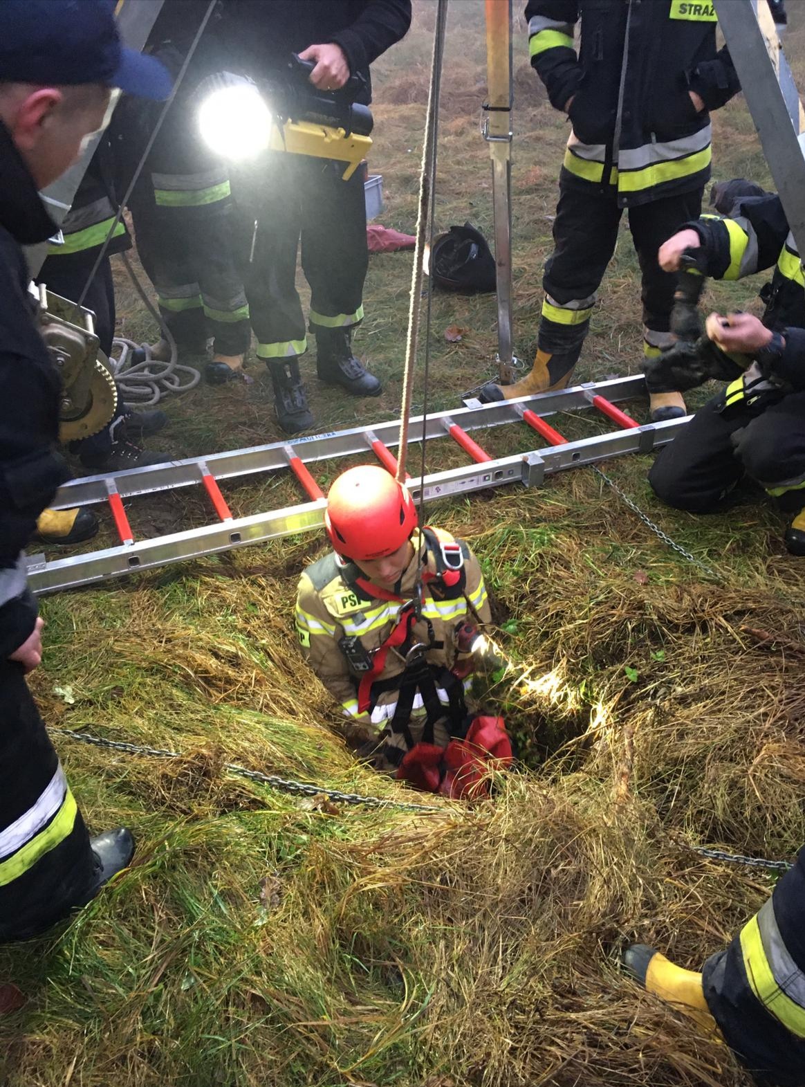 Po przybyciu na miejsce zdarzenia do miejscowości Marianów stwierdzono niezabezpieczoną studnię, porośniętą trawą oraz nakrytą gałęziami o głębokości około 15 m. Ze zgłoszenia i po przeprowadzonym rozpoznaniu stwierdzono, że na dnie studni znajduje się pies. Obrzeża studni wstępnie zabezpieczono drabinami nasadkowymi. Na dno studni opuszczono detektor wielogazowy celem sprawdzenia jakości powietrza. Kolejne działania polegały na rozstawieniu trójnoga ratowniczego i opuszczeniu ratownika z detektorem wielogazowym, zabezpieczonego w szelki ratownicze i podpiętego do linki asekuracyjnej. Ratownik po zjeździe na dno zabezpieczył psa w worku.