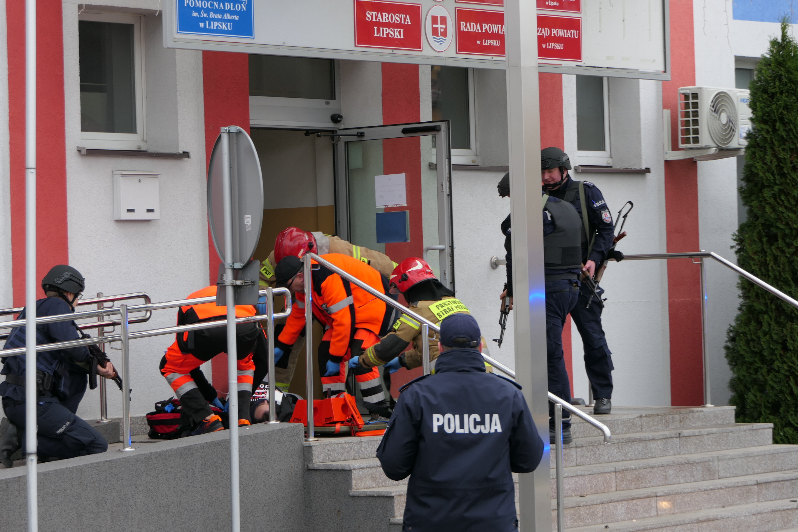 Zadaniem funkcjonariuszy Komendy Powiatowej Państwowej Straży w Lipsku było podjęcia działań gaśniczo – ratowniczych. Podczas rozgrywającego się epizodu praktycznego dostrzeżony został unoszący się dym z okna budynku Starostwa Powiatowego. Do akcji ugaszania pożaru wkroczyli strażacy PSP w Lipsku.